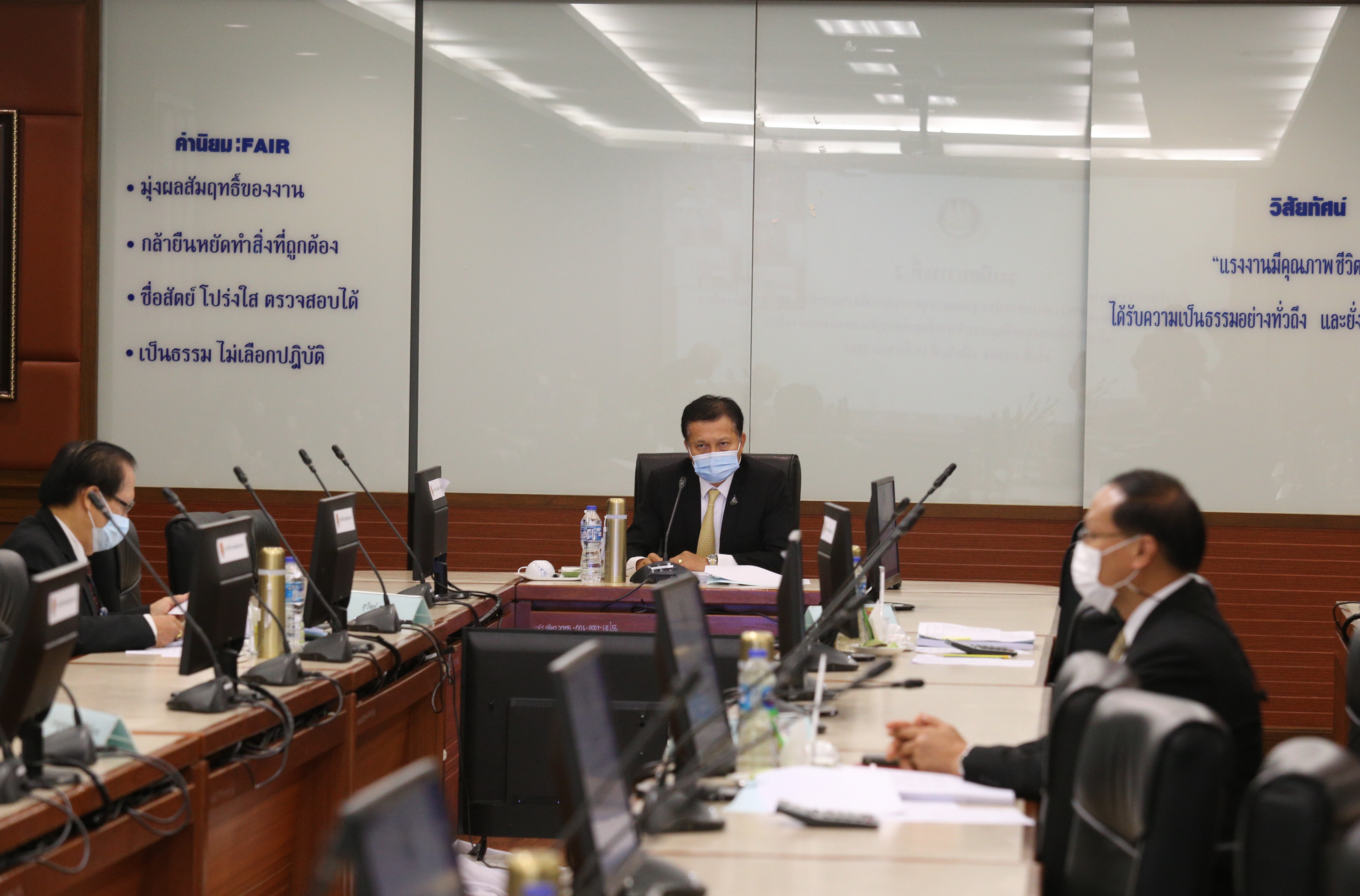 วันที่ ๒๙ เมษายน ๒๕๖๔ เวลา ๑๓.๓๐ น. นายสุทธิ สุโกศล ปลัดกระทรวงแรงงาน เป็นประธานการประชุมคณะกรรมการกองทุนเพื่อการบริหารจัดการการทำงานของคนต่างด้าว ครั้งที่ ๕/๒๕๖๔ โดยที่ประชุมได้พิจารณา การทบทวนโครงการจัดเก็บข้อมูลอัตลักษณ์บุคคลให้กับแรงงาน ๓ สัญชาติ ตามมติคณะรัฐมนตรีเมื่อวันที่ ๒๖ มกราคม ๒๕๖๔ และวันที่ ๗ เมษายน ๒๕๖๔ ของสำนักงานตรวจคนเข้าเมือง และการทบทวนโครงการต่อเนื่องตามความเห็นของคณะกรรมการฯ เนื่องจากสถานการณ์การแพร่ระบาดของโรคติดเชื้อโควิด ๑๙ ของกรมสวัสดิการและคุ้มครองแรงงาน และกองอำนวยการรักษาความมั่นคงภายในราชอาณาจักร ณ ห้องประชุม ศ.นิคม จันทรวิทุร ชั้น ๕ กรมสวัสดิการและคุ้มครองแรงงาน อาคารกระทรวงแรงงาน