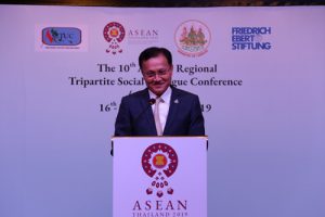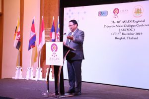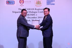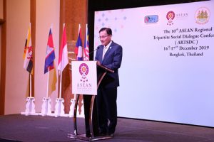 วันที่ 17 ธันวาคม 2562 เวลา 16.30 น. นายสุทธิ สุโกศล ปลัดกระทรวงแรงงาน เป็นประธานกล่าวปิดการประชุมไตรภาคีระดับภูมิภาคอาเซียนเพื่อส่งเสริมการมีส่วนร่วมกับหุ้นส่วนทางสังคม (ARTSDC) ครั้งที่ 10 ณ โรงแรมอวานี เอเทรียม กรุงเทพมหานคร โดยการประชุมฯ ดังกล่าว จัดขึ้นระหว่างวันที่ 16-17 ธันวาคม 2562 มีหัวข้อหลักของการประชุม คือ การเสริมสร้างหุ้นส่วนทางสังคมและการหลอมรวมการเปลี่ยนผ่านอยางเป็นธรรมและสมดุล สู่ อนาคตของงาน ประกอบด้วยผู้เข้าร่วมจำนวน 120 คน จากประเทศสมาชิกอาเซียน ได้แก่ ผู้แทนภาครัฐ สหภาพแรงงาน องค์การนายจ้าง สำนักเลขาธิการอาเซียน และองค์การแรงงานระหว่างประเทศ มีรูปแบบการประชุมแบบไตรภาคี กำหนดจัดให้มีการประชุมเป็นประจำทุกปี โดยประเทศเจ้าภาพคือประเทศที่ดำรงตำแหน่งประธานอาเซียน สาระสำคัญของการประชุมมุ่งเน้นการทำความเข้าใจเกี่ยวกับอนาคตของงานและ Centenary Declaration ขององค์การแรงงานระหว่างประเทศ ซึ่งให้ความสำคัญกับการส่งเสริมแนวทางที่มุ่งเน้นการมีส่วนร่วมของประชาชน การทำให้มั่นใจว่าแรงงานจะได้รับการคุ้มครองสิทธิขั้นพื้นฐาน การสนับสนุนการพัฒนาทักษะฝีมือแรงงานและการเรียนรู้ตลอดช่วงวัย และการจัดทำนโยบายเพื่อตอบสนองต่ออนาคตของงานและนโยบายที่ส่งเสริมการเข้าถึงงานที่มีคุณค่า