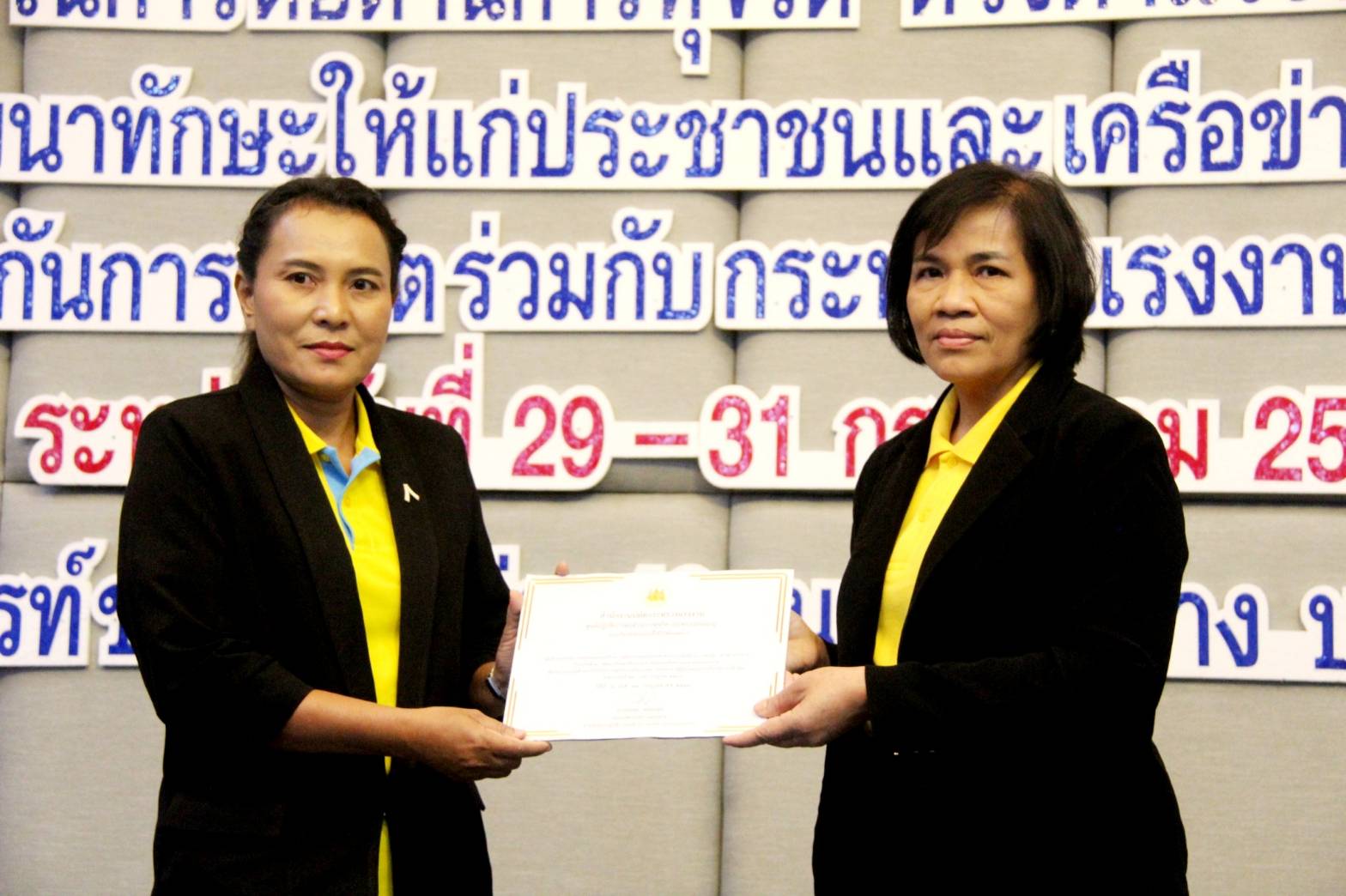 นางต้องใจ กล่าวว่า การอบรม ในครั้งนี้มีประชาชน อาสาสมัครแรงงาน สถานประกอบกิจการ และผู้ใช้แรงงาน ที่ผ่านการอบรมฯ จำนวน 82 คน ซึ่งจะเป็นเครือข่ายและกลไกสำคัญของกระทรวงแรงงานในการเฝ้าระวัง ป้องกันและ ปิดกั้นโอกาสในการทุจริต ตลอดจนสร้างความตระหนักรู้ด้านการป้องกันการทุจริตและประพฤติมิชอบให้แก่ประชาชนในพื้นที่ต่อไป