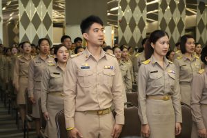 สำหรับการฝึกอบรมหลักสูตรการพัฒนาข้าราชการบรรจุใหม่นี้ เป็นไปตามแนวทางที่สำนักงาน ก.พ. กำหนด มีวัตถุประสงค์เพื่อปลูกฝังปรัชญาการเป็นข้าราชการที่ดี และพัฒนาเครือข่ายในการทำงาน เน้นการเรียนรู้เนื้อหาวิชาจากวิทยากร และประสบการณ์ของผู้บริหาร ที่ทรงคุณวุฒิ รวมทั้งการลงมือปฏิบัติจริงทั้งในห้องเรียนและนอกห้องเรียน เริ่มดำเนินการฝึกอบรม ตั้งแต่วันที่ 18 เมษายน 2567 และกำลังจะสิ้นสุดในวันนี้ รวมระยะเวลาฝึกอบรม 6 วัน โดยมีผู้เข้ารับการฝึกอบรมเป็นข้าราชการบรรจุใหม่จากสำนักงานปลัดกระทรวงแรงงาน 25 คน กรมการจัดหางาน 27 คน กรมพัฒนาฝีมือแรงงาน 9 คน กรมสวัสดิการและคุ้มครองแรงงาน 31 คนสำนักงานประกันสังคม 115 คน รวม 207 คน การฝึกอบรมในภาพรวม ในภาควิชาการ และกิจกรรมกลุ่มสัมพันธ์ ผู้เข้ารับการฝึกอบรมทุกคนได้เข้าร่วมกิจกรรมตามเกณฑ์ที่กำหนด และมีส่วนร่วมในกิจกรรมต่าง ๆ ตลอดหลักสูตรเป็นอย่างดี