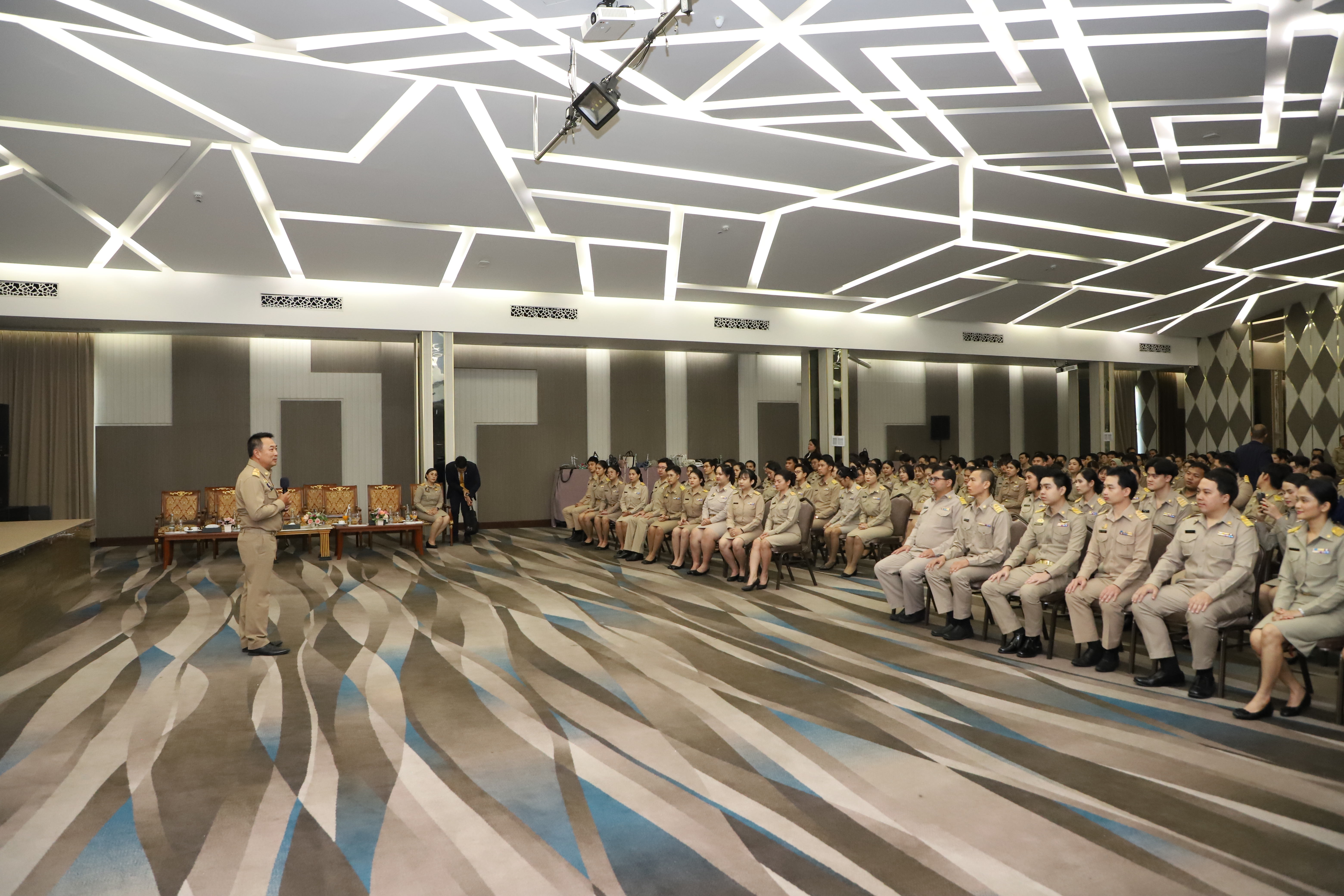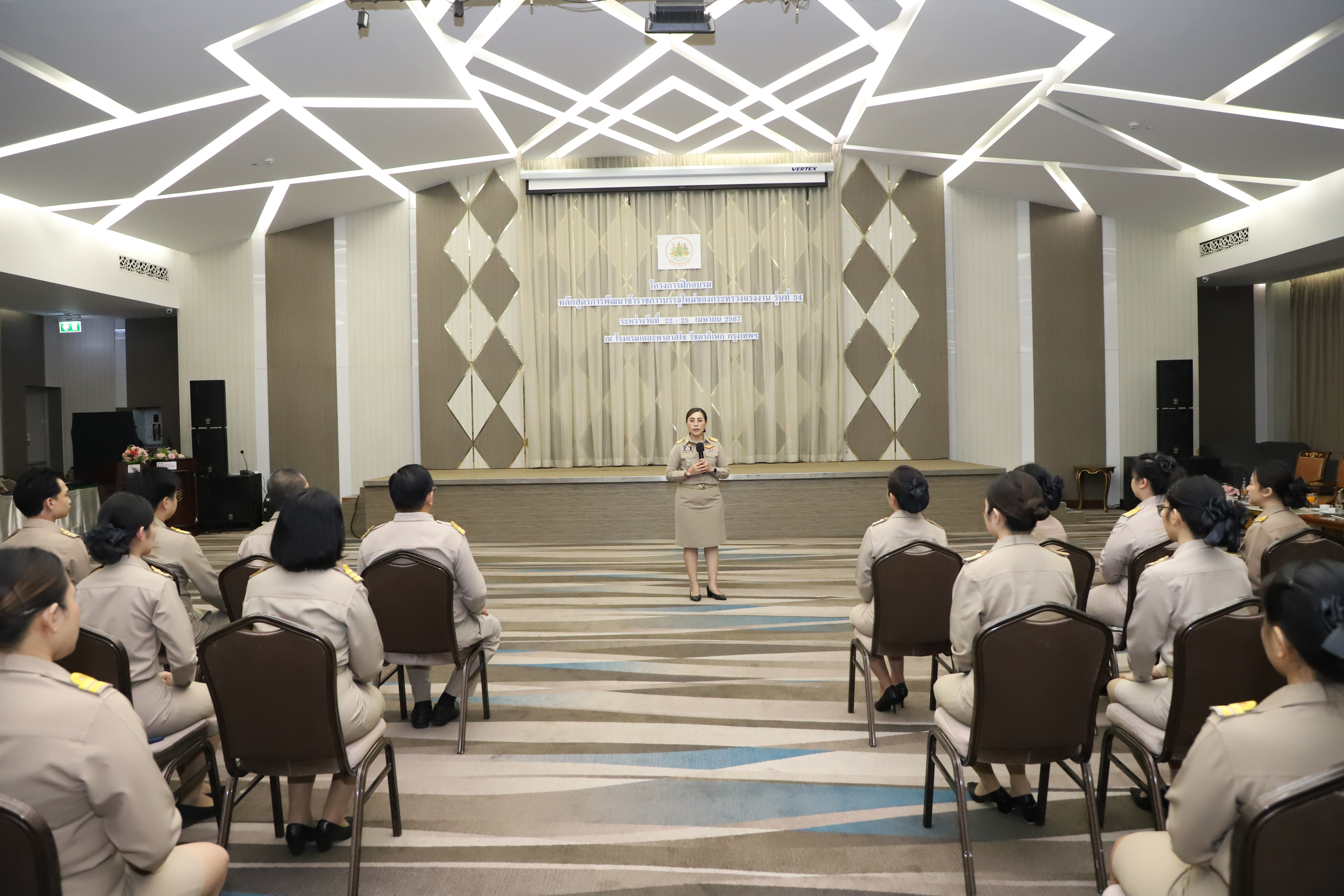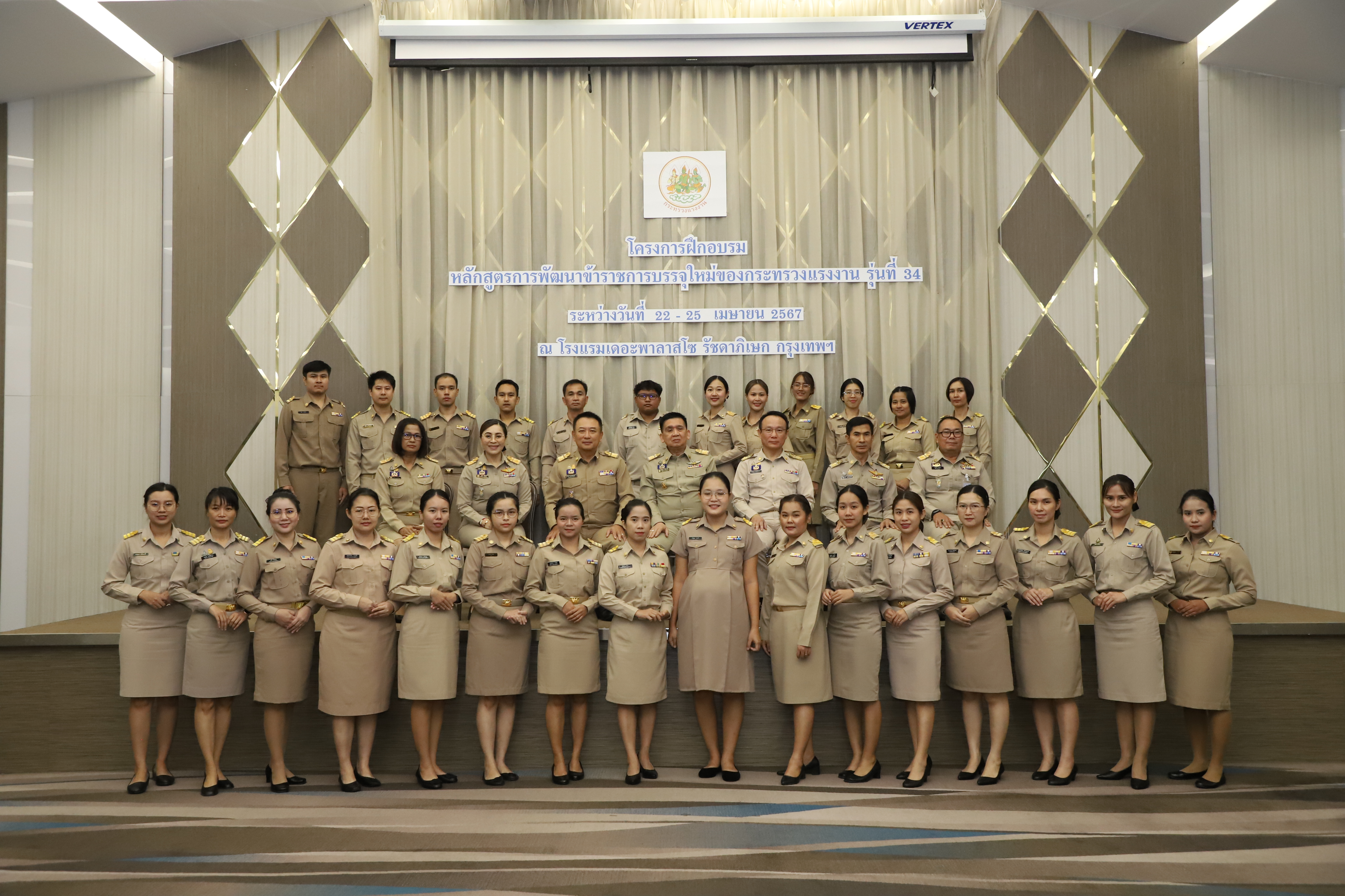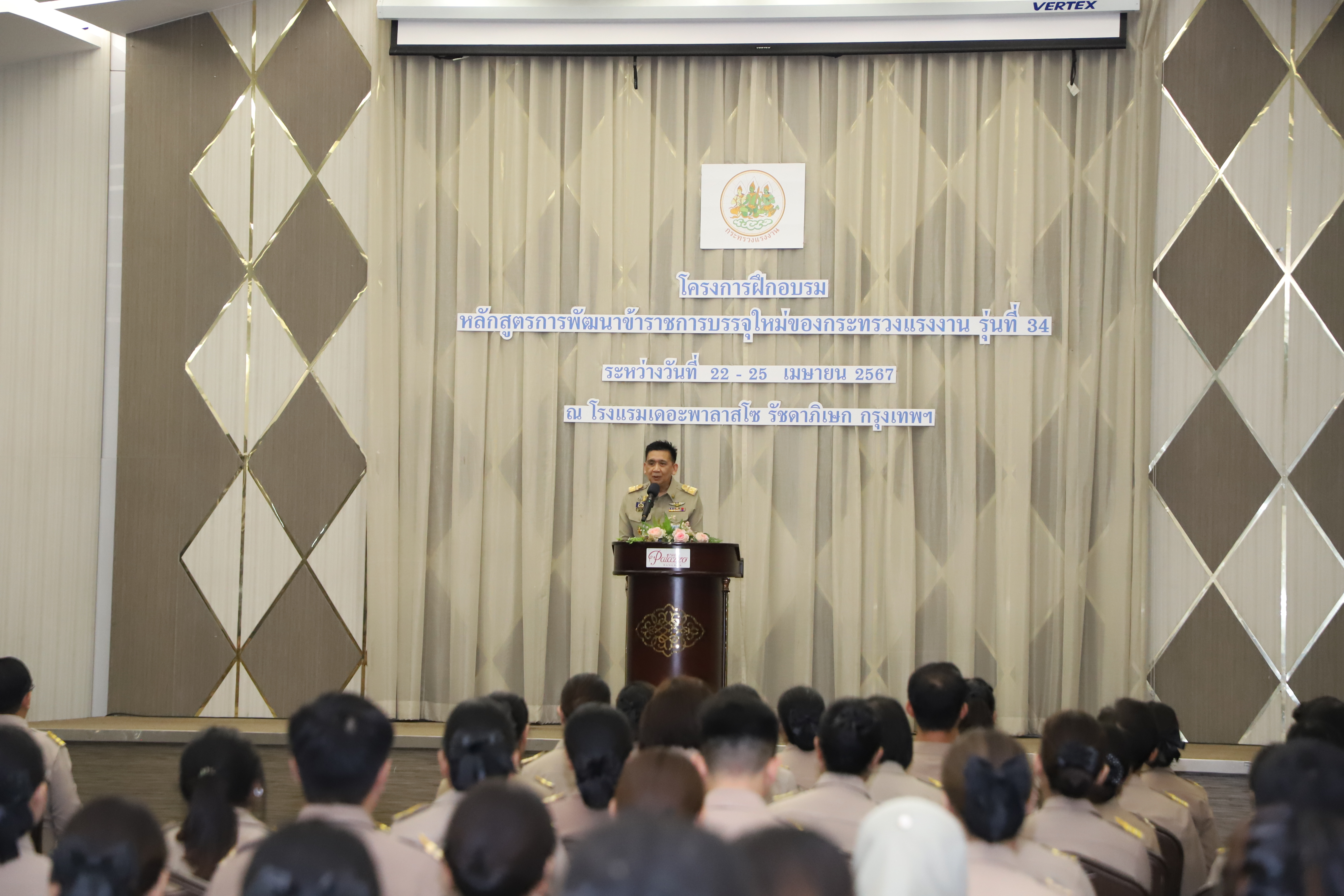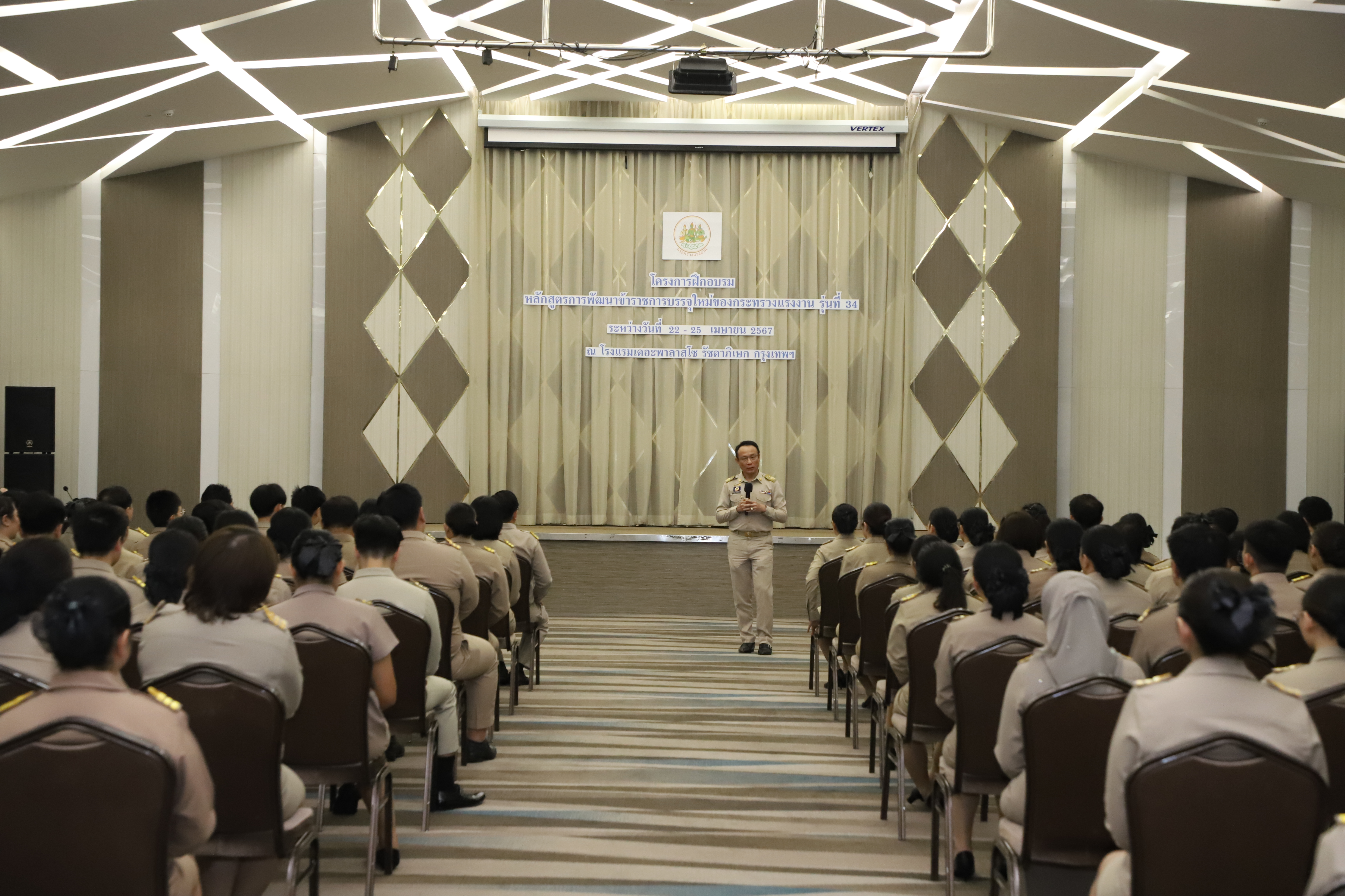 วันที่ 25 เมษายน 2567 นายไพโรจน์ โชติกเสถียร ปลัดกระทรวงแรงงาน เป็นประธานในพิธีประดับอินทรธนูและพิธีปิดโครงการฝึกอบรมหลักสูตรการพัฒนาข้าราชการบรรจุใหม่ของกระทรวงแรงงาน รุ่นที่ 34 ณ ห้องประชุมGrand Palazzo ชั้น 7 โรงแรม เดอะพาลาสโซ กรุงเทพ โดยมี นายเดชา พฤกษ์พัฒนรักษ์ รองปลัดกระทรวงแรงงาน และผู้บริหารกระทรวงแรงงาน ร่วมเป็นเกียรติในพิธีฯ ดังกล่าว