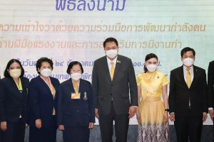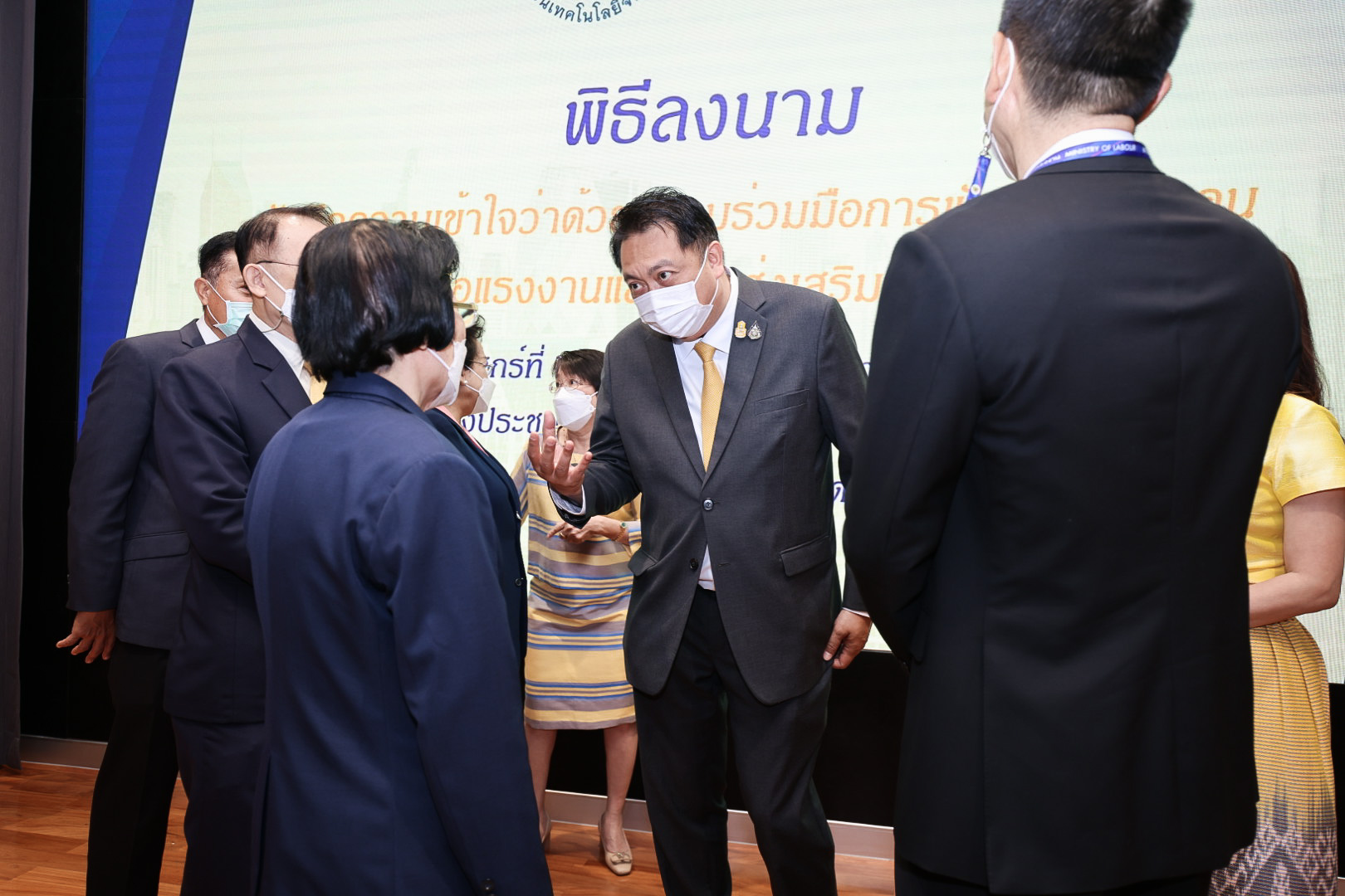 “กระทรวงแรงงาน พร้อมที่จะให้การสนับสนุนและพัฒนาหลักสูตรการฝึกอบรมฝีมือแรงงานการทดสอบมาตรฐานฝีมือแรงงาน การประเมินความรู้ ความสามารถ และแลกเปลี่ยนการใช้ทรัพยากร เช่น ครู อาจารย์ วิทยากร เครื่องมืออุปกรณ์ เป็นต้น เพื่อยกระดับทักษะและศักยภาพฝีมือแรงงานให้ทัดเทียมกับนานาชาติ รวมทั้งให้การสนับสนุนและส่งเสริมการให้บริการจัดหางาน การประกอบอาชีพอิสระ การแนะนำแหล่งเงินทุนในการประกอบอาชีพ ทั้งนี้ เพื่อให้นายจ้าง สถานประกอบการได้พนักงานที่มีฝีมือ มีความรู้ ความสามารถ ที่ตรงต่อความต้องการลดการขาดแคลนแรงงาน และรองรับการขยายระบบเศรษฐกิจในอนาคตได้ การลงนามบันทึกความเข้าใจในวันนี้ ถือเป็นการขับเคลื่อนนโยบายของรัฐบาลและกระทรวงแรงงานให้เกิดเป็นรูปธรรมมากยิ่งขึ้น” นายสุชาติ กล่าวในท้ายสุด