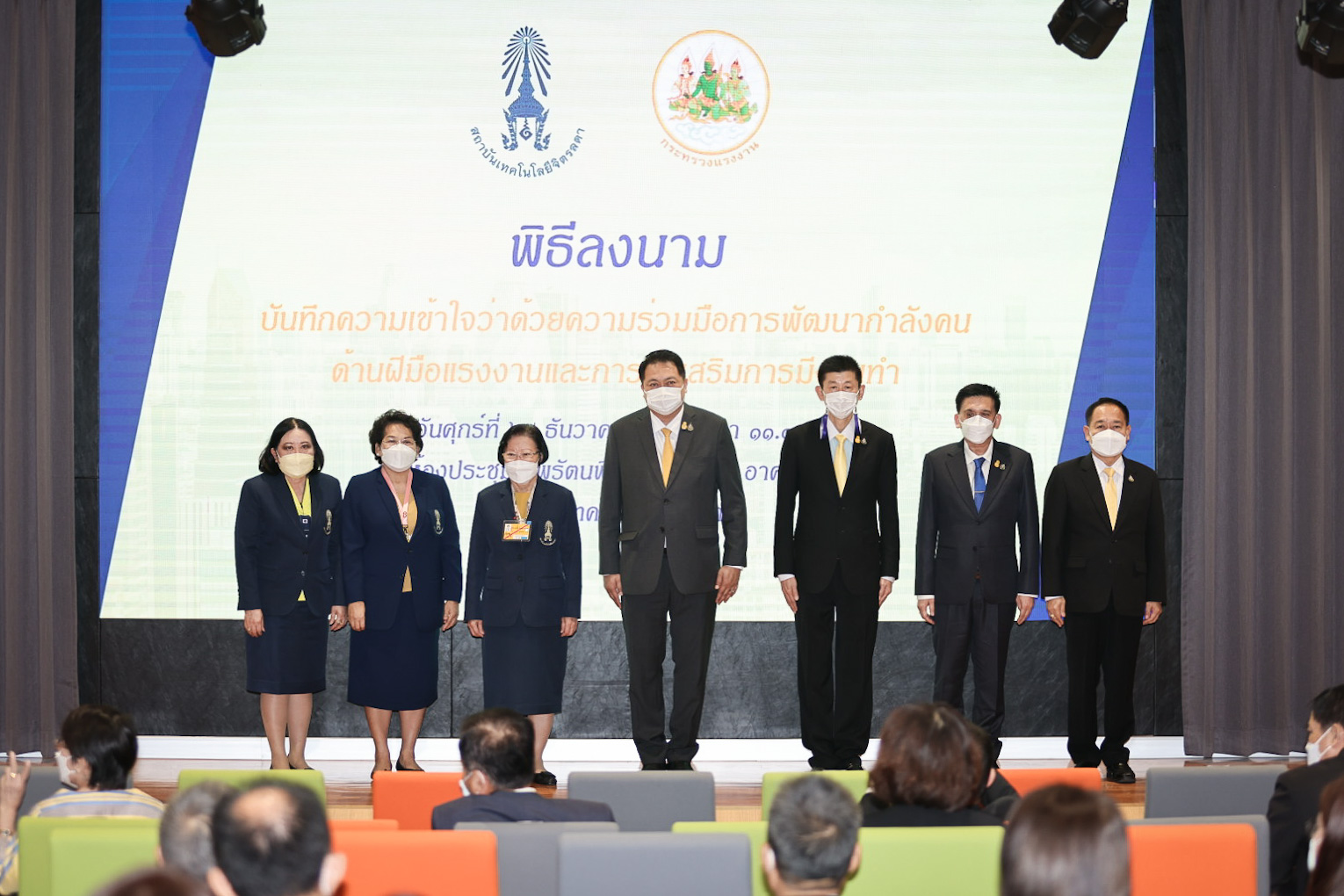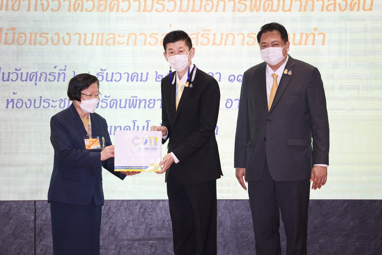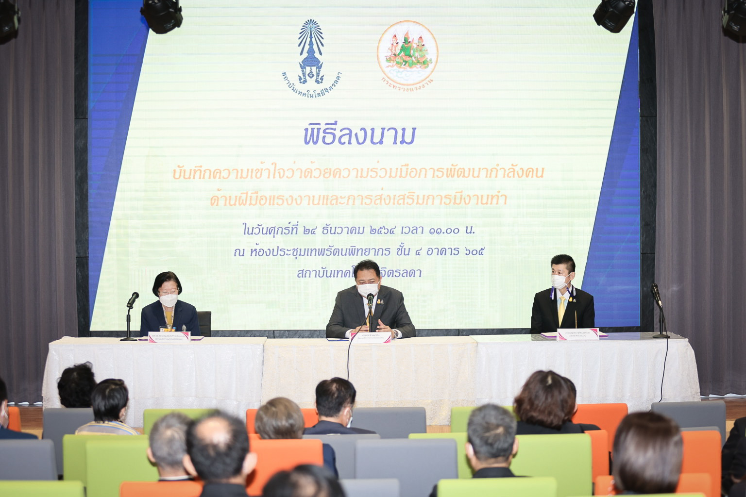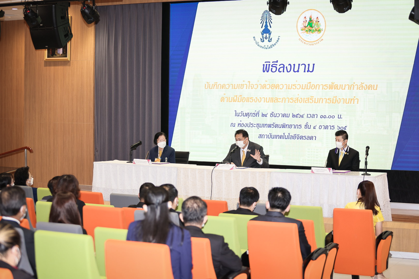 เมื่อเวลา 11.00 น.วันที่ 24 ธันวาคม 2564 ที่ห้องประชุมเทพรัตนพิทยากร ชั้น 4 อาคาร 605 สถาบันเทคโนโลยีจิตรลดา นายสุชาติ ชมกลิ่น รัฐมนตรีว่าการกระทรวงแรงงาน เป็นสักขีพยานในพิธีลงนามบันทึกความเข้าใจว่าด้วยความร่วมมือการพัฒนากำลังคนด้านพัฒนาฝีมือแรงงานและการส่งเสริมการมีงานทำระหว่างสถาบันเทคโนโลยีจิตรลดา กับกระทรวงแรงงานโดยมี รองศาสตราจารย์ ดร.คุณหญิงสุมณฑา พรหมบุญ อธิการบดีสถาบันเทคโนโลยีจิตรลดา นายบุญชอบ สุทธมนัสวงษ์ ปลัดกระทรวงแรงงาน ร่วมลงนาม นายประทีป ทรงลำยอง อธิบดีกรมพัฒนาฝีมือแรงงาน นายไพโรจน์ โชติกเสถียร อธิบดีกรมการจัดหางาน ผู้ช่วยศาสตราจารย์ ดร.สันทนีย์ ผาสุก รองอธิการบดีสถาบันเทคโนโลยีจิตรลดา และ ดร.นวลอนงค์ธรรมเจริญ ผู้อำนวยการโรงเรียนจิตรลดาวิชาชีพ ร่วมเป็นพยาน นางธิวัลรัตน์ อังกินันทน์ ที่ปรึกษารัฐมนตรีว่าการกระทรวงแรงงาน นายสุเทพ ชิตยวงษ์ เลขานุการรัฐมนตรีว่าการกระทรวงแรงงาน พล.ต.ต.นันทชาติ ศุภมงคล ประจำสำนักเลขาธิการนายกรัฐมนตรี ปฏิบัติหน้าที่ประจำกระทรวงแรงงาน นายสุทธิ สุโกศล ประจำสำนักเลขาธิการนายกรัฐมนตรี ปฏิบัติหน้าที่ประจำกระทรวงแรงงาน นางเธียรรัตน์ นะวะมะวัฒน์ โฆษกกระทรวงแรงงาน (ฝ่ายการเมือง) พร้อมด้วยผู้บริหารระดับสูงกระทรวงแรงงาน เข้าร่วมเป็นเกียรติด้วย การลงนามในครั้งนี้มีวัตถุประสงค์เพื่อพัฒนากำลังคนด้านฝีมือแรงงานให้กับประชากรในวัยทำงานให้มีความรู้ความสามารถ ทักษะและทัศนคติที่ดีเกี่ยวกับการทำงานเพื่อเป็นแรงงานที่มีคุณภาพ มีทักษะฝีมือแรงงานที่สูงขึ้น รองรับต่อการขยายตัวของระบบเศรษฐกิจในอนาคต ภายใต้ภารกิจการฝึกอบรมฝีมือแรงงาน การทดสอบมาตรฐานฝีมือแรงงาน รวมทั้งเพื่อส่งเสริมให้นักเรียนและนักศึกษาได้มีงานทำที่เหมาะสมกับความรู้ ความสามารถ และความถนัดให้สอดคล้องกับความต้องการของตลาดแรงงาน
