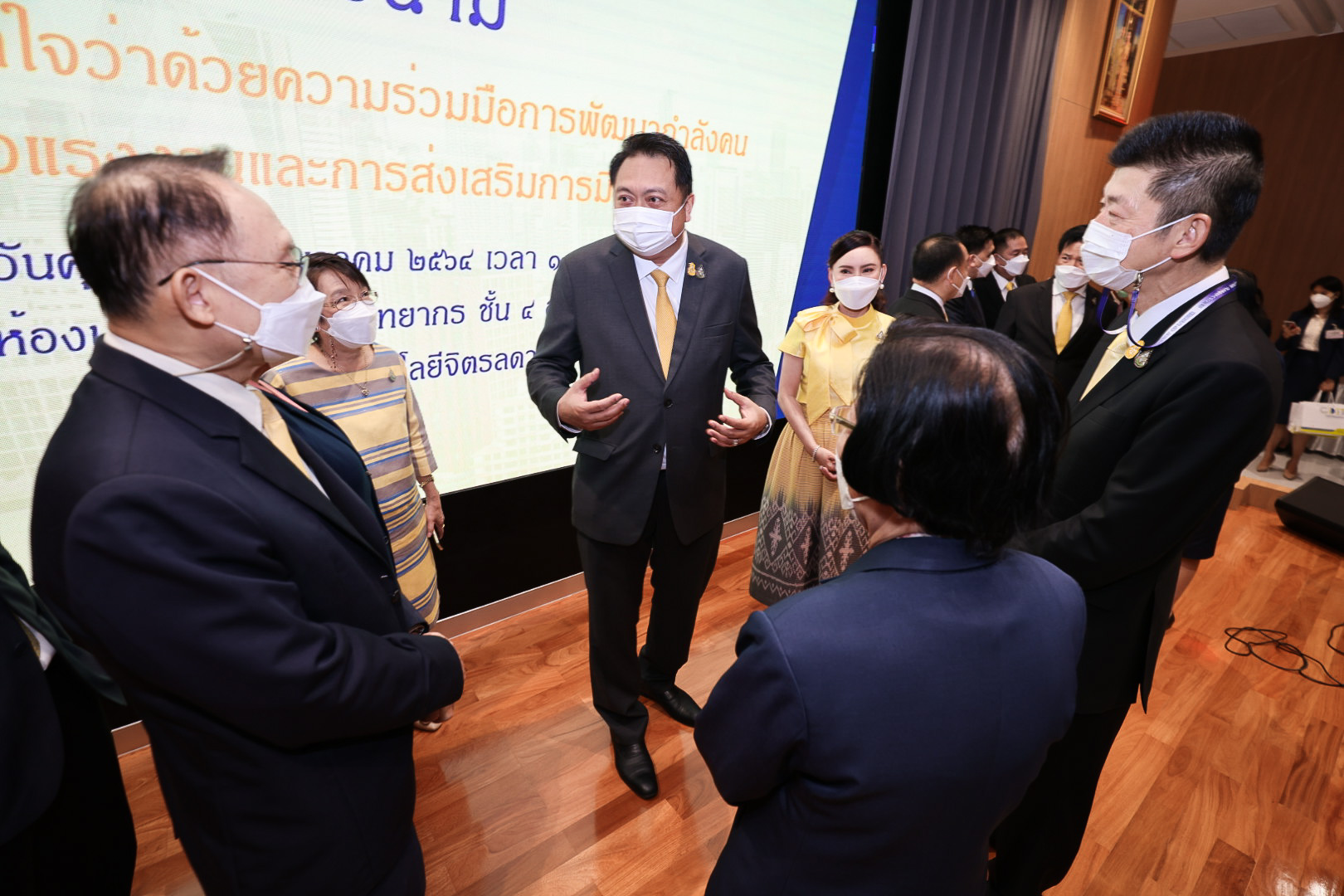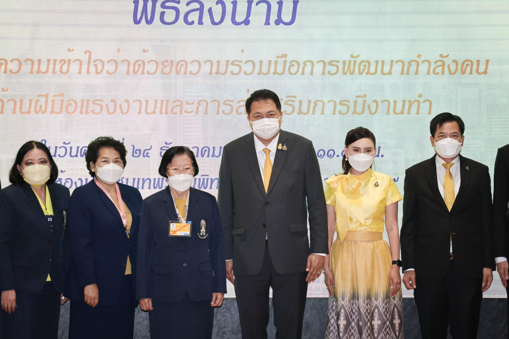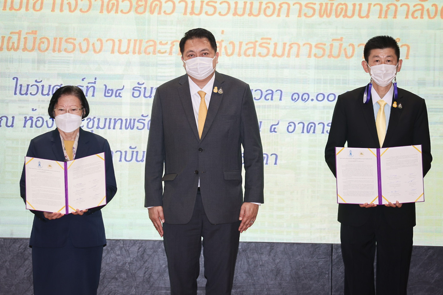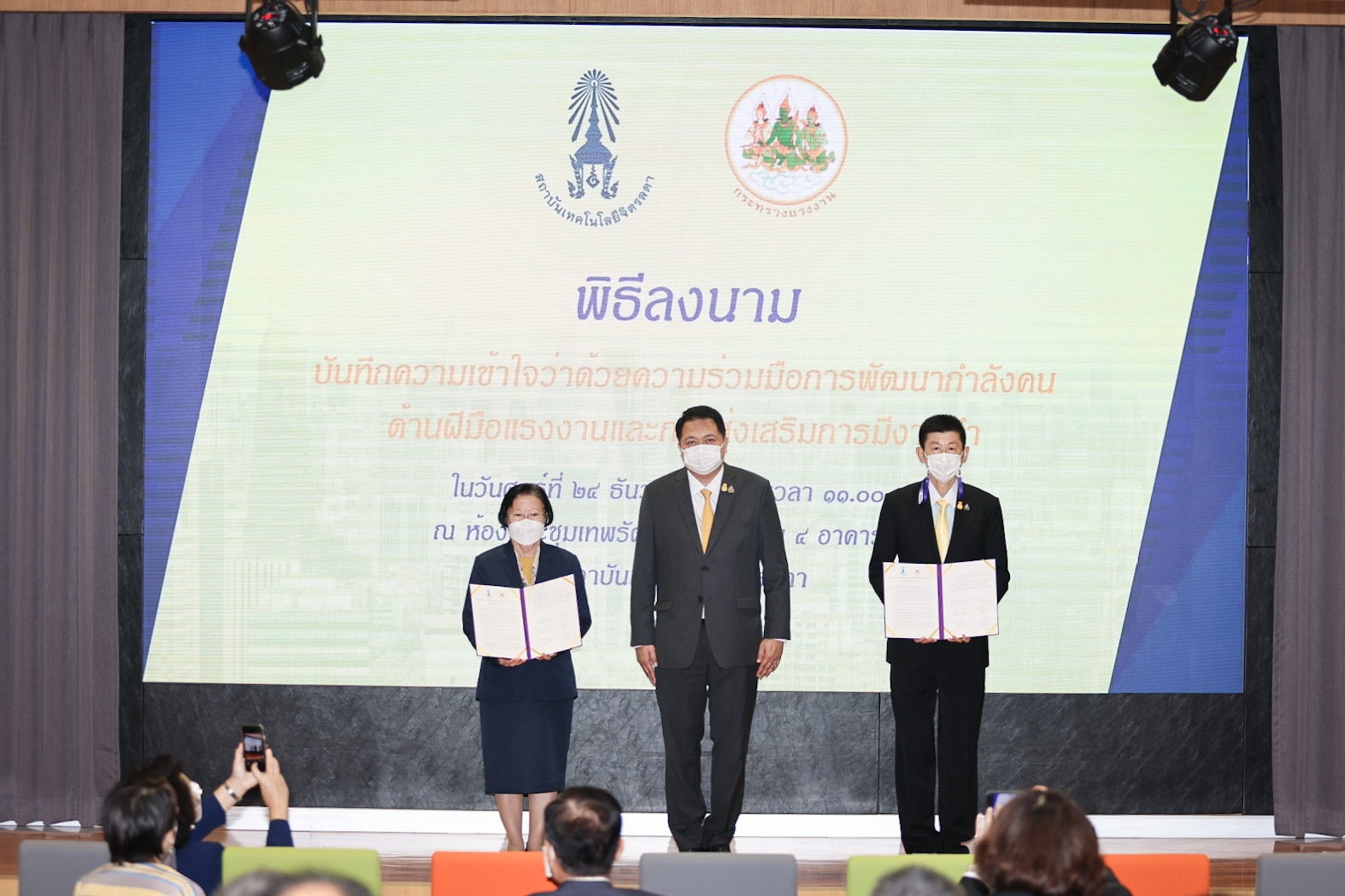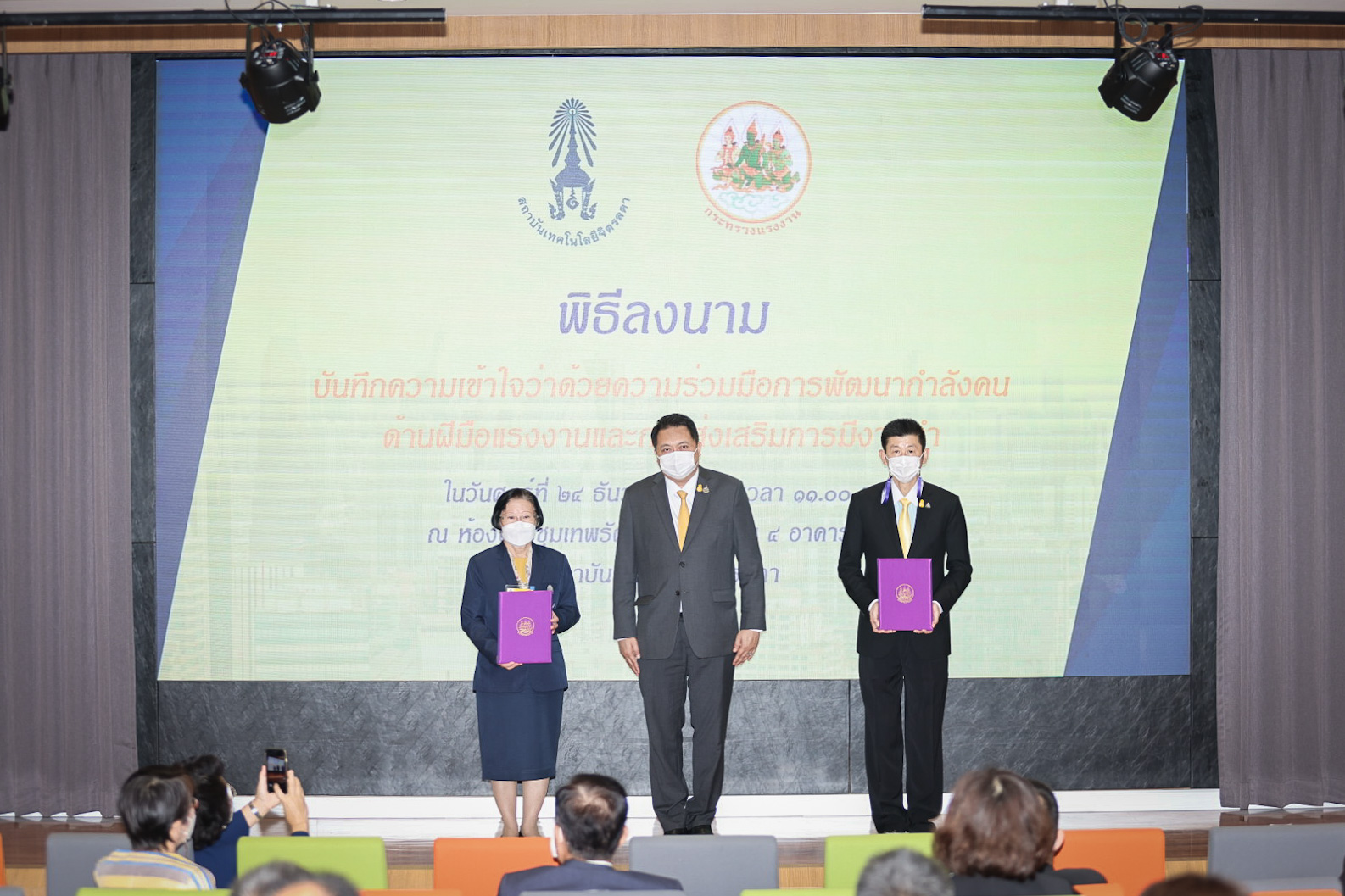 เมื่อเวลา 11.00 น.วันที่ 24 ธันวาคม 2564 ที่ห้องประชุมเทพรัตนพิทยากร ชั้น 4 อาคาร 605 สถาบันเทคโนโลยีจิตรลดา นายสุชาติ ชมกลิ่น รัฐมนตรีว่าการกระทรวงแรงงาน เป็นสักขีพยานในพิธีลงนามบันทึกความเข้าใจว่าด้วยความร่วมมือการพัฒนากำลังคนด้านพัฒนาฝีมือแรงงานและการส่งเสริมการมีงานทำระหว่างสถาบันเทคโนโลยีจิตรลดา กับกระทรวงแรงงานโดยมี รองศาสตราจารย์ ดร.คุณหญิงสุมณฑา พรหมบุญ อธิการบดีสถาบันเทคโนโลยีจิตรลดา นายบุญชอบ สุทธมนัสวงษ์ ปลัดกระทรวงแรงงาน ร่วมลงนาม นายประทีป ทรงลำยอง อธิบดีกรมพัฒนาฝีมือแรงงาน นายไพโรจน์ โชติกเสถียร อธิบดีกรมการจัดหางาน ผู้ช่วยศาสตราจารย์ ดร.สันทนีย์ ผาสุก รองอธิการบดีสถาบันเทคโนโลยีจิตรลดา และ ดร.นวลอนงค์ธรรมเจริญ ผู้อำนวยการโรงเรียนจิตรลดาวิชาชีพ ร่วมเป็นพยาน นางธิวัลรัตน์ อังกินันทน์ ที่ปรึกษารัฐมนตรีว่าการกระทรวงแรงงาน นายสุเทพ ชิตยวงษ์ เลขานุการรัฐมนตรีว่าการกระทรวงแรงงาน พล.ต.ต.นันทชาติ ศุภมงคล ประจำสำนักเลขาธิการนายกรัฐมนตรี ปฏิบัติหน้าที่ประจำกระทรวงแรงงาน นายสุทธิ สุโกศล ประจำสำนักเลขาธิการนายกรัฐมนตรี ปฏิบัติหน้าที่ประจำกระทรวงแรงงาน นางเธียรรัตน์ นะวะมะวัฒน์ โฆษกกระทรวงแรงงาน (ฝ่ายการเมือง) พร้อมด้วยผู้บริหารระดับสูงกระทรวงแรงงาน เข้าร่วมเป็นเกียรติด้วย การลงนามในครั้งนี้มีวัตถุประสงค์เพื่อพัฒนากำลังคนด้านฝีมือแรงงานให้กับประชากรในวัยทำงานให้มีความรู้ความสามารถ ทักษะและทัศนคติที่ดีเกี่ยวกับการทำงานเพื่อเป็นแรงงานที่มีคุณภาพ มีทักษะฝีมือแรงงานที่สูงขึ้น รองรับต่อการขยายตัวของระบบเศรษฐกิจในอนาคต ภายใต้ภารกิจการฝึกอบรมฝีมือแรงงาน การทดสอบมาตรฐานฝีมือแรงงาน รวมทั้งเพื่อส่งเสริมให้นักเรียนและนักศึกษาได้มีงานทำที่เหมาะสมกับความรู้ ความสามารถ และความถนัดให้สอดคล้องกับความต้องการของตลาดแรงงาน