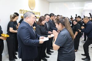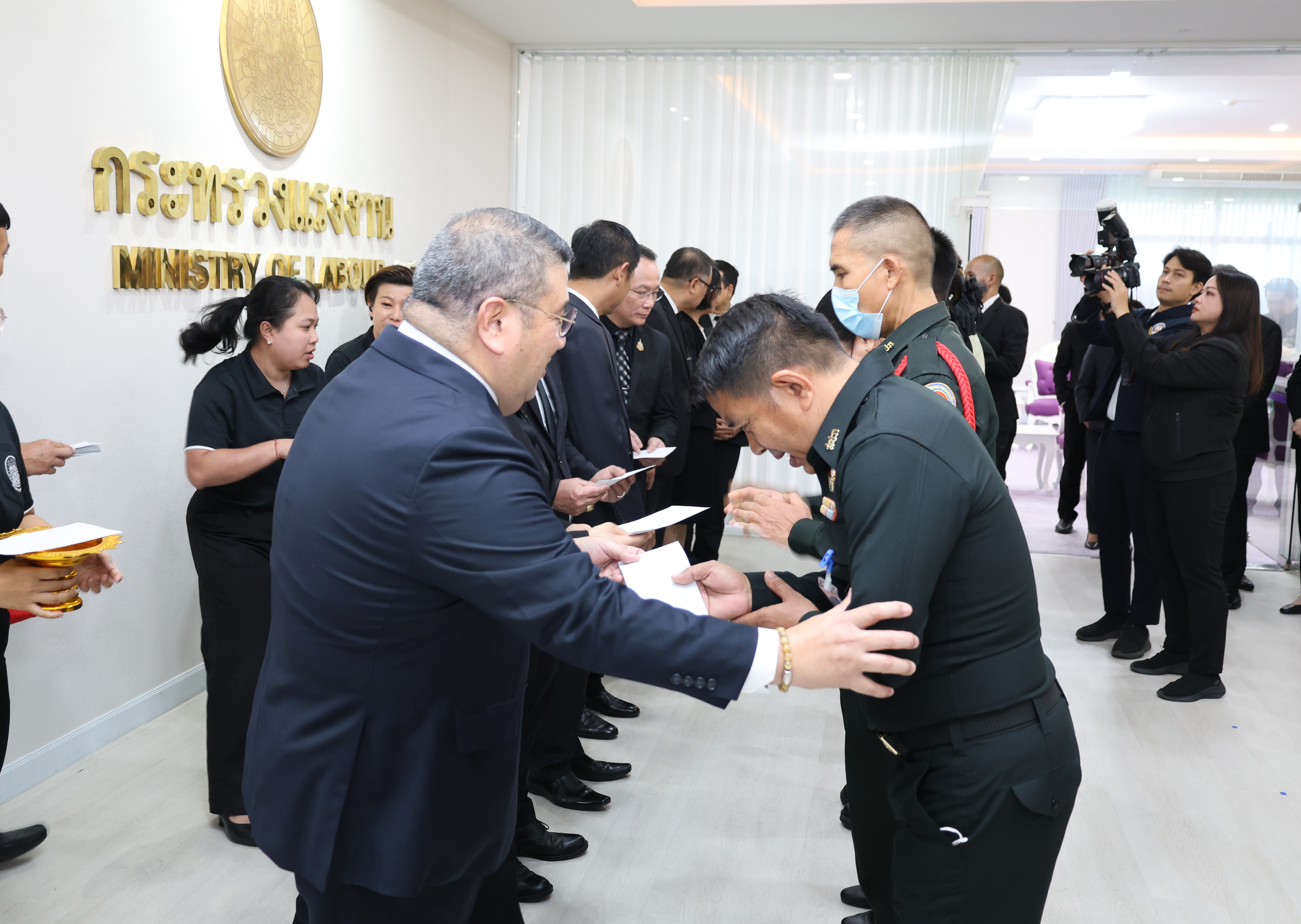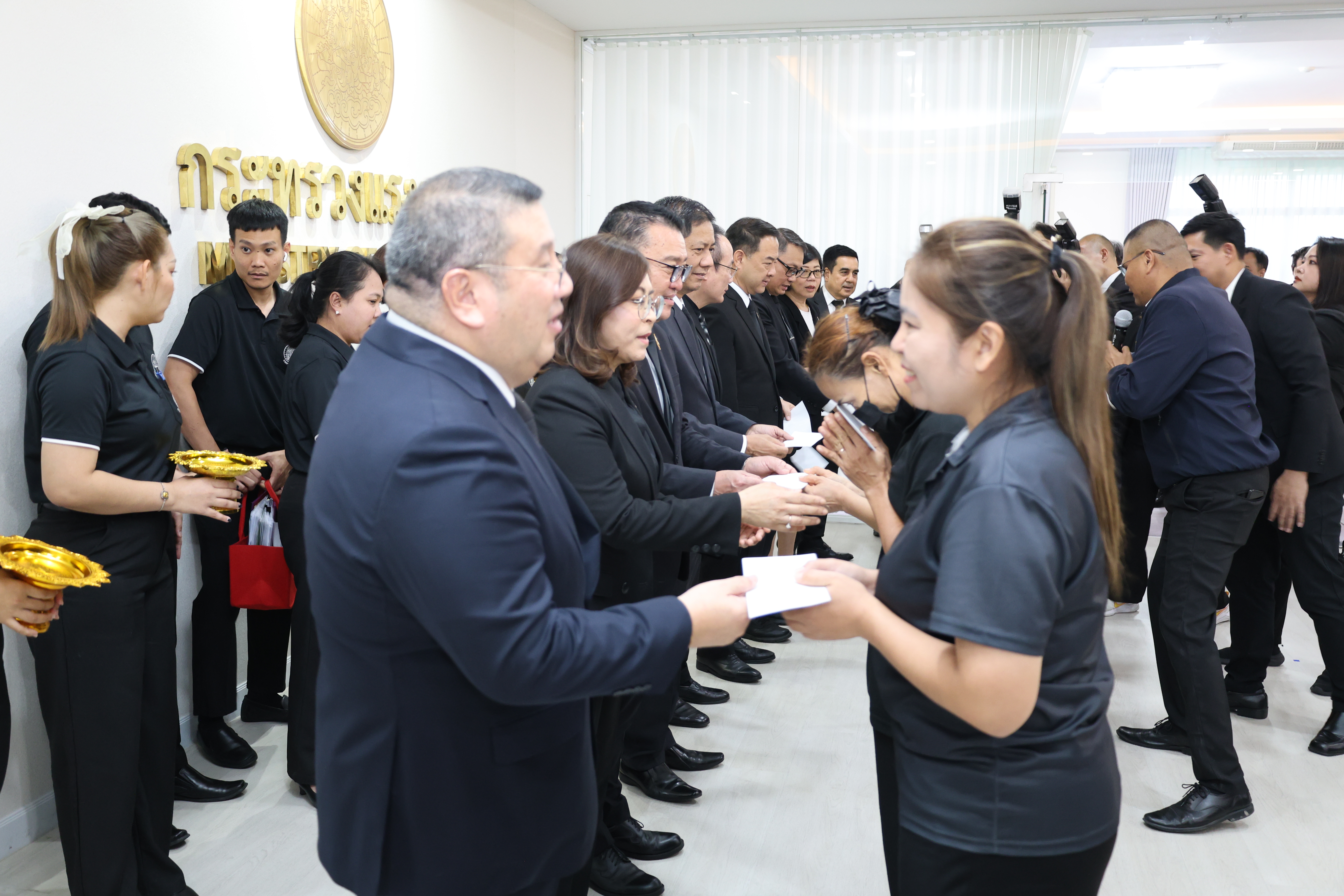 วันที่ 25 ธันวาคม 2568 เวลา 11.30 น. พันตำรวจโท วรรณพงษ์ คชรักษ์ ปลัดกระทรวงแรงงาน มอบของขวัญปีใหม่ 2569 ให้แก่พนักงานรักษาความปลอดภัย และแม่บ้านหน่วยงานในสังกัดกระทรวงแรงงาน พร้อมอวยพรเนื่องในโอกาสเทศกาลปีใหม่ 2569 เพื่อสร้างขวัญกำลังใจในการปฏิบัติงาน โดยมี นางสาวบุปผา เรืองสุด รองปลัดกระทรวงแรงงาน ในฐานะนายกสมาคมแม่บ้านกระทรวงแรงงาน นายสันติ นันตสุวรรณ รองปลัดกระทรวงแรงงาน นายพิเชษฐ์ ทองพันธ์ รองปลัดกระทรวงแรงงาน ผู้บริหารระดับสูงในสังกัดกระทรวงแรงงาน ร่วมมอบของขวัญปีใหม่ด้วย ณ บริเวณห้องปฏิบัติราชการปลัดกระทรวงแรงงาน ชั้น 7 อาคารกระทรวงแรงงาน