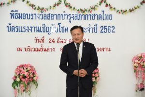 วันนี้ (24 ธ.ค.62) เวลา 10.00 น. นายสุทธิ สุโกศล ปลัดกระทรวงแรงงาน เป็นประธานในพิธีมอบรางวัลสลากบำรุงกาชาดไทย “บัตรแรงงานเชิญรับโชค” ประจำปี 2562 ณ บริเวณชั้นล่าง อาคารกระทรวงแรงงาน โดยมี นายนิยม สองแก้ว ผู้ช่วยปลัดกระทรวงแรงงาน เข้าร่วมในครั้งนี้ด้วย โดยปลัดกระทรวงแรงงานกล่าวว่า “กระทรวงแรงงานมีการจัดหารายได้เพื่อนำเข้าสมาคมแม่บ้านกระทรวงแรงงาน โดยในทุกปีจะมีการจัดงานกาชาด ซึ่งในปีนี้ได้จัดงานเมื่อวันที่ 15 – 24 พฤศจิกายน 2562 ซึ่งกระทรวงแรงงานได้จัดจำหน่ายสลากกาชาดของสมาคมแม่บ้านกระทรวงแรงงาน ซึ่งปีนี้มีรายได้จากการจำหน่ายบัตรรวมทั้งสิ้น 1,776,710 บาท เพื่อนำรายได้ทูลเกล้าฯ ถวายสมเด็จพระกนิษฐาธิราชเจ้า กรมสมเด็จพระเทพรัตนราชสุดาฯ สยามบรมราชกุมารี องค์อุปนายิกาผู้อำนวยการสภากาชาดไทย และนำมาใช้จ่ายในกิจกรรมที่เป็นประโยชน์ในเรื่องของสาธารณกุศล ส่วนหนึ่งจัดเป็นทุนการศึกษาให้กับบุตรของข้าราชการและเจ้าหน้าที่กระทรวงแรงงานที่มีรายได้น้อย