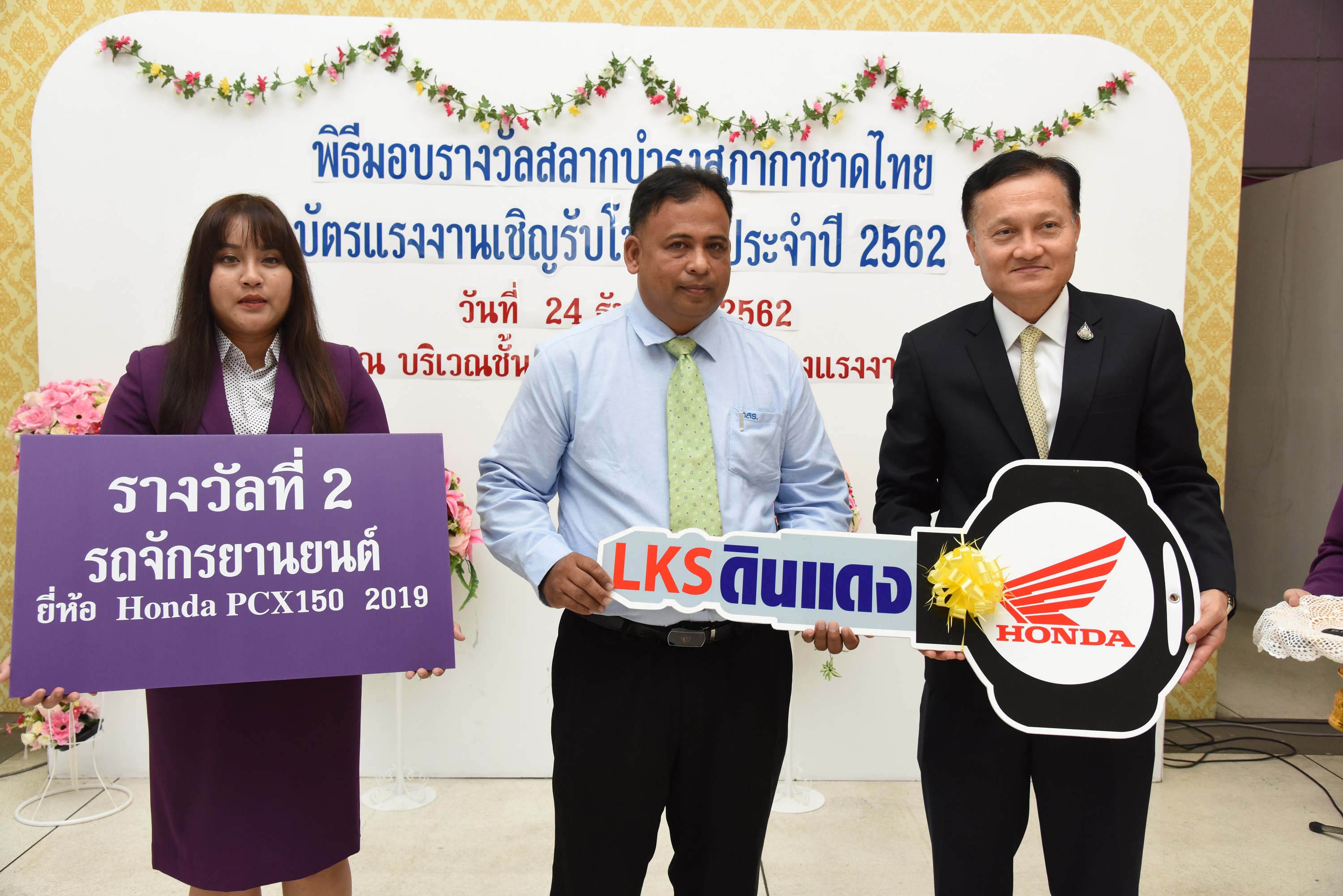 สำหรับผู้โชคดีที่ได้รับรางวัลในครั้งนี้แบ่งเป็นรางวัลที่ 1 รถยนต์นั่งส่วนบุคคล ยี่ห้อ HONDA CITY 1.5 V CVT จำนวน 1 คัน ได้แก่ นายสรายุทธ์ หัตถิยา จากจังหวัดเชียงราย รางวัลที่ 2 รถจักรยานยนต์ HONDA PCX 150 CC 2019 จำนวน 1 รางวัล ได้แก่ นายอภิเชฎฐ์ สุขเกษม จากจังหวัดนครศรีธรรมราช รางวัลที่ 3 สร้อยคอทองคำหนัก 4 บาท จำนวน 1 รางวัล ได้แก่ นางอุไร จามจุรีย์ เป็นชาวจังหวัดภูเก็ตซึ่งติดภารกิจไม่สามารถมารับรางวัลได้ รางวัลที่ 4 สร้อยคอทองคำหนัก 2 บาท จำนวน 2 รางวัล ได้แก่ คุณอารีรัตน์ ลิ้มประภาศิริ จากบริษัท บางกอกบรรจุภัณฑ์ จำกัด และนางเรืองรัตน์ อดิการิ รางวัลที่ 5 สร้อยคอทองคำ หนัก 1 บาท จำนวน 2 รางวัล ได้แก่ คุณสุจิตรา อยู่หนู ชาวจังหวัดนครสวรรค์ และนายก่อกฤตภ์ เบญจกุล ชาวจังหวัดนครศรีธรรมราช รางวัลที่ 6 สร้อยคอทองคำหนัก 2 สลึง จำนวน 3 รางวัล ได้แก่ ตัวแทนบริษัทแลนด์แอนด์เฮาส์ จำกัด จังหวัดขอนแก่น คุณบุษกร แนวหล้า จังหวัดปทุมธานี และนายปฐม ภู่เด่นดวง จังหวัดราชบุรี