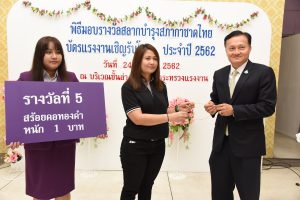 ปลัดกระทรวงแรงงาน มอบรางวัลแก่ผู้โชคดีจากการจำหน่ายสลากบำรุงกาชาดไทย “บัตรแรงงานเชิญรับโชค”ประจำปี 2562 พร้อมนำรายได้ทูลเกล้าฯ ถวายสมเด็จพระเทพรัตนราชสุดาฯ สยามบรมราชกุมารี องค์อุปนายิกาผู้อำนวยการสภากาชาดไทย