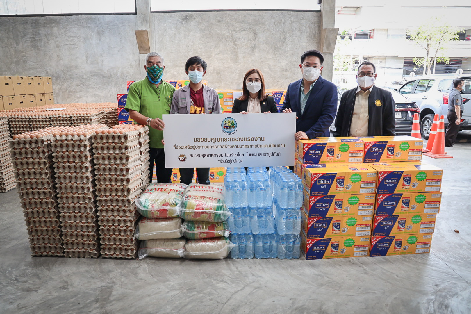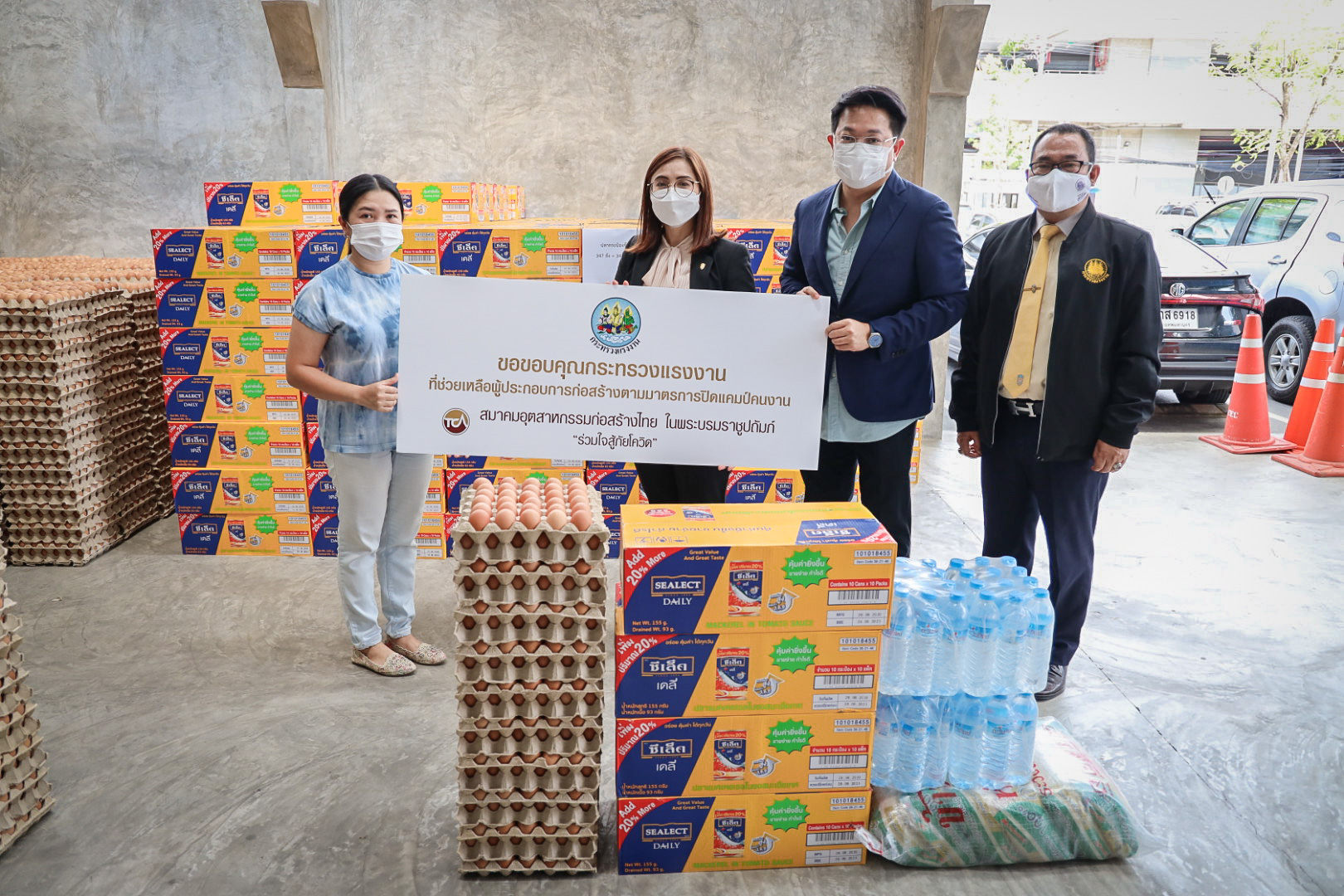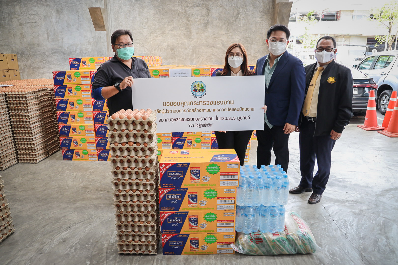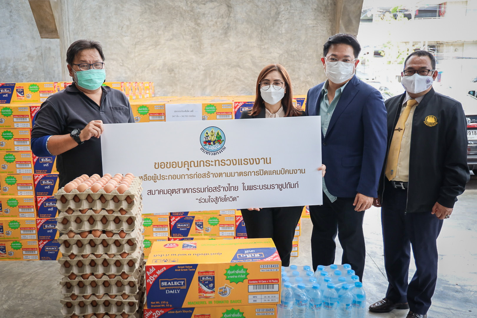 วันนี้ (30 มิ.ย. 64) เวลา 15.00 น. นายสุชาติ ชมกลิ่น รัฐมนตรีว่าการกระทรวงแรงงาน มอบหมายให้ นางสาวบุปผา เรืองสุด ผู้ตรวจราชการกระทรวงแรงงาน พร้อมด้วย นายกฤตภัทรครุฑกุล ผู้อำนวยการสำนักตรวจและประเมินผล และเจ้าหน้าที่กระทรวงแรงงาน นำของบริจาคจาก บริษัท เจริญโภคภัณฑ์อาหาร จำกัด (มหาชน) บริษัท ไทยยูเนี่ยน กรุ๊ป จำกัด (มหาชน) บริษัทในเครือ แสงทอง-อัครา บริษัท กรุงไทยผลิตภัณฑ์อาหาร จำกัด และ บริษัท ที เทค ดีเวลลอปเม้นท์ จำกัด ซึ่งประกอบด้วย ปลากระป๋อง 4,400 กระป๋อง ไข่ไก่ 10,500 ฟอง ข้าวสาร16 กระสอบ และน้ำดื่ม 44 แพ็ค ไปมอบให้กับแคมป์คนงานก่อสร้างของบริษัท พรพระนครจำกัด บริษัท 7 เอ็มอาร์ จำกัด บริษัท ศรีทรงชัยการช่าง จำกัด และ บริษัท สรธัช เอ็นจิเนียริ่งจำกัด ณ สมาคมอุตสาหกรรมก่อสร้างไทยในพระบรมราชูปถัมภ์