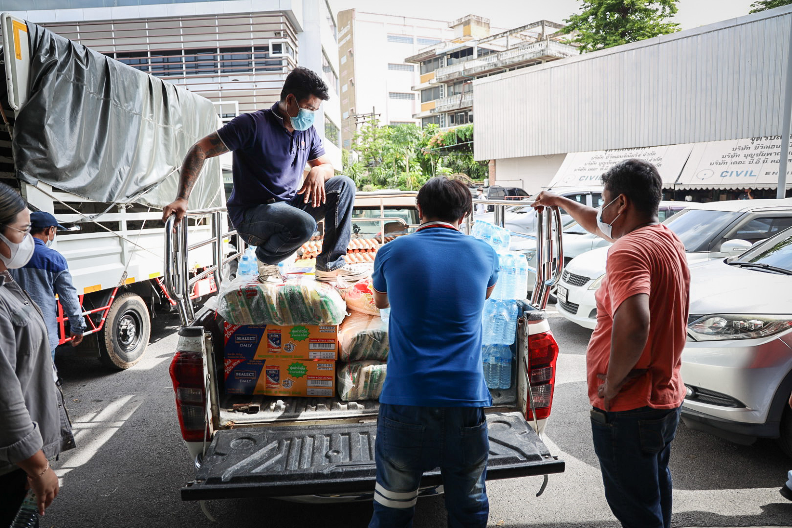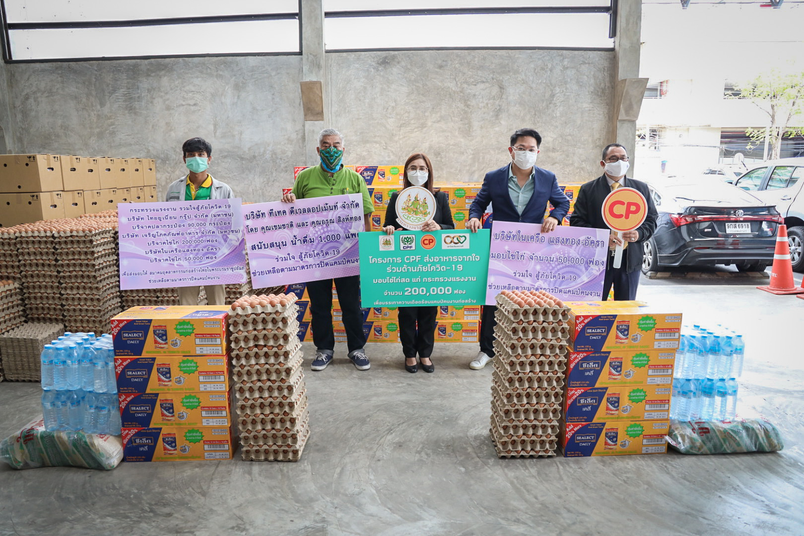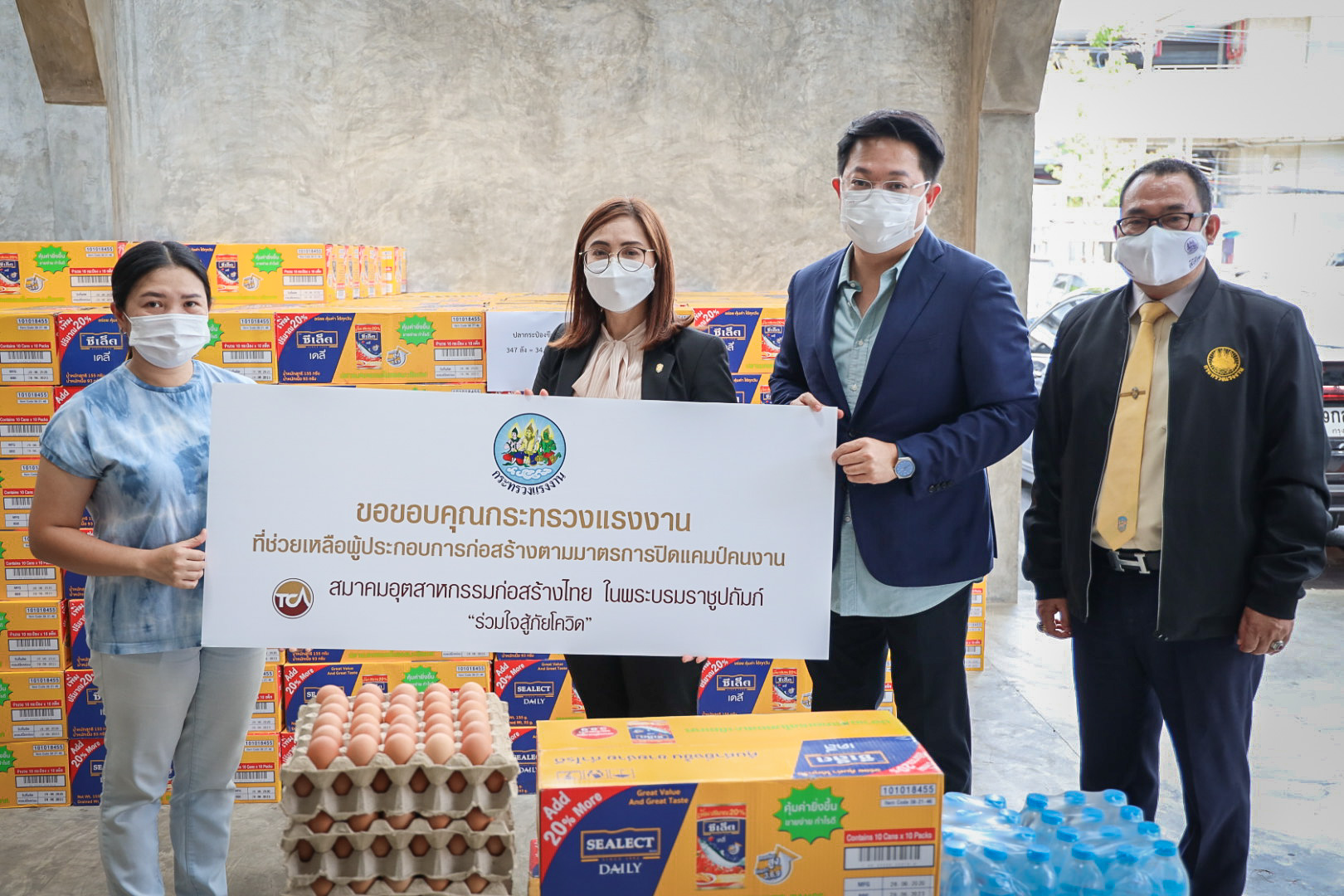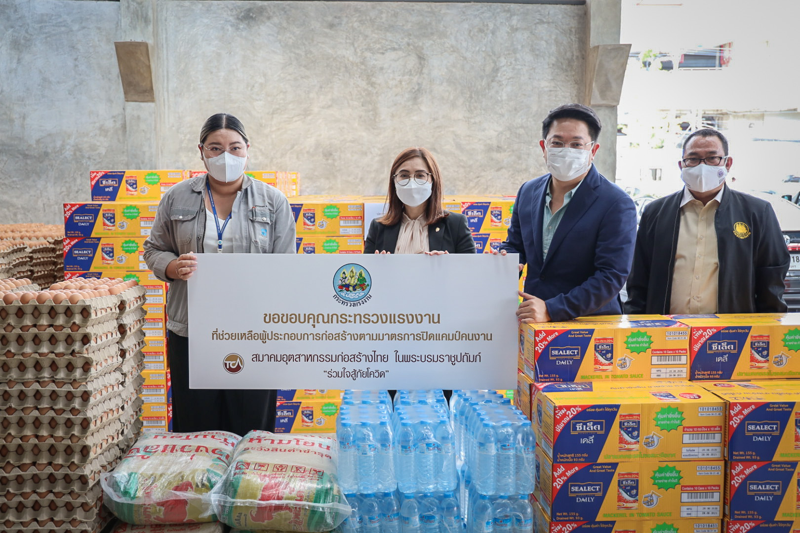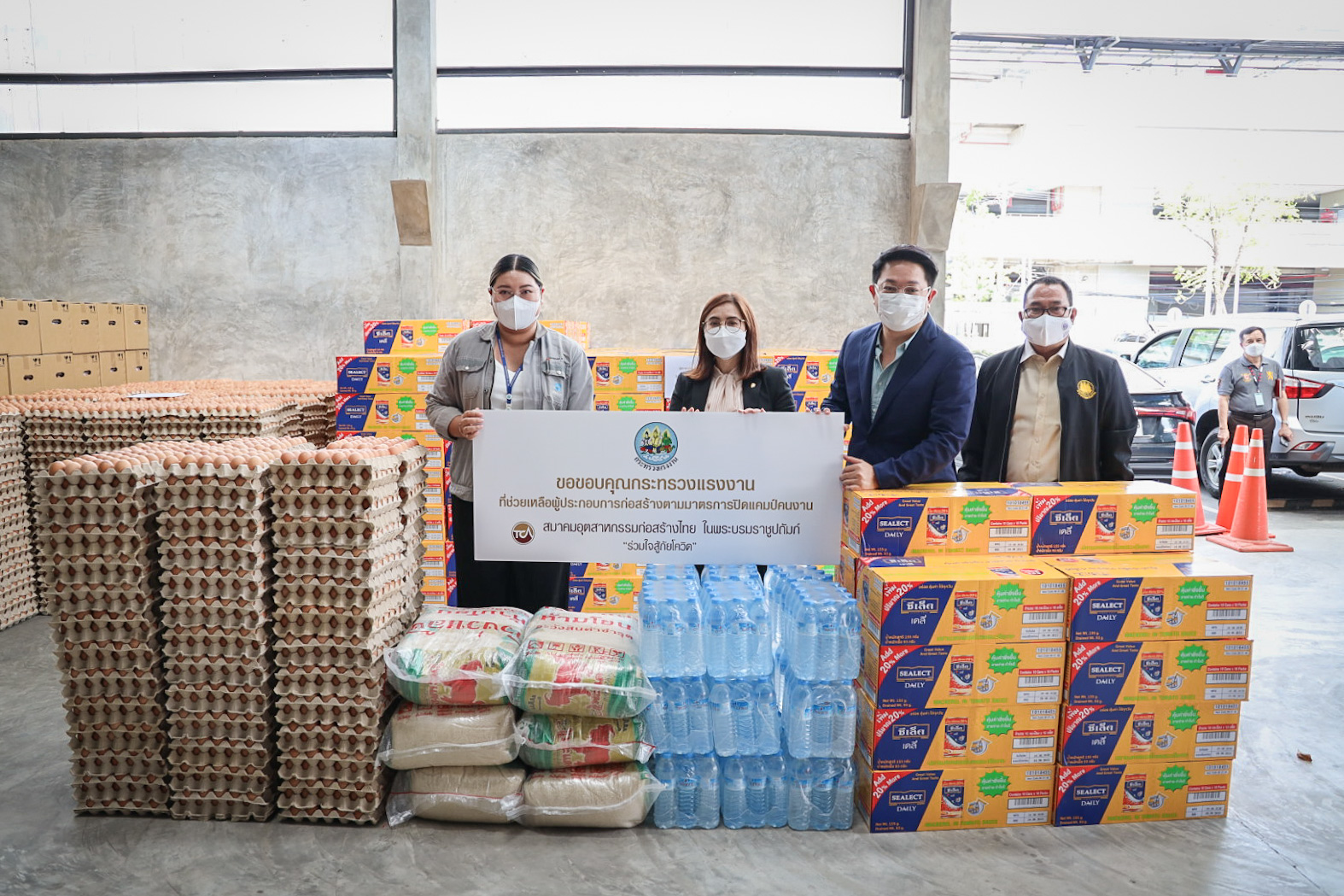 วันนี้ (30 มิ.ย. 64) เวลา 15.00 น. นายสุชาติ ชมกลิ่น รัฐมนตรีว่าการกระทรวงแรงงาน มอบหมายให้ นางสาวบุปผา เรืองสุด ผู้ตรวจราชการกระทรวงแรงงาน พร้อมด้วย นายกฤตภัทรครุฑกุล ผู้อำนวยการสำนักตรวจและประเมินผล และเจ้าหน้าที่กระทรวงแรงงาน นำของบริจาคจาก บริษัท เจริญโภคภัณฑ์อาหาร จำกัด (มหาชน) บริษัท ไทยยูเนี่ยน กรุ๊ป จำกัด (มหาชน) บริษัทในเครือ แสงทอง-อัครา บริษัท กรุงไทยผลิตภัณฑ์อาหาร จำกัด และ บริษัท ที เทค ดีเวลลอปเม้นท์ จำกัด ซึ่งประกอบด้วย ปลากระป๋อง 4,400 กระป๋อง ไข่ไก่ 10,500 ฟอง ข้าวสาร16 กระสอบ และน้ำดื่ม 44 แพ็ค ไปมอบให้กับแคมป์คนงานก่อสร้างของบริษัท พรพระนครจำกัด บริษัท 7 เอ็มอาร์ จำกัด บริษัท ศรีทรงชัยการช่าง จำกัด และ บริษัท สรธัช เอ็นจิเนียริ่งจำกัด ณ สมาคมอุตสาหกรรมก่อสร้างไทยในพระบรมราชูปถัมภ์