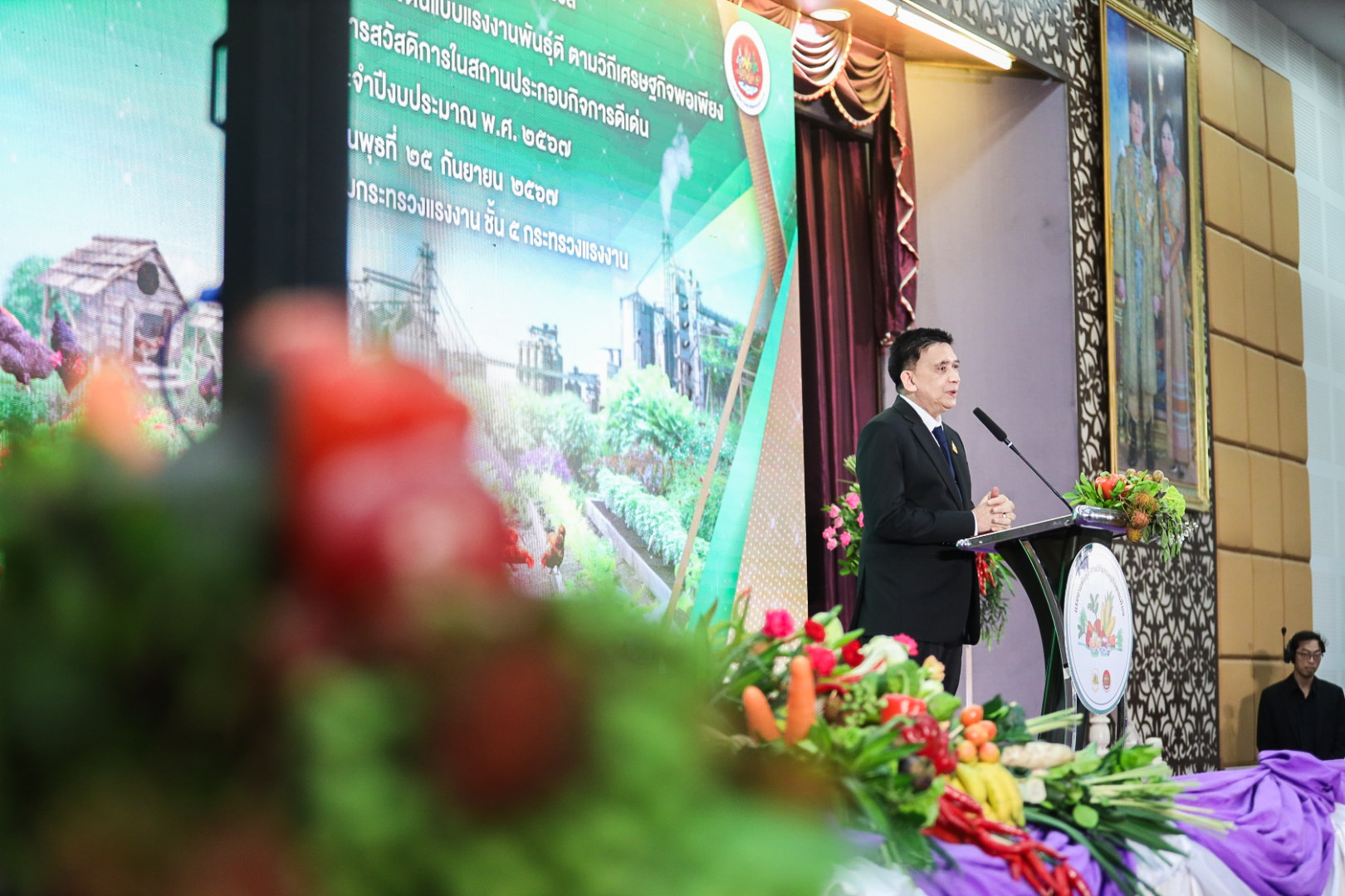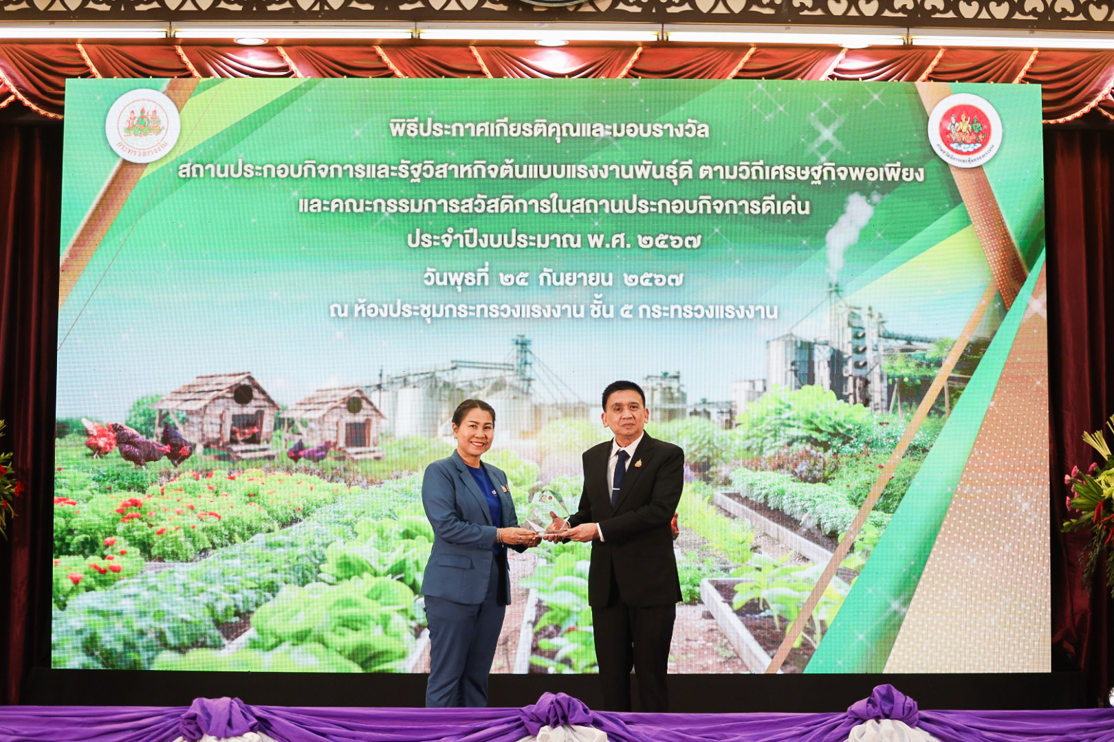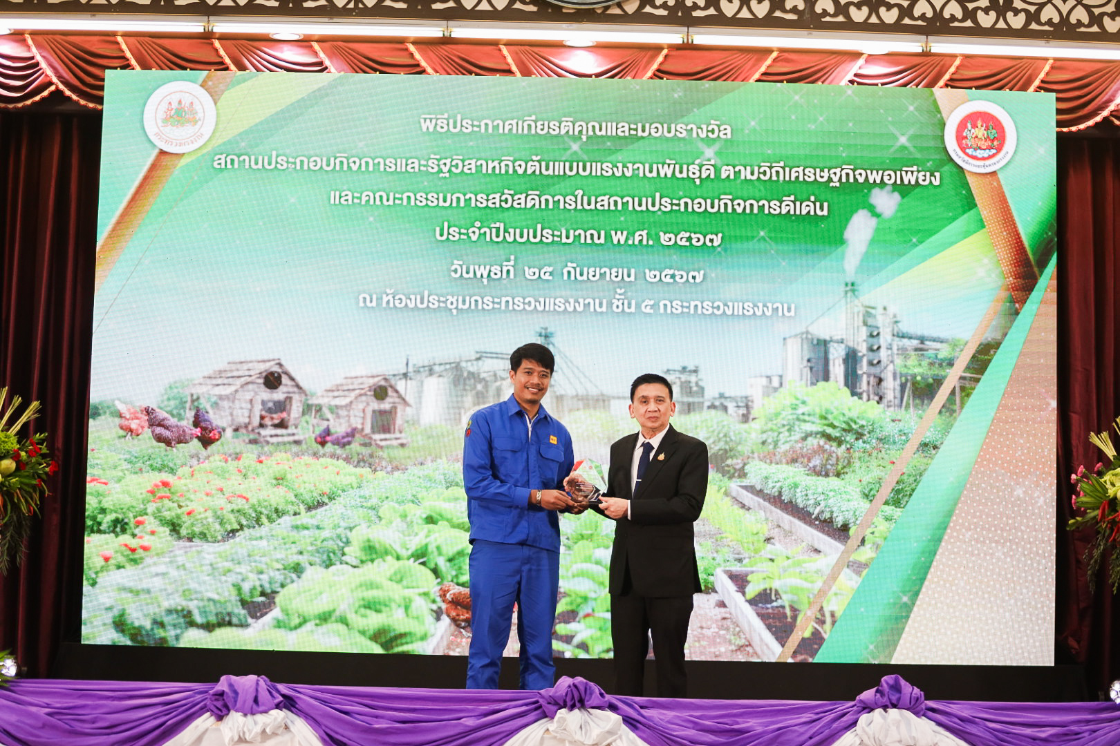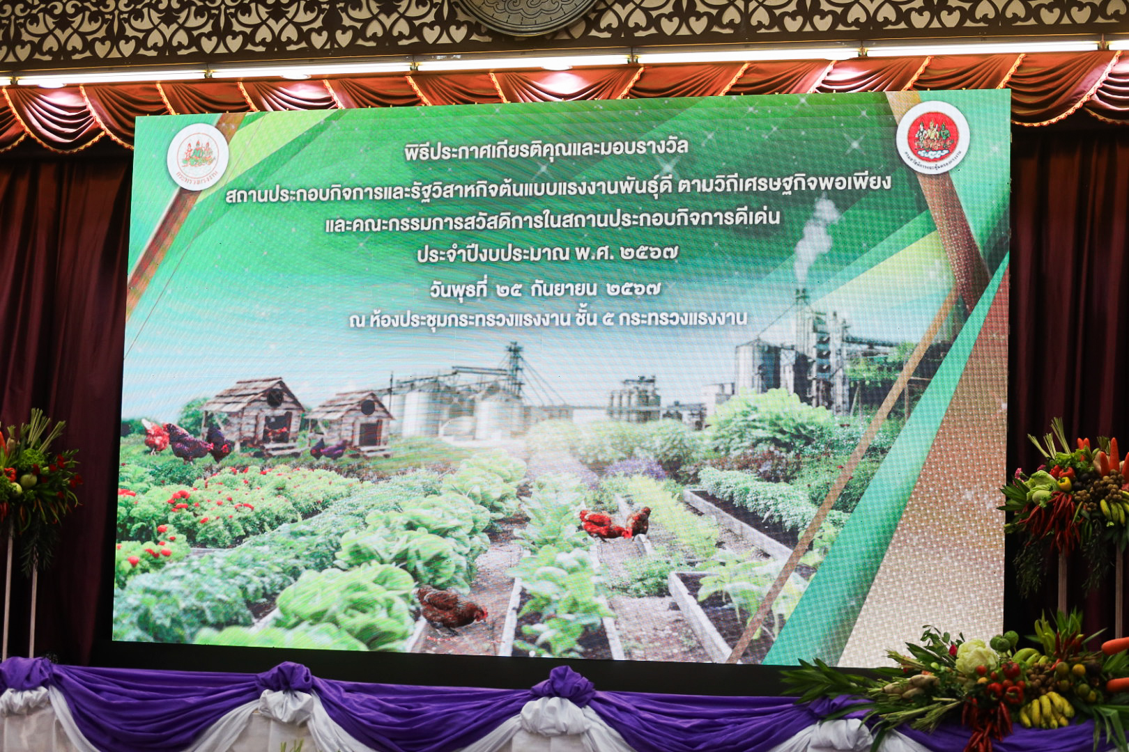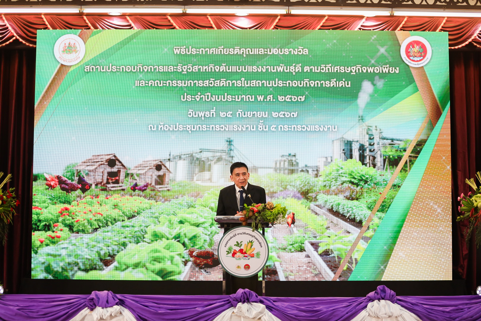 วันที่ 25 กันยายน 2567 เวลา 13.30 น. นายไพโรจน์ โชติกเสถียร ปลัดกระทรวงแรงงาน เป็นประธานในพิธีมอบโล่ประกาศเกียรติคุณแก่สถานประกอบกิจการ และรัฐวิสาหกิจต้นแบบแรงงานพันธุ์ดี ตามวิถีเศรษฐกิจพอเพียง และคณะกรรมการสวัสดิการในสถานประกอบกิจการดีเด่น ประจำปีงบประมาณ พ.ศ. 2567 เพื่อประกาศเกียรติคุณและยกย่องให้เป็นต้นแบบในการจัดสวัสดิการเพื่อการพัฒนาคุณภาพชีวิตแรงงาน โดยมี ผู้บริหารระดับสูง ข้าราชการ และเจ้าหน้าที่กระทรวงแรงงาน เข้าร่วม ณ ห้องประชุมกระทรวงแรงงาน ชั้น 5 อาคารกระทรวงแรงงาน