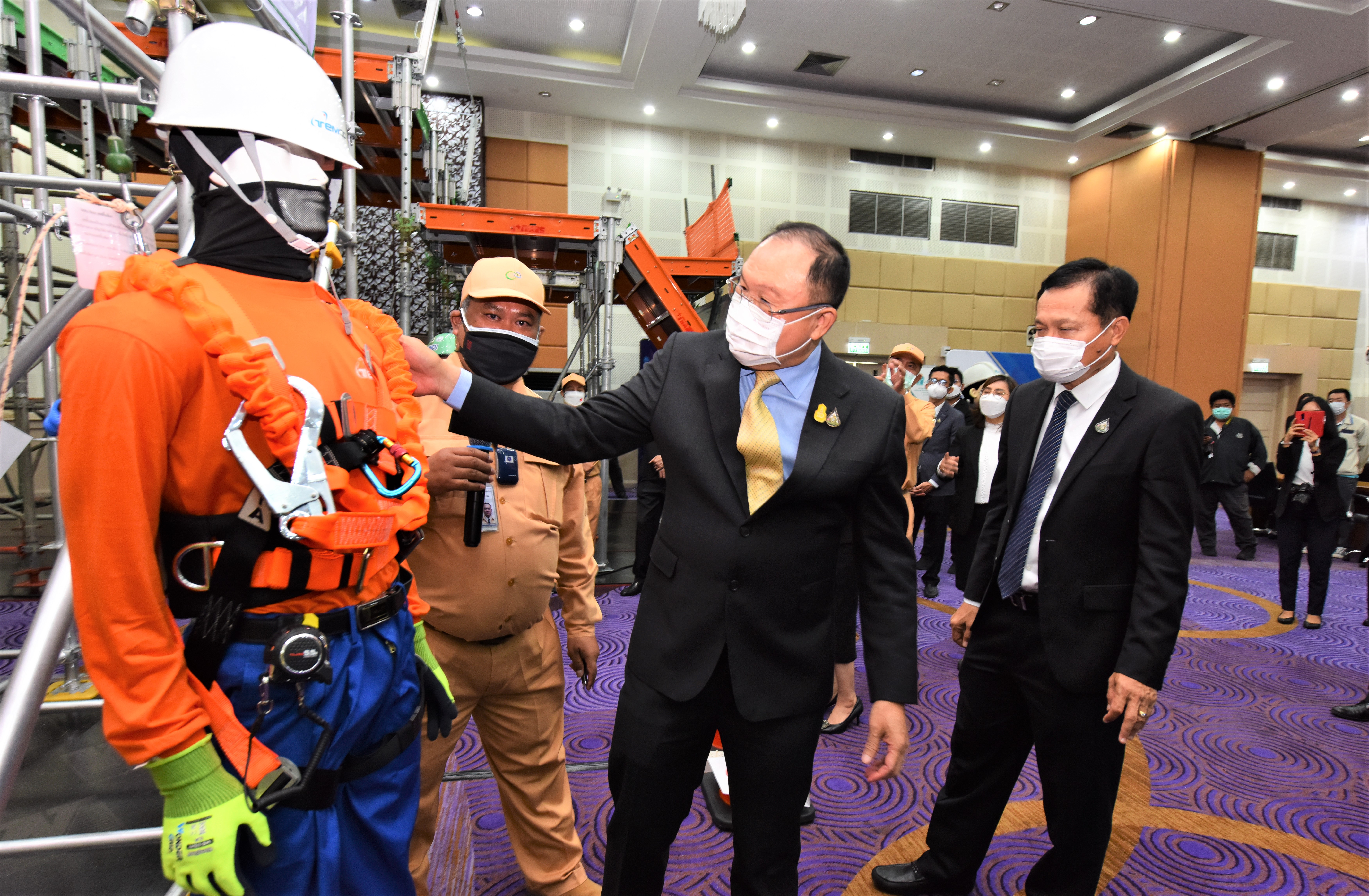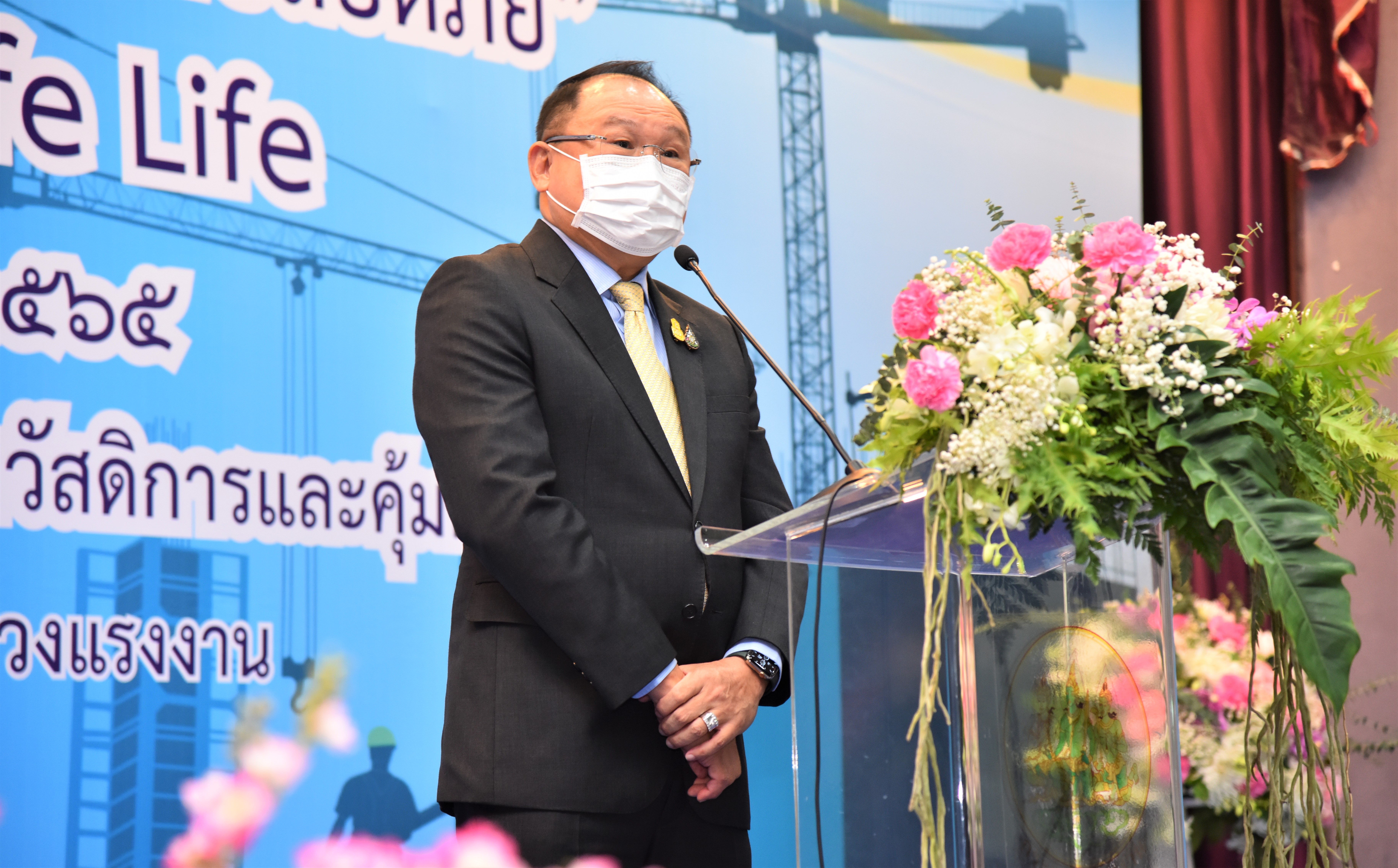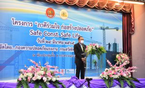นายสุรชัย ชัยตระกูลทอง ผู้ช่วยรัฐมนตรีประจำกระทรวงแรงงาน เปิดเผยว่า กระทรวงแรงงานภายใต้การนำของพล.อ.ประยุทธ์ จันทร์โอชา นายกรัฐมนตรีและรัฐมนตรีว่าการกระทรวงกลาโหม และภายใต้การกำกับดูแลของพล.อ.ประวิตร วงษ์สุวรรณ รองนายกรัฐมนตรี ได้ตระหนักถึงสถานการณ์ที่เกิดขึ้นและเปลี่ยนแปลงไปอย่างรวดเร็ว และในช่วงเวลาที่ผ่านมาแรงงานก่อสร้างประสบอันตรายและบาดเจ็บจากการทำงานสูงและมีแนวโน้มสูงขึ้นเรื่อย ๆ เพื่อป้องกันไม่ให้เกิดอุบัติเหตุซ้ำ จึงได้กำหนดเป็นนโยบายให้กระทรวงแรงงานดำเนินการด้านการป้องกัน และปลูกฝังจิตสำนึกภาคีเครือข่ายก่อสร้างให้ดำเนินการป้องกันไม่ให้เกิดสภาพปัญหาความไม่ปลอดภัยจากการทำงานด้วยการเสริมสร้างความตระหนักรู้เชิงป้องกันอุบัติเหตุในการทำงานก่อสร้างและร่วมใจลดสถิติการประสบอันตรายจากการทำงานในกิจการก่อสร้าง และลดความเสี่ยงต่อการเกิดอันตรายซ้ำอีก โดยโครงการที่จัดขึ้นในครั้งนี้ขอให้ภาคีเครือข่ายภาคการก่อสร้างทั้งหลายร่วมมือ ร่วมใจโดยมีเป้าหมายเดียวกันคือ ร่วมพลังร่วมใจป้องกันไม่ให้เกิดสภาพปัญหาความไม่ปลอดภัยจากการทำงานก่อสร้างขึ้นและร่วมกันดูแลให้ลูกจ้างมีสุขภาพอนามัยที่ดี สามารถขับเคลื่อนสังคมภาคการก่อสร้างให้เกิดความปลอดภัยอย่างยั่งยืนเพื่อมุ่งสร้างประโยชน์สุขให้ประชาชนพี่น้องชาวแรงงานต่อไป