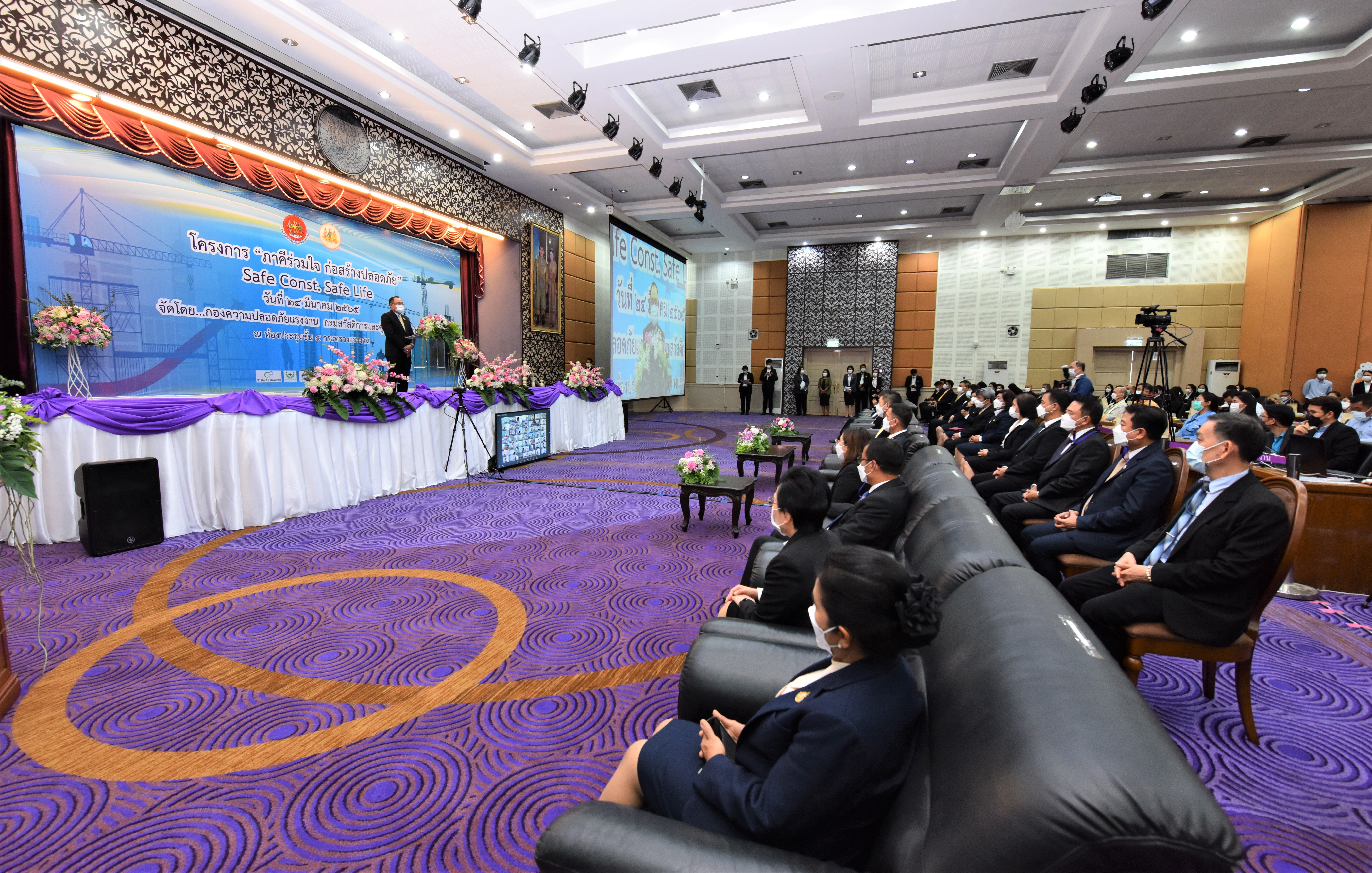 เมื่อวันที่ 24 มีนาคม 2565 ที่ห้องประชุม ชั้น 5 อาคารกระทรวงแรงงาน นายสุรชัย ชัยตระกูลทอง ผู้ช่วยรัฐมนตรีประจำกระทรวงแรงงาน ประธานในพิธีเปิดงานโครงการ “ภาคีร่วมใจ ก่อสร้างปลอดภัย”ภายใต้ Motto “Safe Const. Safe Life” โดยมี นางธิวัลรัตน์ อังกินันทน์ ที่ปรึกษารัฐมนตรีว่าการกระทรวงแรงงาน นายสุเทพ ชิตยวงษ์ เลขานุการรัฐมนตรีว่าการกระทรวงแรงงาน นายสุทธิ สุโกศล ประจำสำนักเลขาธิการนายกรัฐมนตรี ปฏิบัติหน้าที่ประจำกระทรวงแรงงาน นายบุญชอบ สุทธมนัสวงษ์ ปลัดกระทรวงแรงงาน และนายนิยม สองแก้ว อธิบดีกรมสวัสดิการและคุ้มครองแรงงาน พร้อมด้วยผู้บริหารระดับสูงของกระทรวงแรงงาน ภาคีเครือข่ายภาคการก่อสร้าง และเจ้าหน้าที่เกี่ยวข้อง เข้าร่วมด้วย