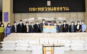 วันที่ 29 ตุลาคม 2564 เวลา 13.30 น. นายสุชาติ ชมกลิ่น รัฐมนตรีว่าการกระทรวงแรงงาน รับมอบข้าวสาร จากนางสาวอิสรีย์ ภักหาญสวัสดิ์ นายกสมาคมนายจ้างเพื่อการลงทุนในไทย และกรรมการบริษัท บิลเลี่ยนไทยซับพลายส์ จำกัด จำนวน 3,000 ถุง รวม 15,000 กิโลกรัม เพื่อให้กระทรวงแรงงานนำไปช่วยเหลือพี่น้องผู้ใช้แรงงานผู้ประสพอุทกภัยที่ได้รับความเดือดร้อน โดยมีนายสุรชัย ชัยตระกูลทอง ผู้ช่วยรัฐมนตรีประจำกระทรวงแรงงาน พร้อมด้วยนายบุญชอบ สุทธมนัสวงษ์ ปลัดกระทรวงแรงงาน เข้าร่วมในครั้งนี้ด้วย ณ บริเวณห้องโถง ชั้นล่าง อาคารกระทรวงแรงงาน
