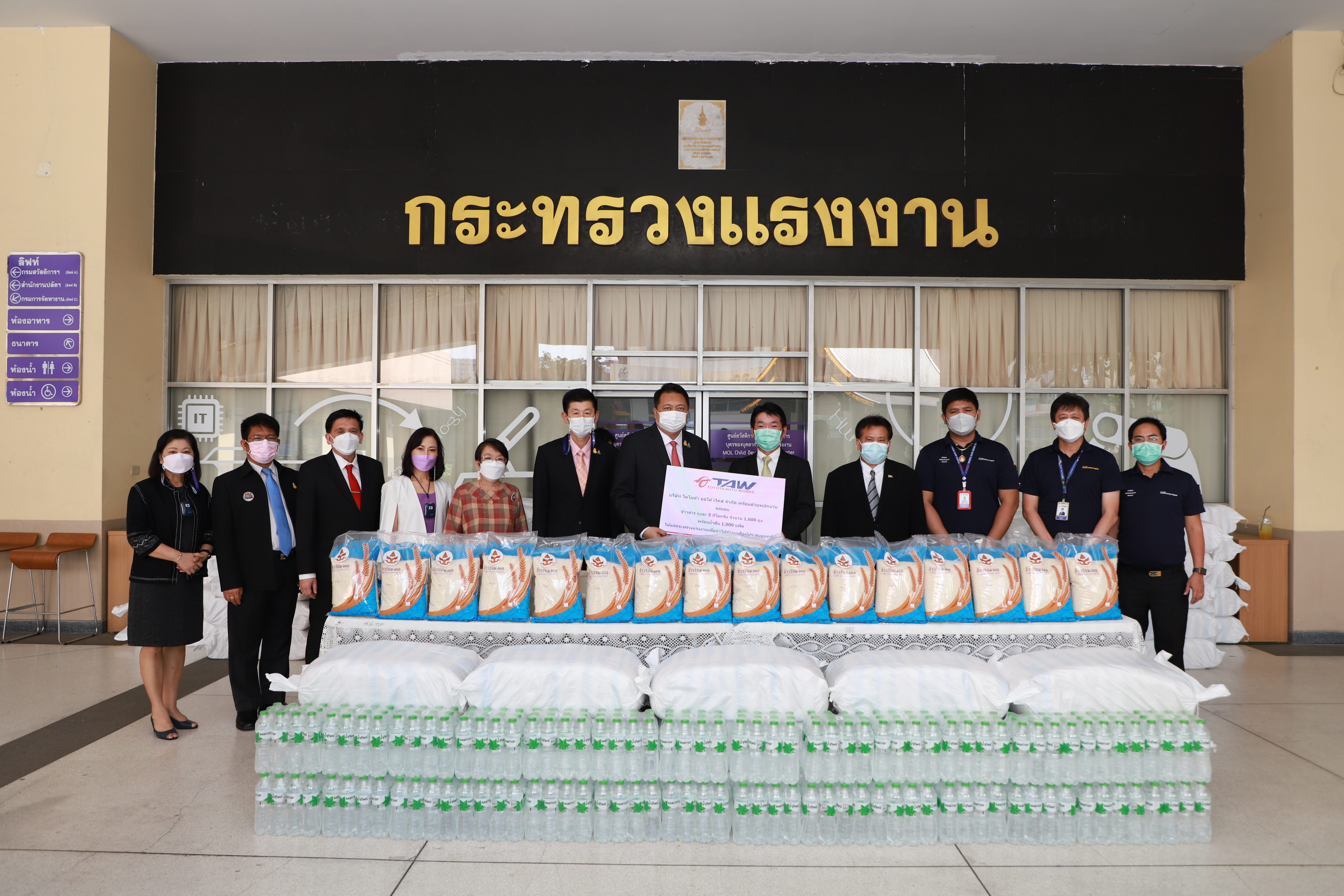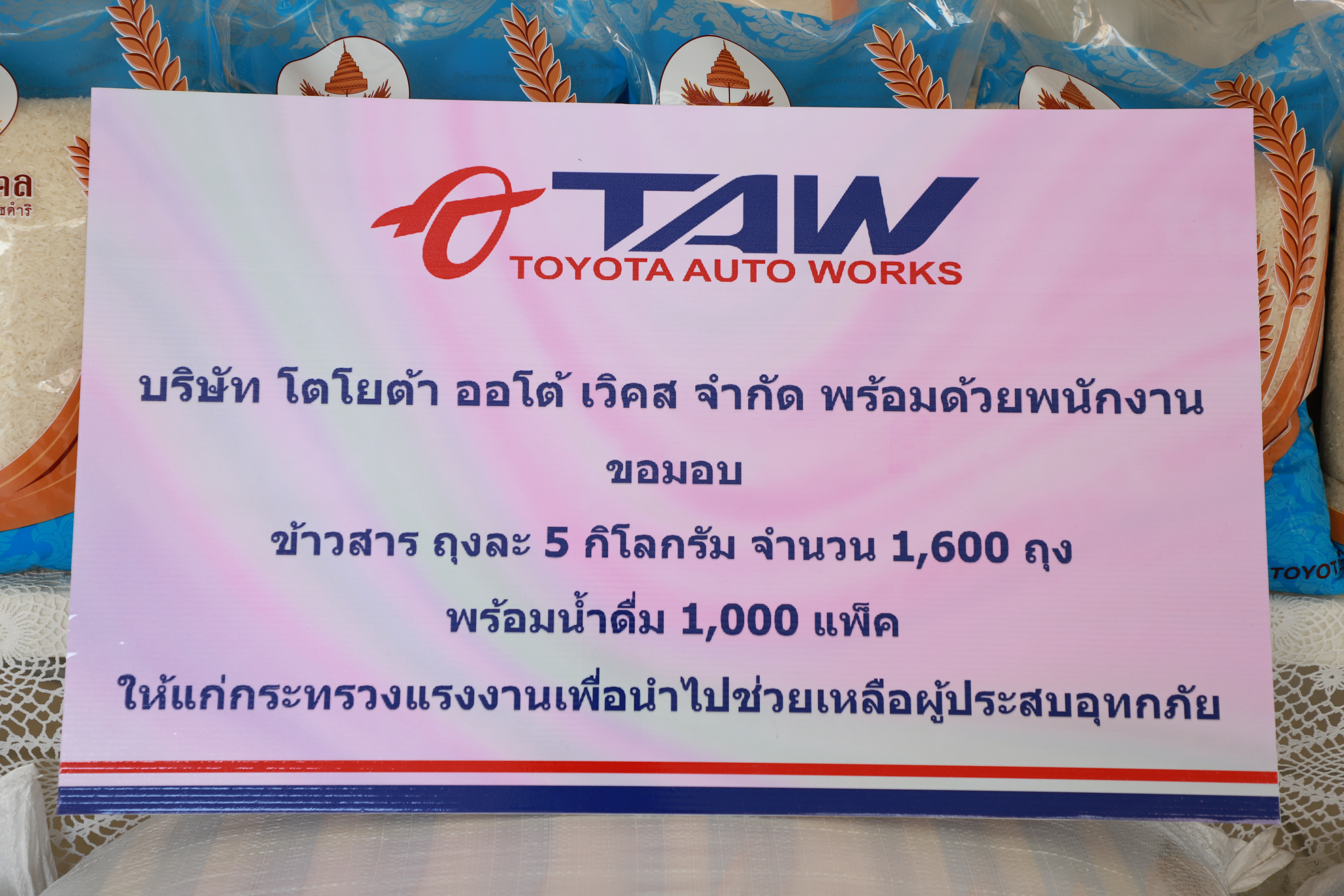 วันที่ 11 พฤศจิกายน 2564 เวลา 13.30 น. นายสุชาติ ชมกลิ่น รัฐมนตรีว่าการกระทรวงแรงงาน รับมอบข้าวสาร จาก มร.โทชิยะ คุมาซากิ กรรมการผู้จัดการใหญ่ บริษัท โตโยต้า ออโต้ เวิคส จำกัด และคณะ จำนวน 1,600 ถุง รวม 8,000 กิโลกรัม และน้ำดื่ม จำนวน 1,000 แพ็ค เพื่อให้กระทรวงแรงงานนำไปช่วยเหลือพี่น้องผู้ใช้แรงงานผู้ประสบอุทกภัยที่ได้รับความเดือดร้อน โดยมี นางเธียรรัตน์ นะวะมะวัฒน์ โฆษกกระทรวงแรงงาน(ฝ่ายการเมือง) นายบุญชอบ สุทธมนัสวงษ์ ปลัดกระทรวงแรงงาน และผู้บริหารระดับสูงสังกัดกระทรวงแรงงาน เข้าร่วมในครั้งนี้ด้วย ณ บริเวณห้องโถง ชั้นล่าง อาคารกระทรวงแรงงาน