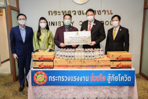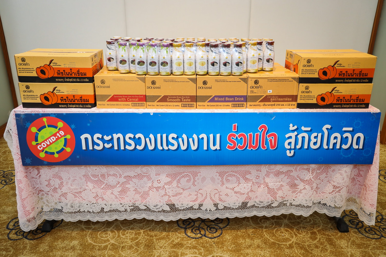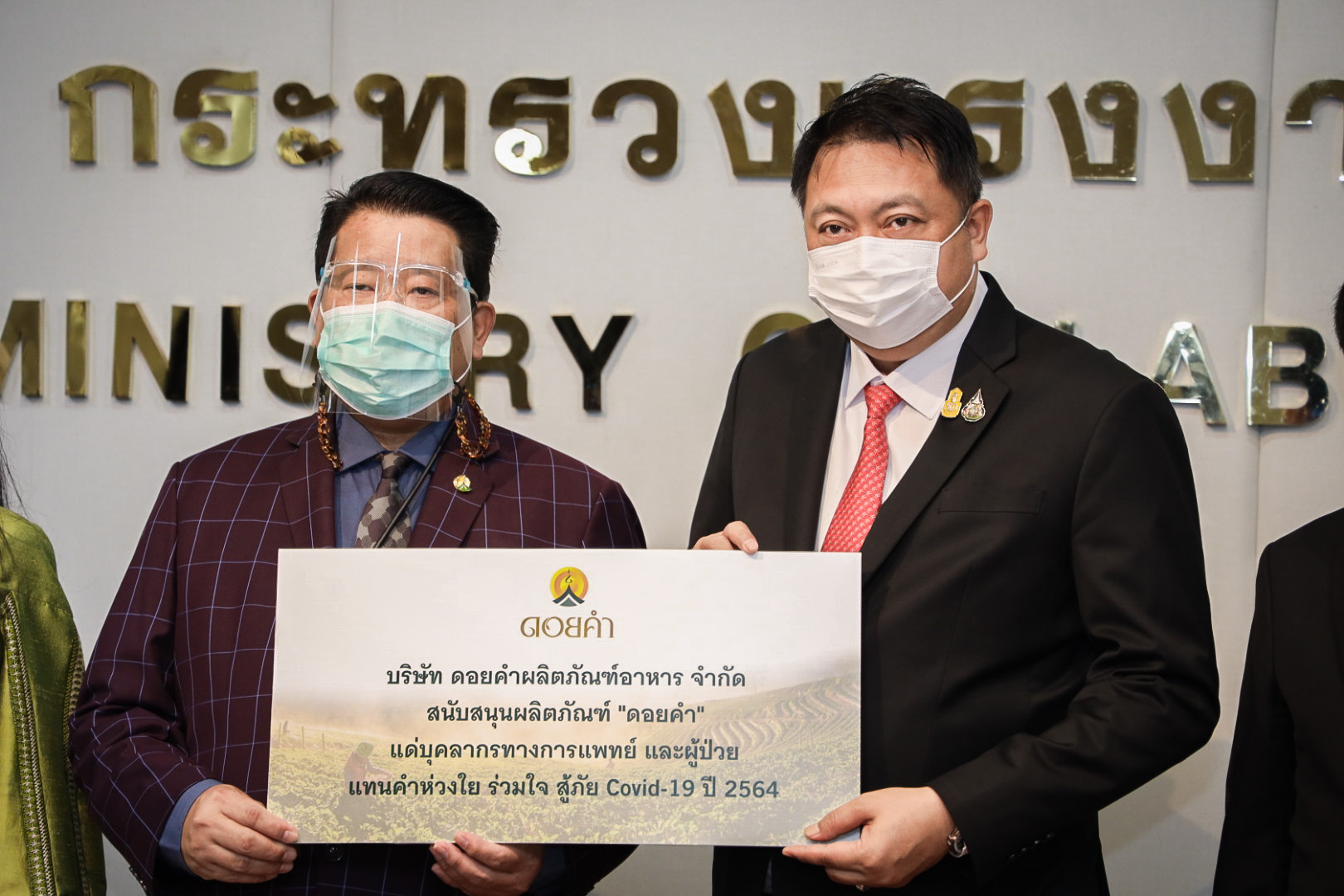 เมื่อวันที่ 21 พฤษภาคม 2564 นายสุชาติ ชมกลิ่น รัฐมนตรีว่าการกระทรวงแรงงาน รับผลิตภัณฑ์อาหารเพื่อสุขภาพ อาทิ น้ำข้าวกล้องงอก สูตรกลมกล่อมจำนวน 380 ขวด น้ำข้าวกล้องหอมนิลงอก สูตรธัญพืชจำนวน 321 ขวด เครื่องดื่มธัญพืชถั่ว จำนวน 164 ขวด และพีชผ่าครึ่งในน้ำเชื่อม 565 กรัม จำนวน 1,000 กระป๋อง จาก นายพิพัฒพงศ์ อิศรเสนา ณ อยุธยากรรมการผู้จัดการใหญ่ นางชนันนัทธ์ พลปัถพี รองผู้จัดการใหญ่ (ด้านขายและการตลาด) และนายชาญณรงค์ พรดิลกรัตน์ ผู้จัดการฝ่ายสื่อสารองค์กร ผู้บริหารบริษัท ดอยคำผลิตภัณฑ์อาหาร จำกัด เพื่อส่งมอบให้เจ้าหน้าที่และบุคลากรทางการแพทย์ที่ตรวจโควิด-19 เชิงรุก แก่ผู้ประกันตน แรงงานนอกระบบ และประชาชนทั่วไป เพื่อป้องกันโควิด-19 โดยมี นายสุเทพ ชิตยวงษ์ เลขานุการรัฐมนตรีว่าการกระทรวงแรงงาน และ นายนันทชัย ปัญญาสุรฤทธิ์ ผู้ตรวจราชการกรม สำนักงานประกันสังคม ร่วมรับมอบในครั้งนี้ด้วย ณ ห้องจัตุมงคล ชั้น 6 อาคารกระทรวงแรงงาน