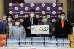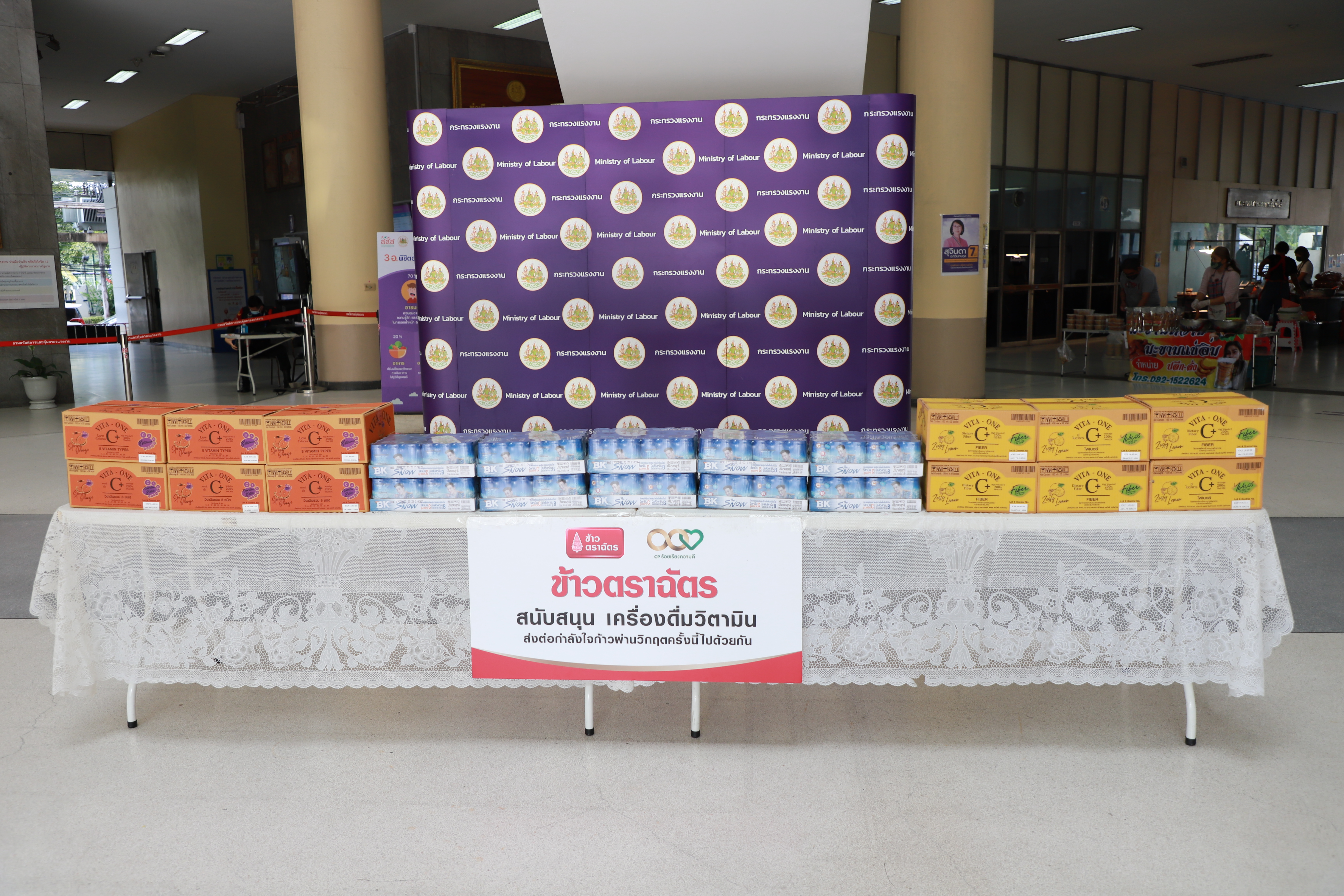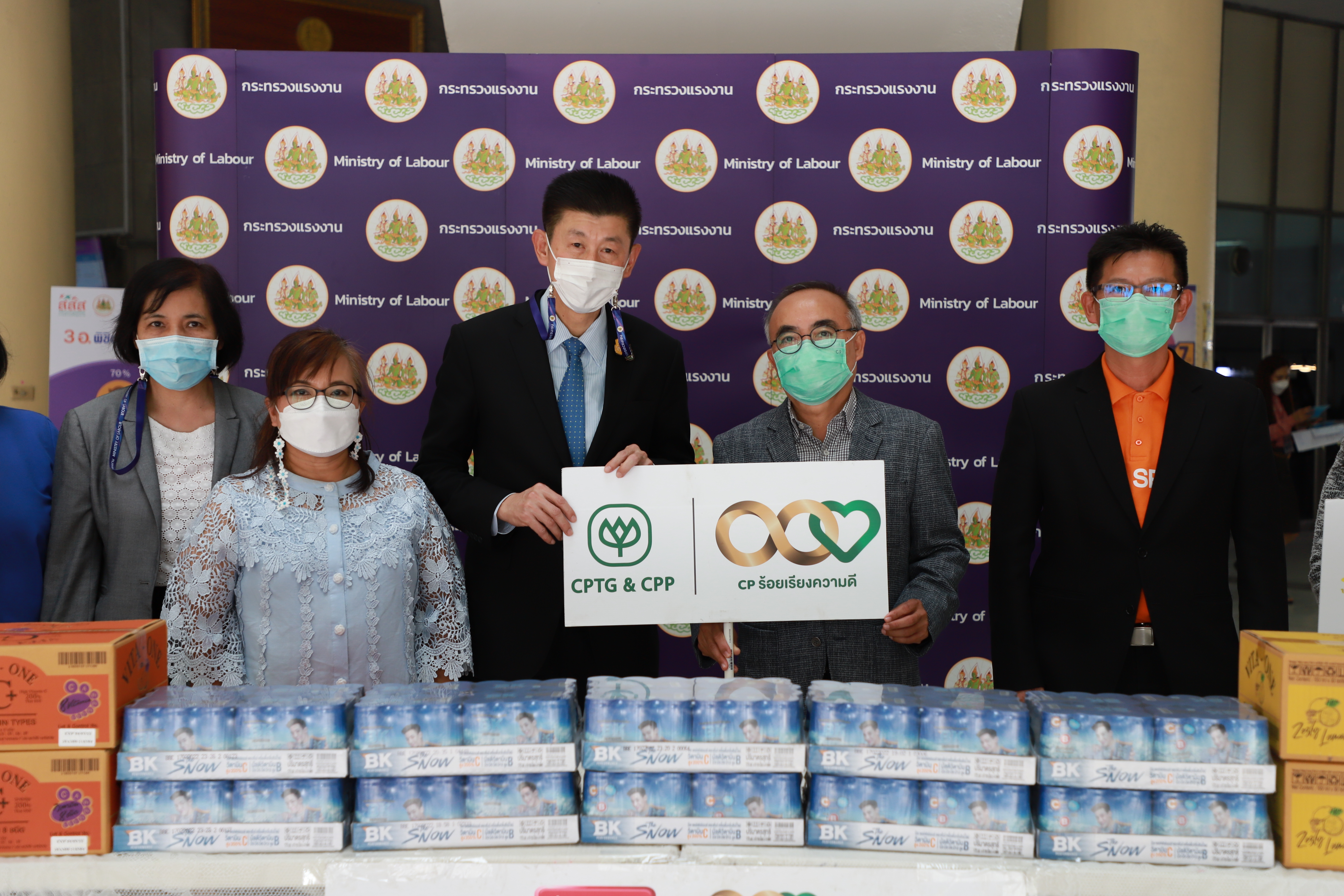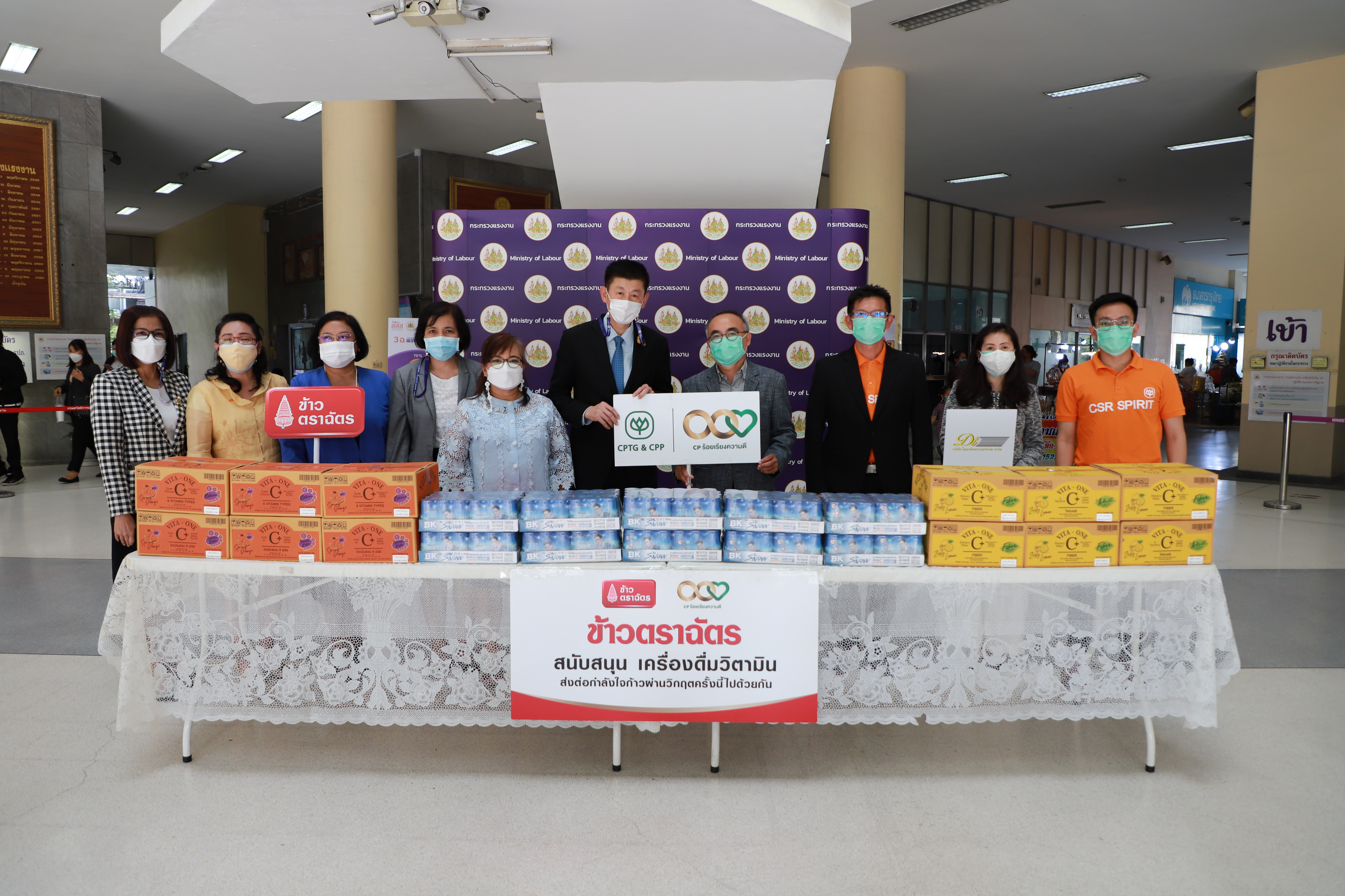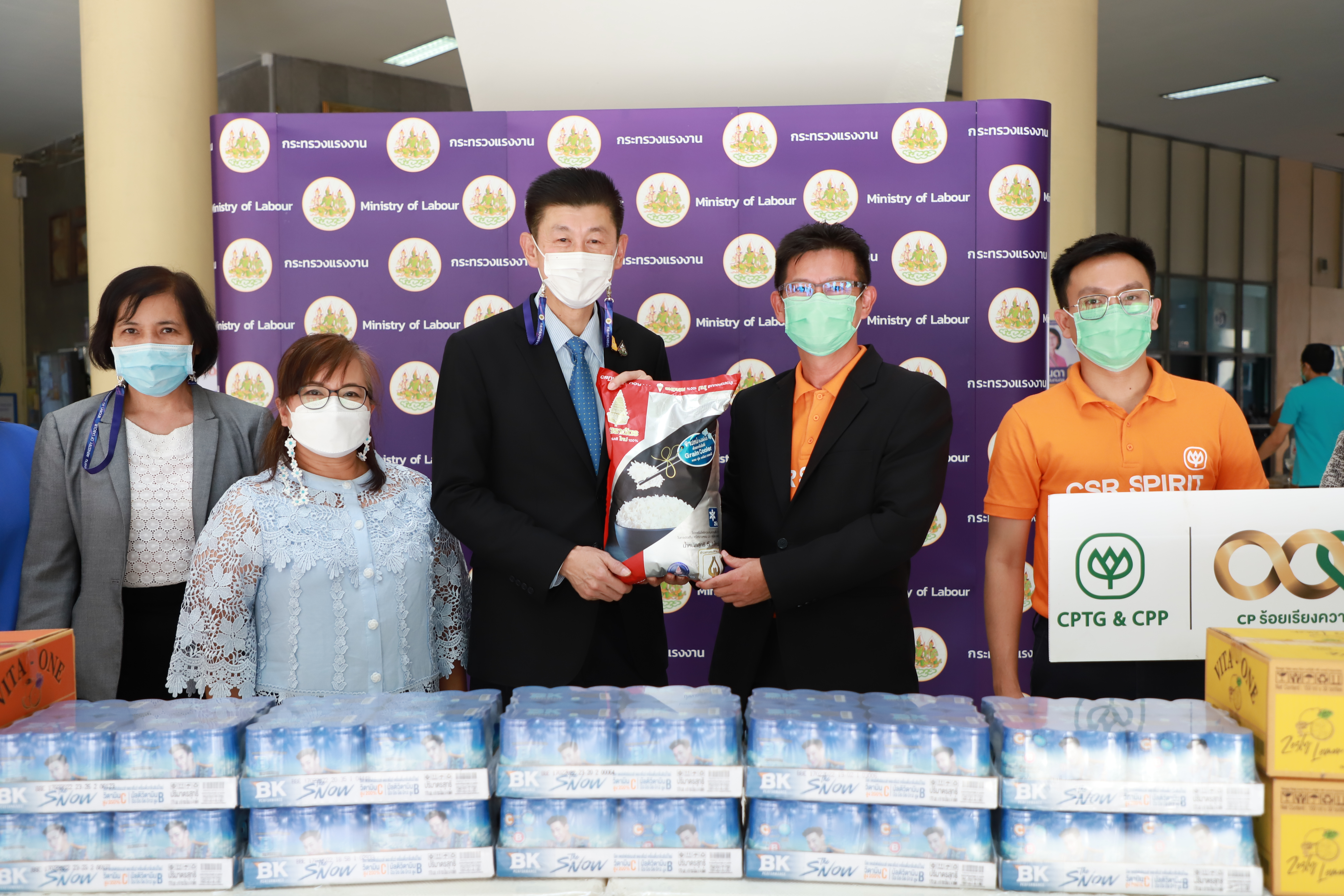 วันที่ 26 พฤศจิกายน 2564 นายบุญชอบ สุทธมนัสวงษ์ ปลัดกระทรวงแรงงาน พร้อมด้วยผู้บริหารระดับสูงสังกัดกระทรวงแรงงาน ร่วมรับมอบสิ่งของจากบริษัทในเครือเจริญโภคภัณฑ์ ได้แก่ เครื่องดื่ม BK จำนวน 7,200 กระป๋อง และเครื่องดื่มไวตาวัน จำนวน 9,000 ขวด เพื่อให้กระทรวงแรงงานส่งต่อช่วยเหลือพี่น้องแรงงานผู้ประสบภัยในพื้นที่ต่าง ๆ โดยมีนายเทียนชัย จูพัฒนกุล ผู้ช่วยกรรมการผู้จัดการ ด้านกิจกรรมเพื่อสังคม เป็นตัวแทนมอบ ณ โถงชั้นล่าง อาคารกระทรวงแรงงาน