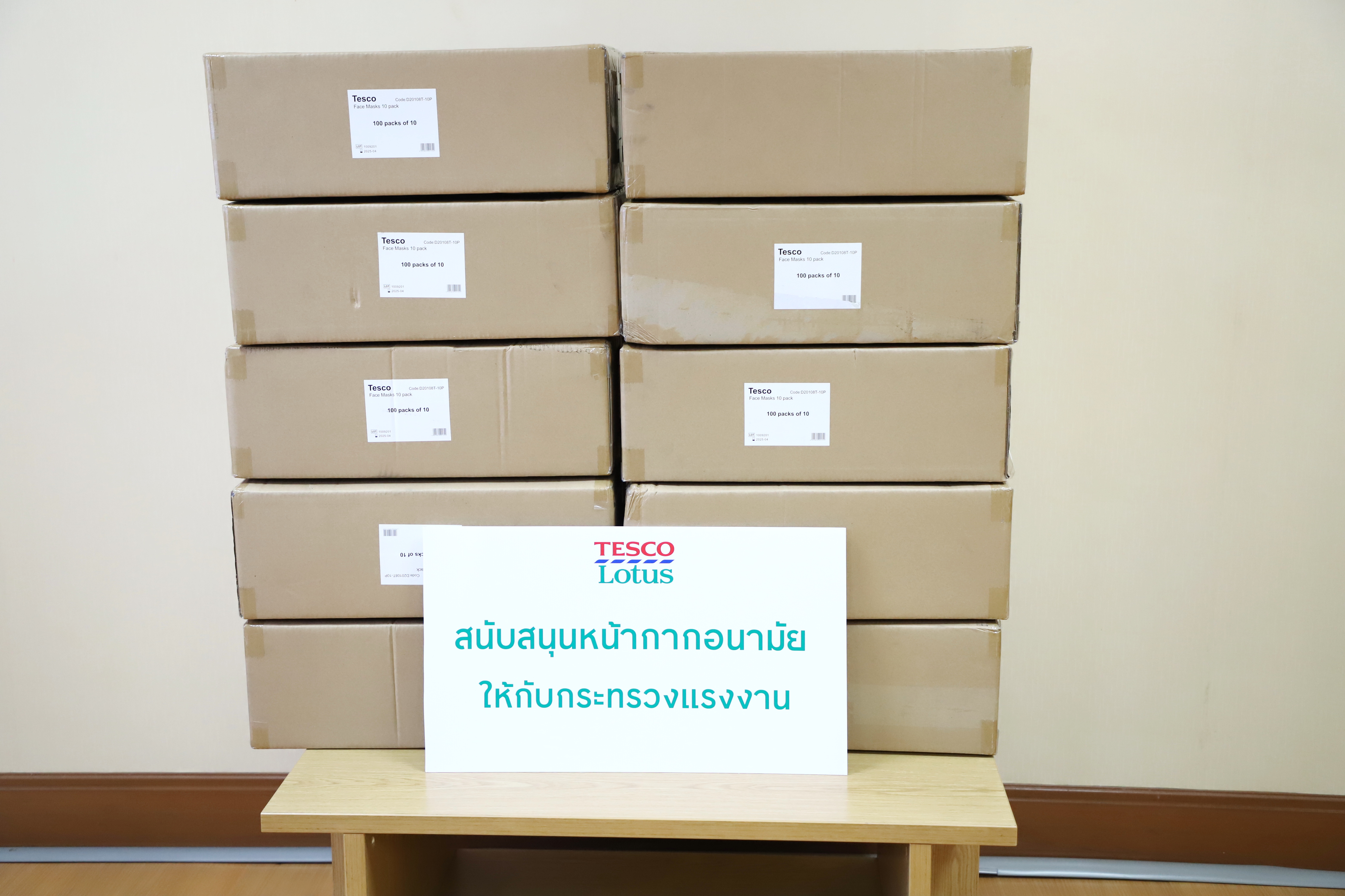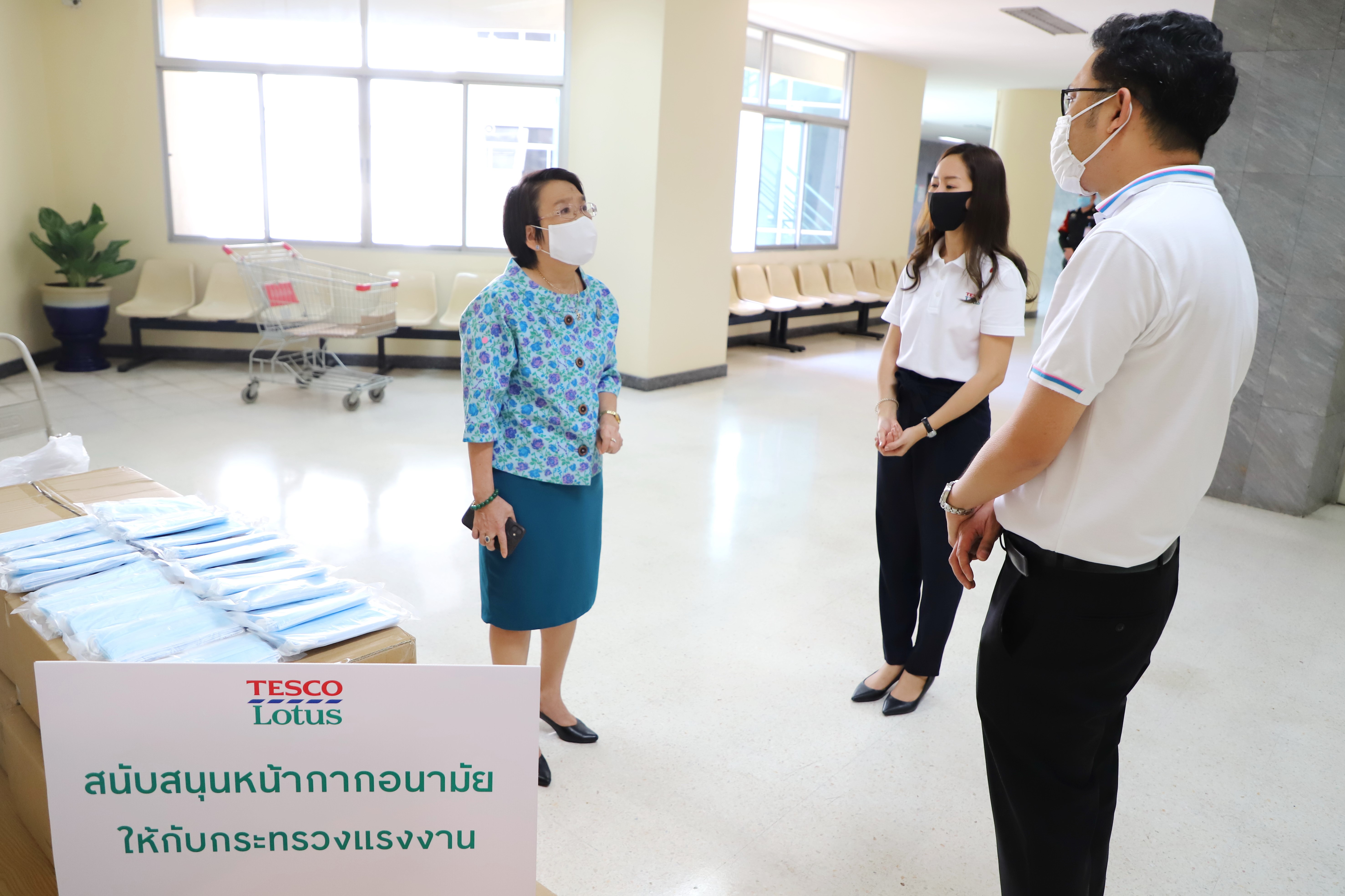 กระทรวงแรงงาน รับมอบหน้ากากอนามัย จากบริษัท เอก-ชัย ดีสทริบิวชั่น ซิสเทม จำกัด (เทสโก้ โลตัส) จำนวน 10,000 ชิ้น เพื่อสนับสนุนการปฏิบัติงานของเจ้าหน้าที่กระทรวงแรงงานไว้ใช้ประโยชน์ในราชการป้องกันการแพร่ระบาดของเชื้อไวรัสโควิด-19