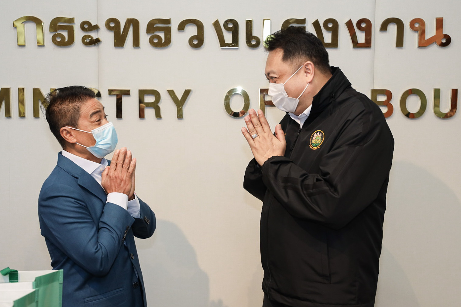 วันนี้ (24 มิ.ย. 64) เวลา 09.30 น. นายสุชาติ ชมกลิ่น รัฐมนตรีว่าการกระทรวงแรงงาน รับมอบหน้ากากอนามัย เจลแอลกอฮอล์ ขนมและน้ำดื่มจาก นายสุขสันต์ ยศะสินธุ์ ประธานเจ้าหน้าที่บริหาร บริษัท ชโย กรุ๊ป จำกัด (มหาชน) และคณะ เพื่อให้กระทรวงแรงงานนำไปส่งมอบให้เจ้าหน้าที่และบุคลากรทางการแพทย์ที่ปฏิบัติหน้าที่ฉีดวัคซีนป้องกันโควิด-19 แก่ผู้ประกันตนแรงงานนอกระบบ และประชาชนทั่วไป ณ ห้องจัตุมงคล ชั้น 6 อาคารกระทรวงแรงงาน