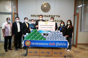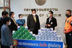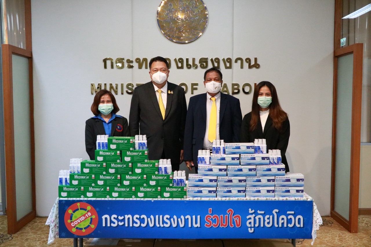 เมื่อวันที่ 14 พฤษภาคม 2564 นายสุชาติ ชมกลิ่น รัฐมนตรีว่าการกระทรวงแรงงาน รับมอบหน้ากากอนามัย และสเปย์แอลกอฮอล์ จำนวน 62,500 ชิ้น จากสมาคมเจ้าหน้าที่ความปลอดภัยในการทำงาน (ประเทศไทย) และหน้ากากอนามัย 10,000 ชิ้น จากซีพีออลล์ เพื่อให้กระทรวงแรงงานนำไปส่งมอบให้เจ้าหน้าที่และบุคลากรทางการแพทย์ที่ตรวจโควิด-19 เชิงรุก แก่ผู้ประกันตน แรงงานนอกระบบ และประชาชนทั่วไป เพื่อป้องกันโควิด-19 ณ ห้องจัตุมงคล ชั้น 6 อาคารกระทรวงแรงงาน โดยมี นางธิวัลรัตน์ อังกินันทน์ ที่ปรึกษารัฐมนตรีว่าการกระทรวงแรงงาน นายสุเทพ ชิตยวงษ์ เลขานุการรัฐมนตรีว่าการกระทรวงแรงงาน นายสุทธิ สุโกศล ปลัดกระทรวงแรงงาน และผู้บริหารระดับสูงสังกัดกระทรวงแรงงาน เข้าร่วมในครั้งนี้ด้วย