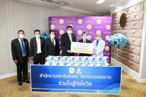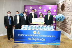 เมื่อวันที่ 18 พฤษภาคม 2564 นายสุชาติ ชมกลิ่น รัฐมนตรีว่าการกระทรวงแรงงาน รับมอบหน้ากากอนามัย จำนวน 2,450,000 ชิ้น จากหน่วยงานต่างๆ ดังนี้ บริษัท ปิ๊งสตูดิโอ จำกัด จำนวน 100,000 ชิ้น โรงพยาบาลศิครินทร์ จำนวน 800,000 ชิ้น โรงพยาบาลจุฬารัตน์ จำนวน 400,000 ชิ้น โรงพยาบาลแพทย์รังสิต จำนวน 100,00 ชิ้น มูลนิธิโรงพยาบาลลาดพร้าว จำนวน 100,000 ชิ้น และโรงแรมเดอะ ทวิน ทาวเวอร์ และกลุ่มโรงพยาบาลราชเวชเชียงใหม่ จำนวน 50,000 ชิ้น เพื่อให้กระทรวงแรงงานนำไปส่งมอบให้เจ้าหน้าที่และบุคลากรทางการแพทย์ที่ตรวจโควิด-19 เชิงรุก แก่ผู้ประกันตน แรงงานนอกระบบ และประชาชนทั่วไป เพื่อป้องกันโควิด-19 ณ ห้องจัตุมงคล ชั้น 6 อาคารกระทรวงแรงงาน