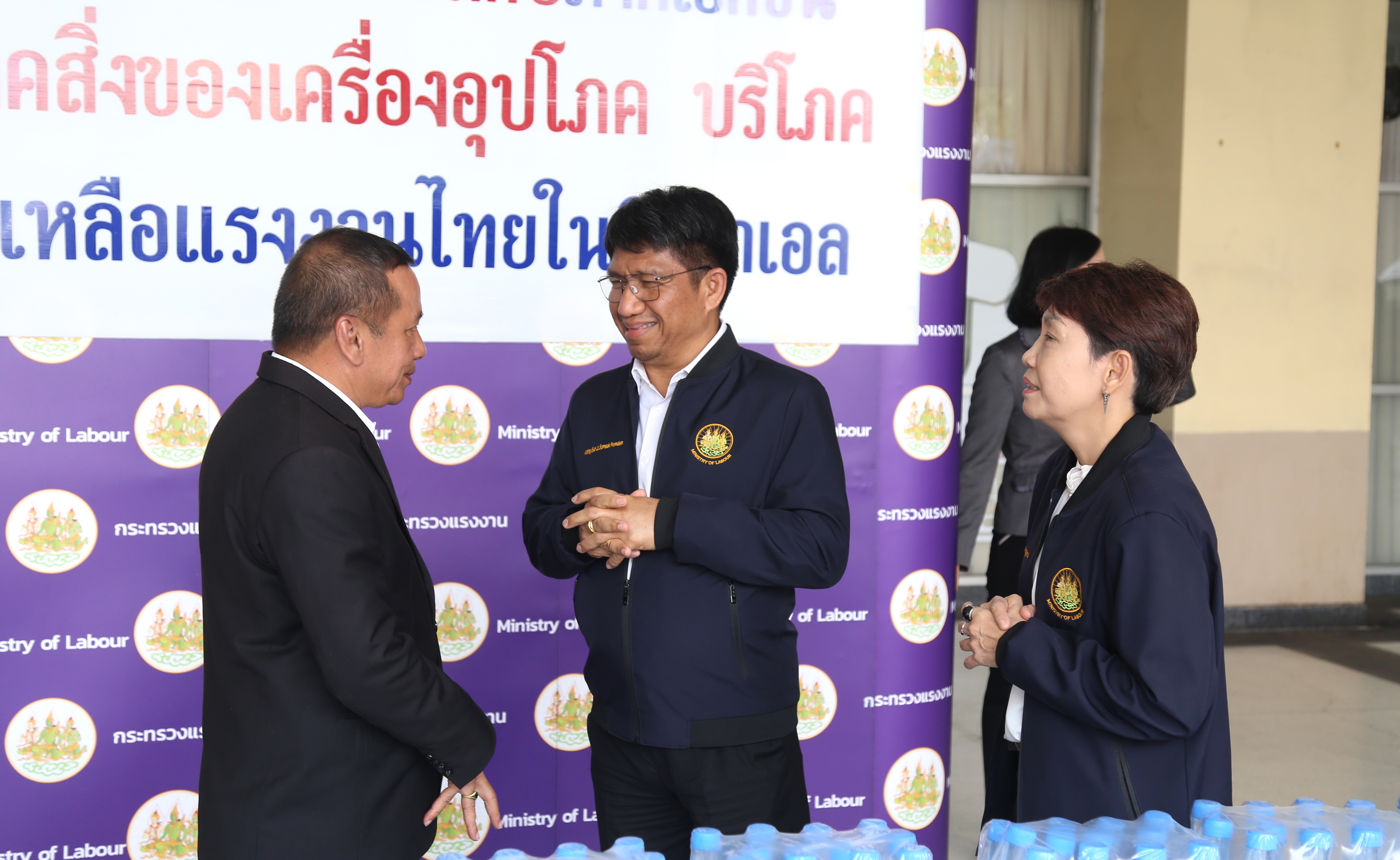 วันที่ 18 ตุลาคม 2566 เวลา 11.00 น. นายไพโรจน์ โชติกเสถียร ปลัดกระทรวงแรงงาน มอบหมายให้ นางสาวกรจิรัฏฐ์ พงจันทร์ศธร ผู้ช่วยปลัดกระทรวงแรงงาน เป็นผู้แทน รับมอบเครื่องอุปโภคบริโภคเพื่อนำไปช่วยเหลือแรงงานไทยได้รับผลกระทบจากความไม่สงบในอิสราเอล จาก ว่าที่ร้อยตรี สมศักดิ์ พรหมดำ รองอธิบดีสวัสดิการและคุ้มครองแรงงาน นายประสิทธิ์ ปาตังคะโร สวัสดิการและคุ้มครองแรงงานจังหวัดฉะเชิงเทรา ณ บริเวณโถงชั้นล่าง อาคารกระทรวงแรงงาน โดยสิ่งของเหล่านี้กระทรวงแรงงานจะจัดส่งไปให้ทูตแรงงานที่อิสราเอล นำไปแจกจ่ายให้กับแรงงานที่พักอยู่ในศูนย์พักพิง เพื่อบรรเทาความเดือดร้อนในเบื้องต้นต่อไป