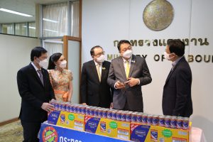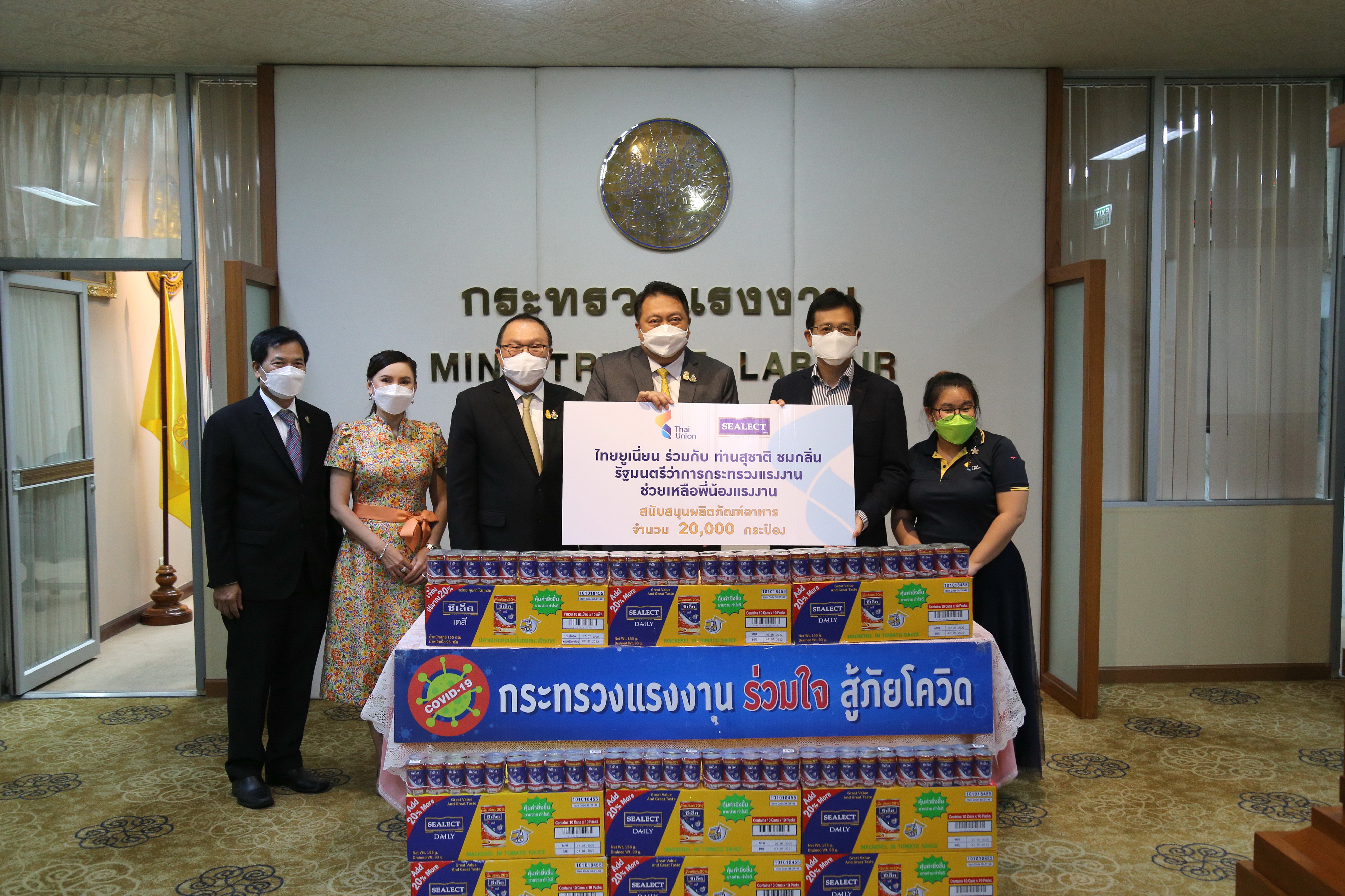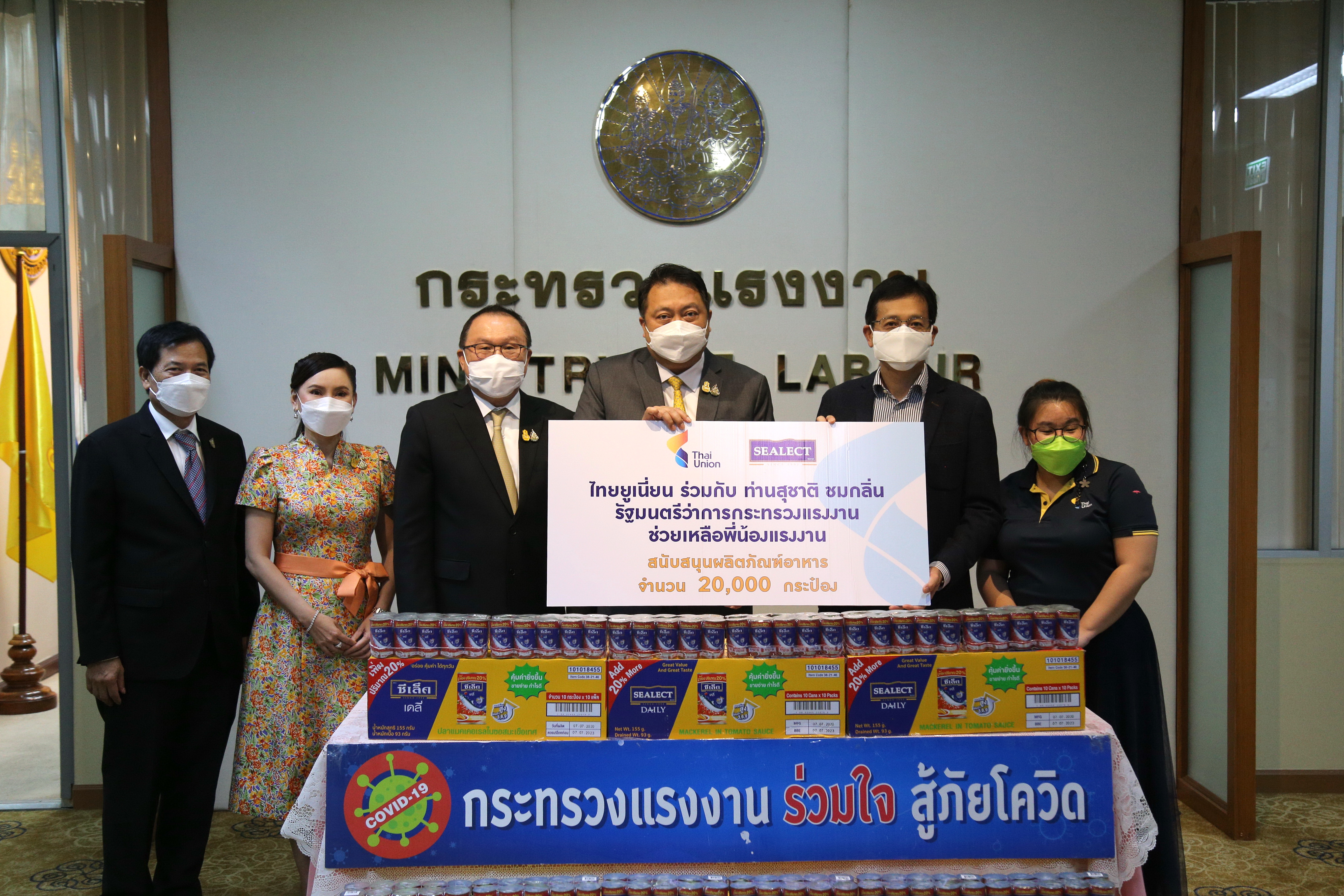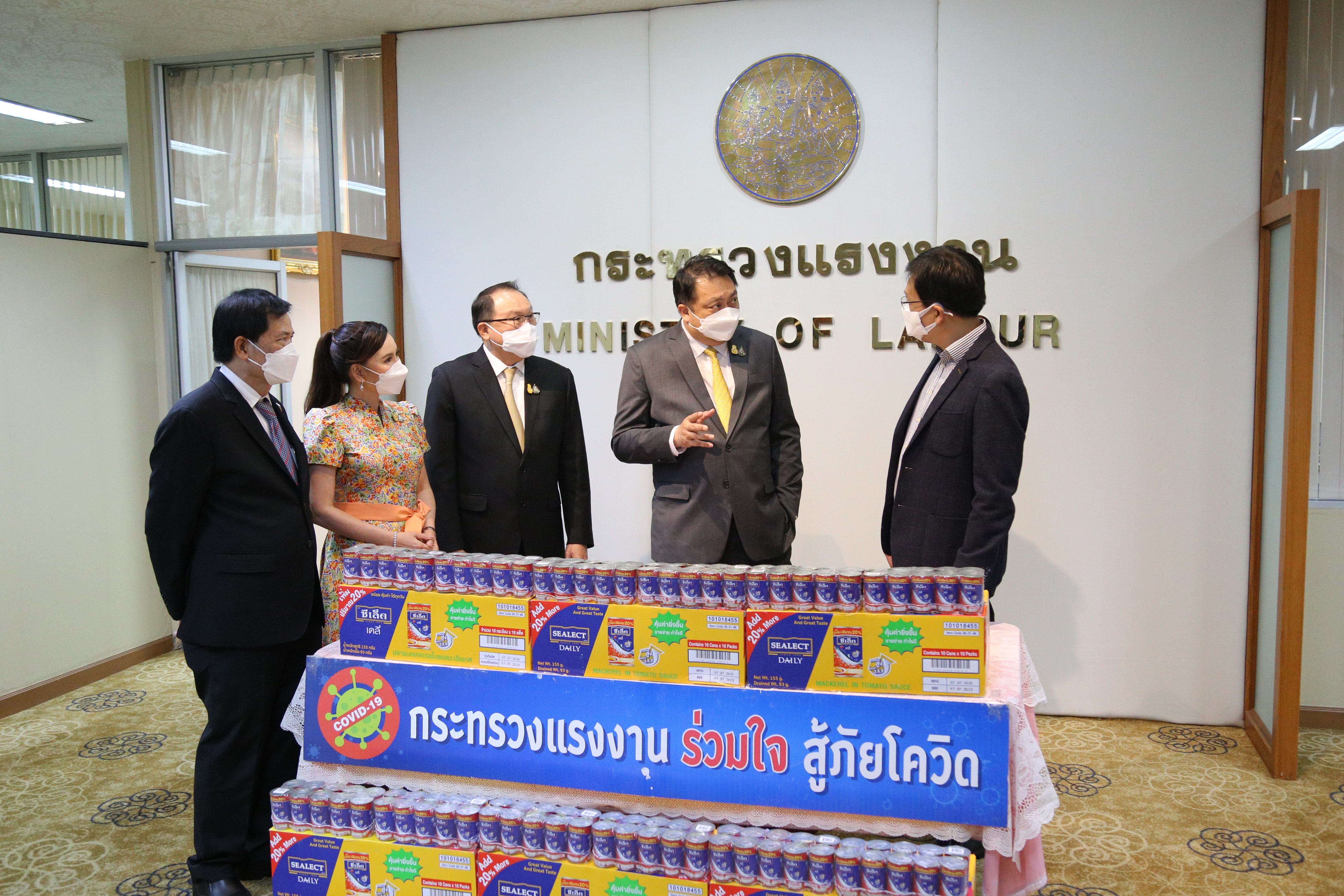 วันที่ 5 สิงหาคม 2564 เวลา 14.00 น. นายสุชาติ ชมกลิ่น รัฐมนตรีว่าการกระทรวงแรงงาน รับมอบปลากระป๋อง จำนวน 100 ลัง จากบริษัท ไทยยูเนี่ยน กรุ๊ป จำกัด (มหาชน) โดยมี นายสุรชัย ชัยตระกูลทอง ผู้ช่วยรัฐมนตรีประจำกระทรวงแรงงาน นางธิวัลรัตน์ อังกินันทน์ ที่ปรึกษารัฐมนตรีว่าการกระทรวงแรงงาน นายสุเทพ ชิตยวงษ์ เลขานุการรัฐมนตรีว่าการกระทรวงแรงงาน เข้าร่วมในครั้งนี้ด้วย เพื่อนำไปช่วยเหลือผู้ที่ได้รับความเดือดร้อนจากผลกระทบโควิด-19 ณ บริเวณหน้าห้องประชุม รัฐมนตรีว่าการกระทรวงแรงงาน ชั้น 6 อาคารกระทรวงแรงงาน