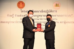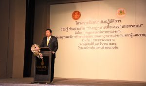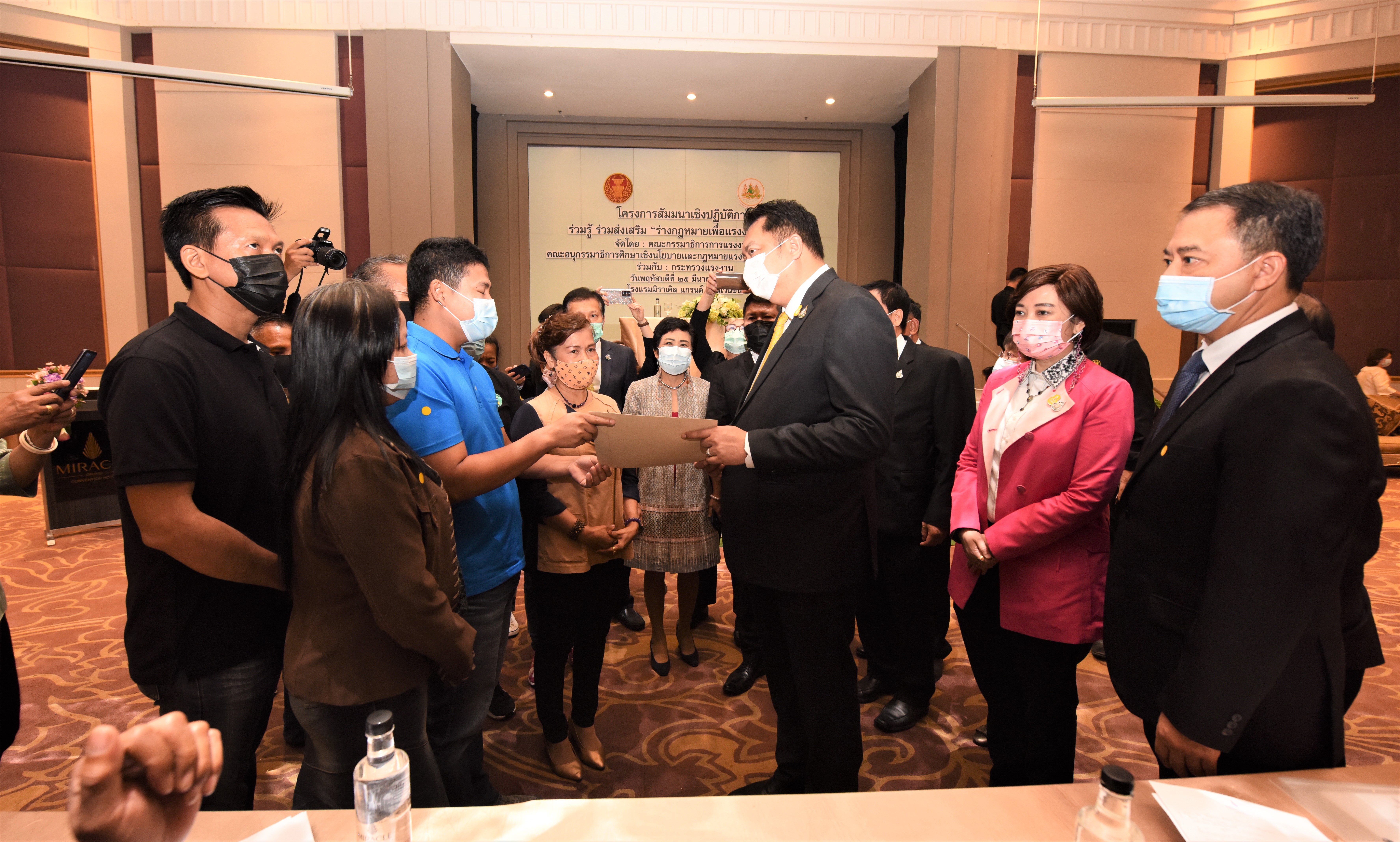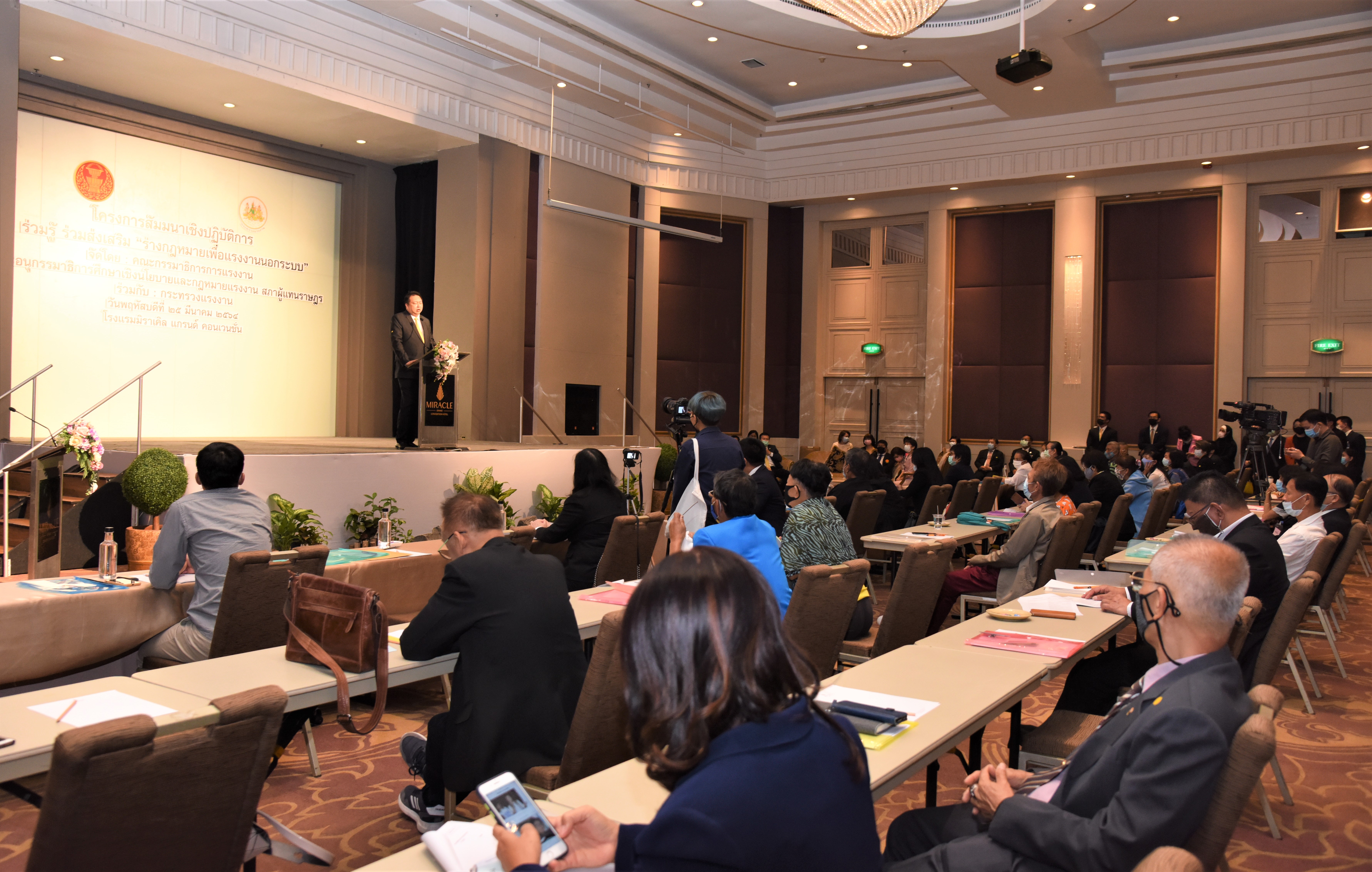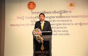 นายสุชาติ ชมกลิ่น รัฐมนตรีว่าการกระทรวงแรงงาน เปิดโครงการสัมมนาเชิงปฏิบัติการ ร่วมรู้ ร่วมส่งเสริม “ร่างกฎหมายเพื่อแรงงานนอกระบบ” เพื่อสร้างการรับรู้ รับฟังข้อเสนอแนะและร่วมกันพิจารณาผลักดันกฎหมาย พ.ร.บ.ส่งเสริมและพัฒนาคุณภาพชีวิตแรงงานนอกระบบ พ.ศ…รองรับสถานการณ์ที่เปลี่ยนแปลงไป พัฒนาคุณภาพชีวิตแรงงานนอกระบบให้ดียิ่งขึ้น
