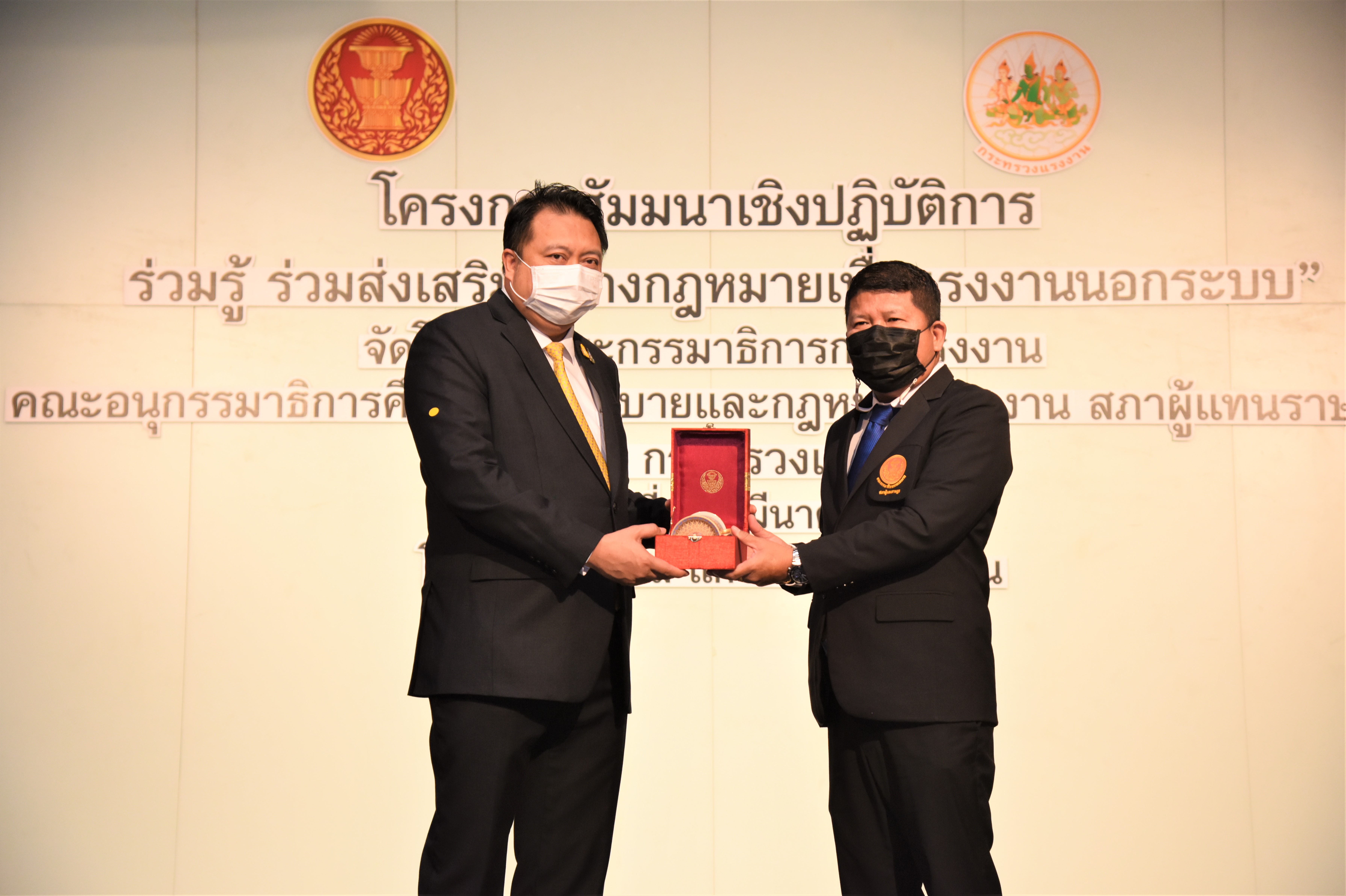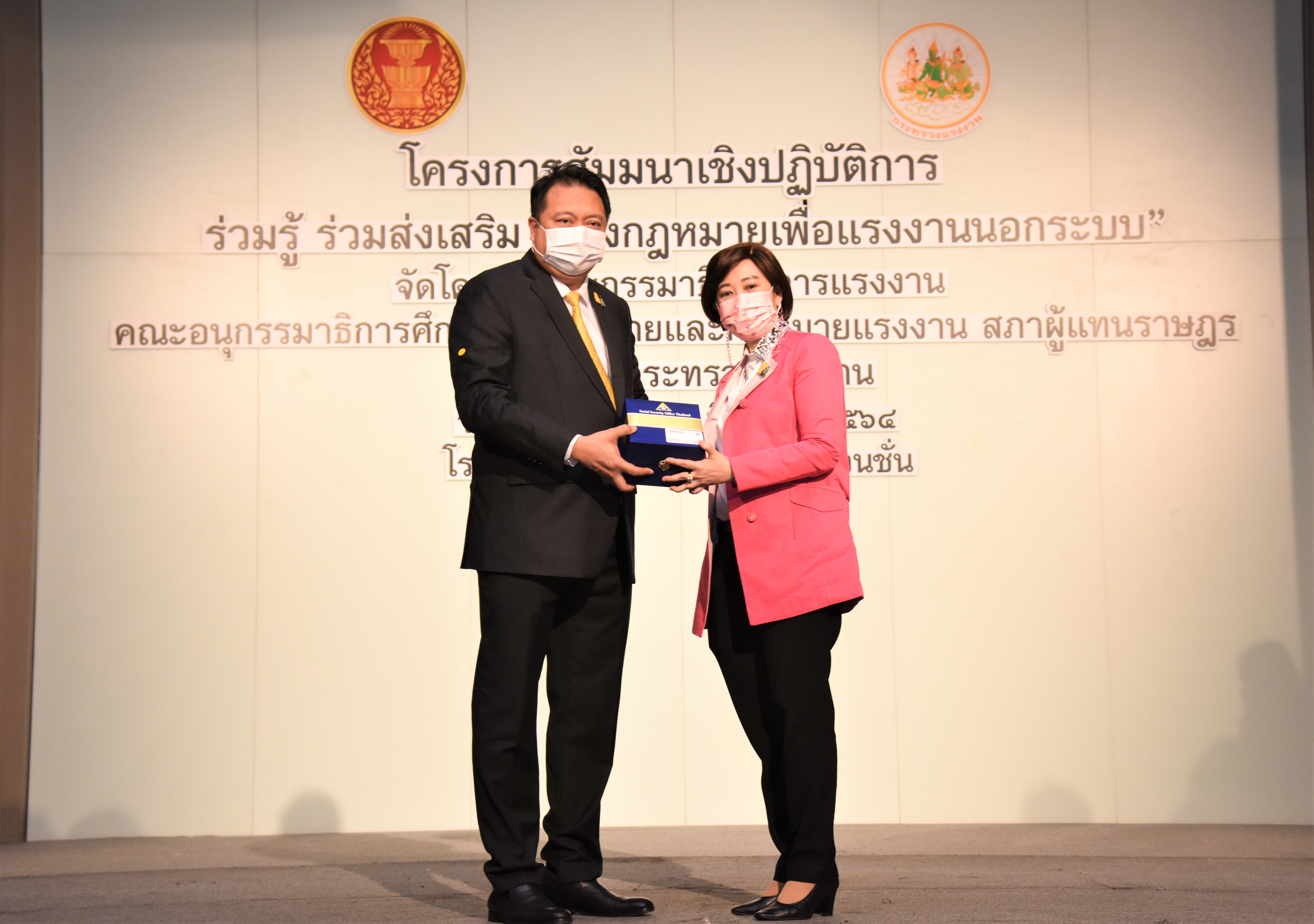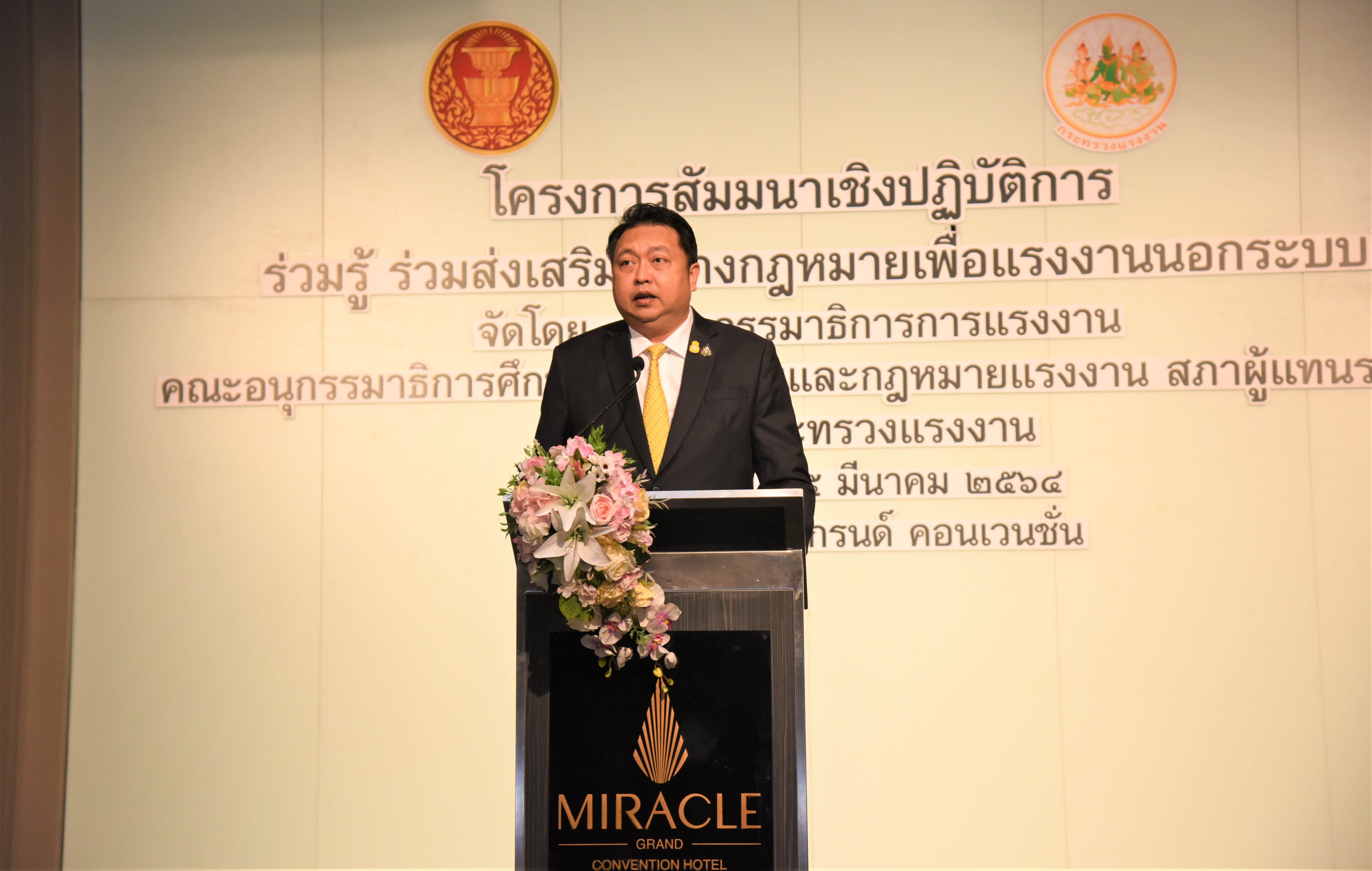 เมื่อวันที่ 25 มีนาคม 2564 ที่ห้องแกรนด์ บอลรูม ชั้น 4 โรงแรมมิราเคิล แกรนด์ คอนเวนชั่น หลักสี่ กรุงเทพมหานคร นายสุชาติ ชมกลิ่น รัฐมนตรีว่าการกระทรวงแรงงาน เป็นประธานกล่าวเปิดโครงการสัมมนาเชิงปฏิบัติการ ร่วมรู้ ร่วมส่งเสริม “ร่างกฎหมายเพื่อแรงงานนอกระบบ” โดยมี นายสุเทพ อู่อ้น ประธานคณะกรรมาธิการการแรงงาน กล่าวต้อนรับ นางสาวอนุสรี ทับสุวรรณ ประธานคณะอนุกรรมาธิการศึกษาเชิงนโยบายและกฎหมายแรงงานและโฆษกคณะกรรมาธิการการแรงงาน กล่าวรายงาน โดย รมว.แรงงาน กล่าวว่า รัฐบาลภายใต้การนำของ พล.อ.ประยุทธ์ จันทร์โอชา นายกรัฐมนตรี และรัฐมนตรีว่าการกระทรวงกลาโหม และกระทรวงแรงงานภายใต้การกำกับดูแลของ พล.อ.ประวิตร วงษ์สุวรรณ รองนายกรัฐมนตรี ได้ให้ความสำคัญกับการพัฒนาคุณภาพชีวิต แก้ไขปัญหาความเหลื่อมล้ำ การช่วยเหลือเยียวยา แบ่งเบาภาระค่าครองชีพของพี่น้องผู้ใช้แรงงาน ผมในฐานะรัฐมนตรีว่าการกระทรวงแรงงานให้ความสำคัญกับพี่น้องผู้ใช้แรงงาน รวมถึง “พี่น้องแรงงานนอกระบบ” และพร้อมที่จะให้การดูแลเพื่อให้มีคุณภาพชีวิตที่ดีขึ้น โดยมีนโยบายในการเร่งรัดการออกกฎหมายว่าด้วยการส่งเสริมและพัฒนาคุณภาพชีวิตแรงงานนอกระบบ เพื่อรองรับแรงงานนอกระบบทุกคน จากสถานการณ์ที่เปลี่ยนแปลงไป เช่น การระบาดของโรคโควิด – 19 การเปลี่ยนแปลงเข้าสู่ยุคดิจิทัล ส่งผลต่อการจ้างงานบนแฟลตฟอร์มออนไลน์ที่สภาพการจ้างงานยังไม่มีความชัดเจน เป็นการจ้างงานรูปแบบใหม่ที่เราต้องศึกษา ควบคุม และดูแลต่อไป