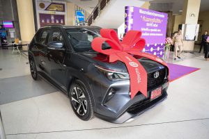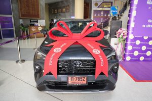 รางวัลที่ 1 รถยนต์นั่งส่วนบุคคล ยี่ห้อ TOYOTA รุ่น Yaris Cross HEV PEMIUM จำนวน 1 รางวัล เลขที่ออก 14918