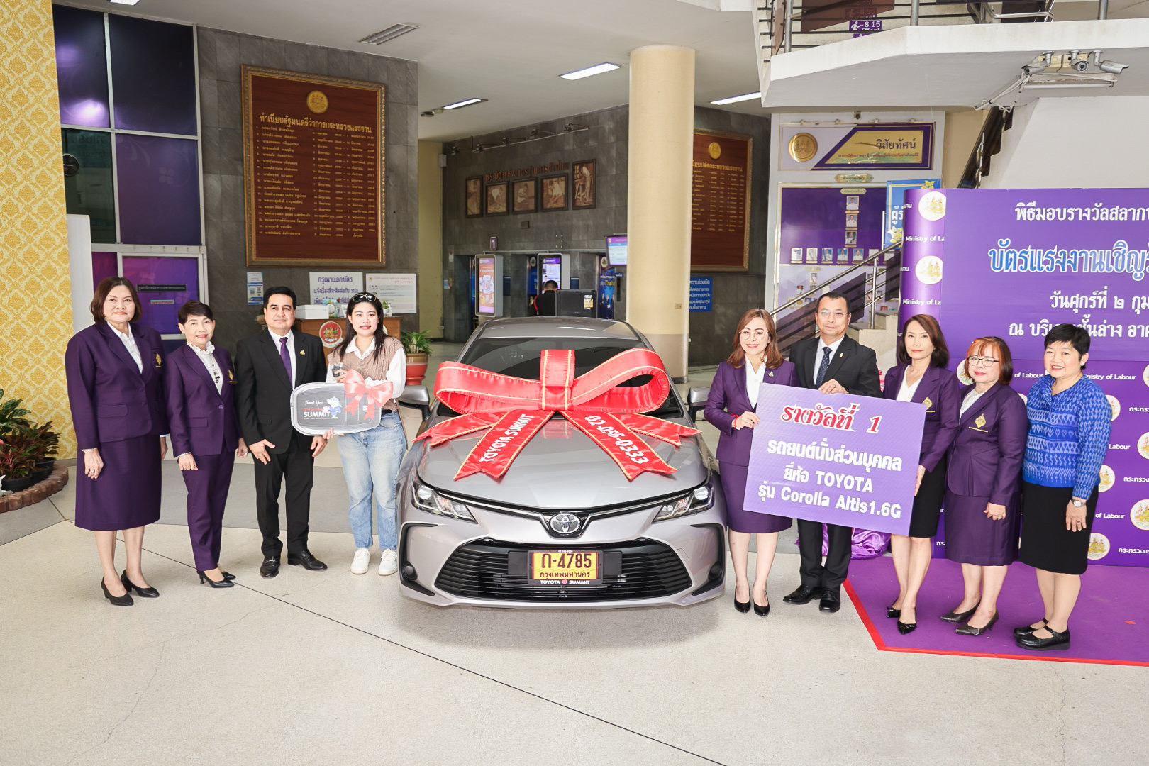 รางวัลที่ 1 รถยนต์นั่งส่วนบุคคล ยี่ห้อ TOYOTA รุ่น Corolla Altis 1.6 G จำนวน 1 รางวัล เลขที่ออก