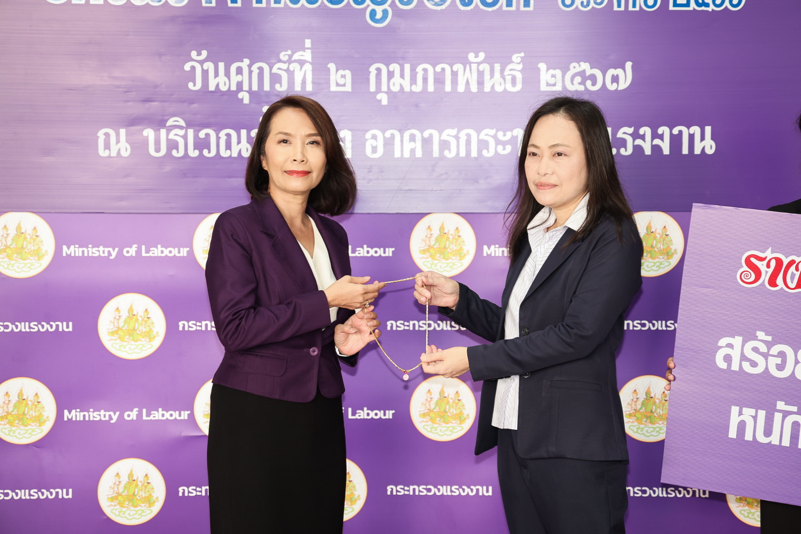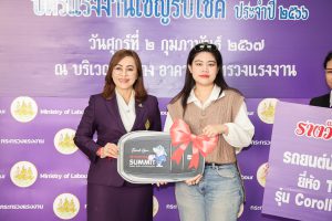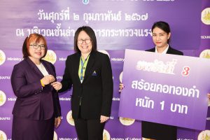 ในฐานะนายกสมาคมแม่บ้านกระทรวงแรงงาน เป็นประธานในพิธีมอบรางวัลใหญ่ รถยนต์นั่งส่วนบุคคลยี่ห้อ TOYOTA รุ่น Corolla Altis 1.6 G จำนวน 1 คัน ให้แก่ คุณวรรษมน ขจรกลิ่น ผู้โชคดีที่ร่วมทำบุญกุศลอุดหนุนสลากบำรุงสภากาชาดไทย “บัตรแรงงานเชิญรับโชค” ประจำปี 2566 ซึ่งกระทรวงแรงงาน ร่วมกับ สมาคมแม่บ้านกระทรวงแรงงานจัดขึ้น โดยมี นายวรรณรัตน์ ศรีสุขใส รองปลัดกระทรวงแรงงาน นางโสภา เกียรตินิรชา อธิบดีกรมสวัสดิการและคุ้มครองแรงงาน ในฐานะอุปนายกสมาคมแม่บ้านกระทรวงแรงงาน นางนภสร ทุ่งสุกใส ที่ปรึกษาวิชาการแรงงาน ผู้ช่วยนายกสมาคมแม่บ้านกระทรวงแรงงาน นายนันทชัย ปัญญาสุรฤทธิ์ ผู้ตรวจราชการกระทรวงแรงงาน นางสาวกรจิรัฏฐ์ พงจันทร์ศธร ผู้ช่วยปลัดกระทรวงแรงงาน ผู้ช่วยนายกสมาคมแม่บ้านกระทรวงแรงงาน พร้อมด้วย ผู้บริหารระดับสูงกระทรวงแรงงาน ร่วมเป็นเกียรติและสักขีพยานด้วย ณ บริเวณโถงชั้นล่างอาคารกระทรวงแรงงาน