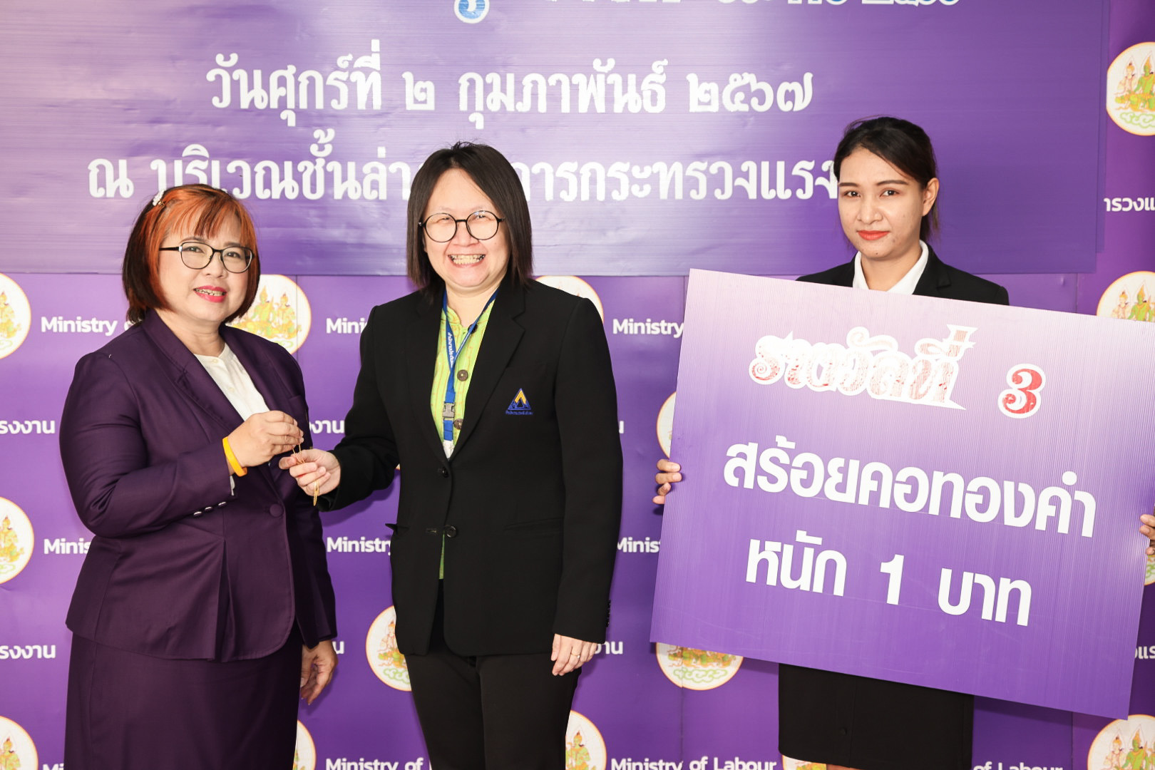 รางวัลที่ 3 สร้อยคอทองคำหนัก 1 บาท จำนวน 9 รางวัล เลขที่ออก 18005 26494 29856 22753