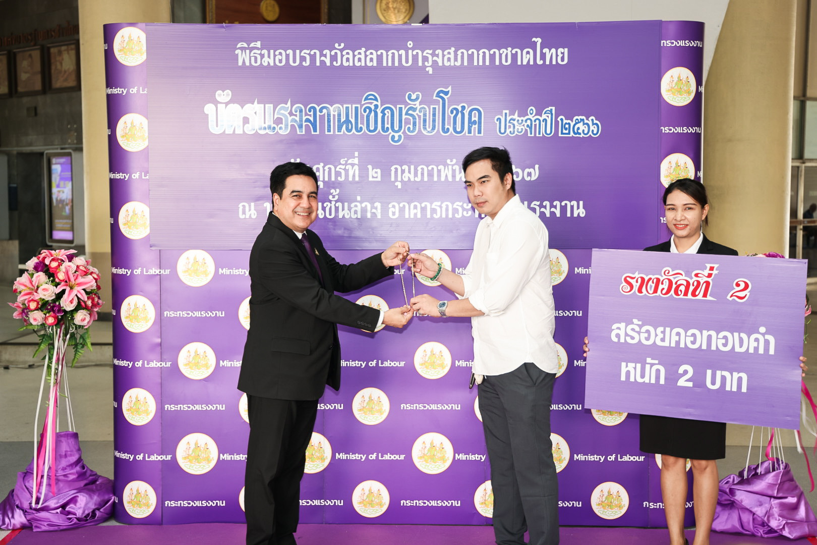 รางวัลที่ 2 สร้อยคอทองคำหนัก 2 บาท จำนวน 4 รางวัล เลขที่ออก 12969 34634 19394 44450