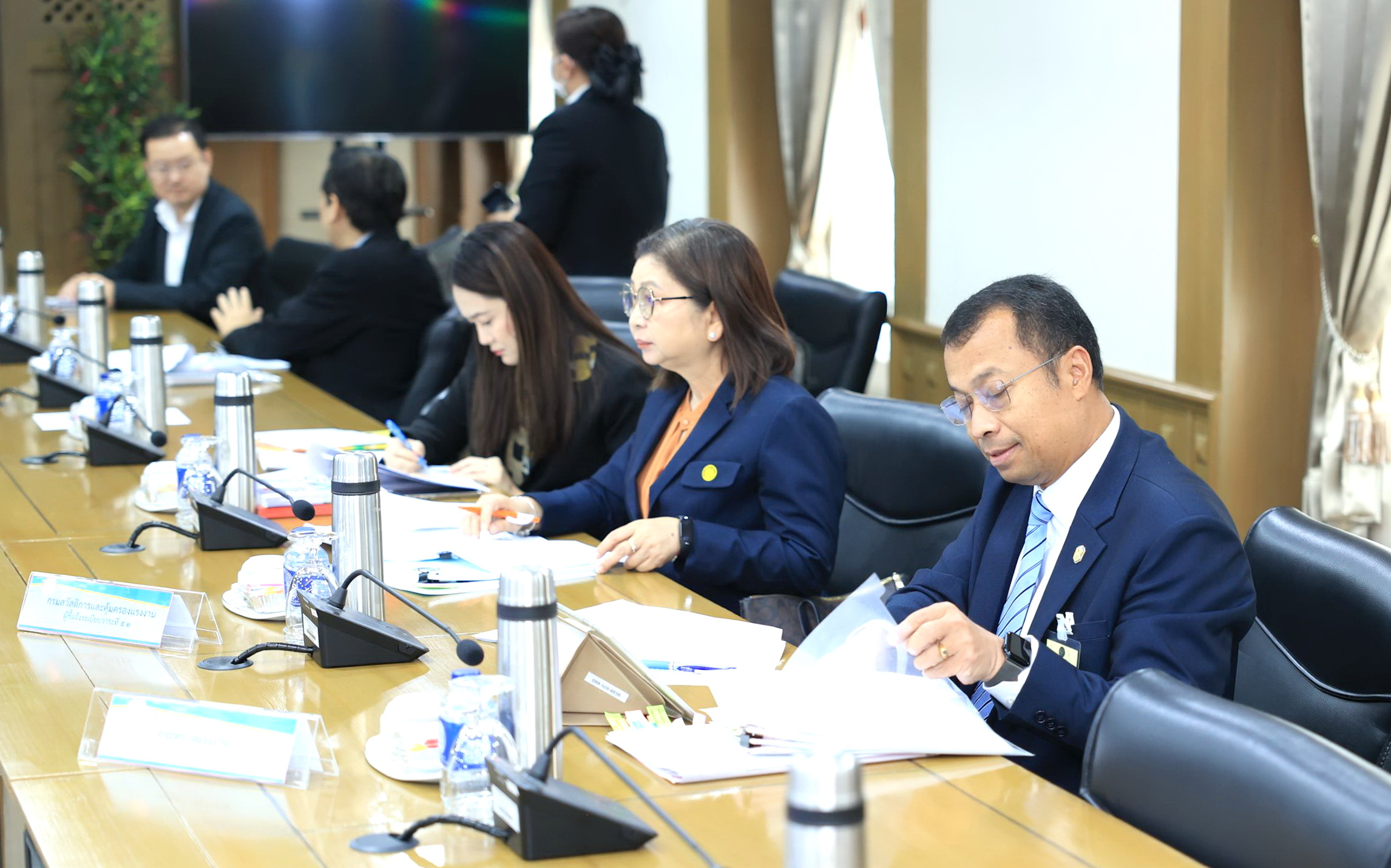 วันที่ 14 ธันวาคม 2566 เวลา 14.30 น. นายพิพัฒน์ รัชกิจประการ รัฐมนตรีว่าการกระทรวงแรงงาน มอบหมายให้ นายสิรภพ ดวงสอดศรี ผู้ช่วยรัฐมนตรีประจำกระทรวงแรงงาน นายวรรณรัตน์ ศรีสุขใส รองปลัดกระทรวงแรงงาน เข้าร่วมการประชุมคณะกรรมการป้องกันและปราบปรามการค้ามนุษย์ ครั้งที่ 3/2566 โดยมี พลตำรวจเอก พัชรวาท วงษ์สุวรรณ รองนายกรัฐมนตรี เป็นประธานการประชุม ณ ห้องประชุมวิจิตรวาทการ ชั้น 3 อาคารสำนักงานสภาความมั่นคงแห่งชาติ (สมช.) ทำเนียบรัฐบาล