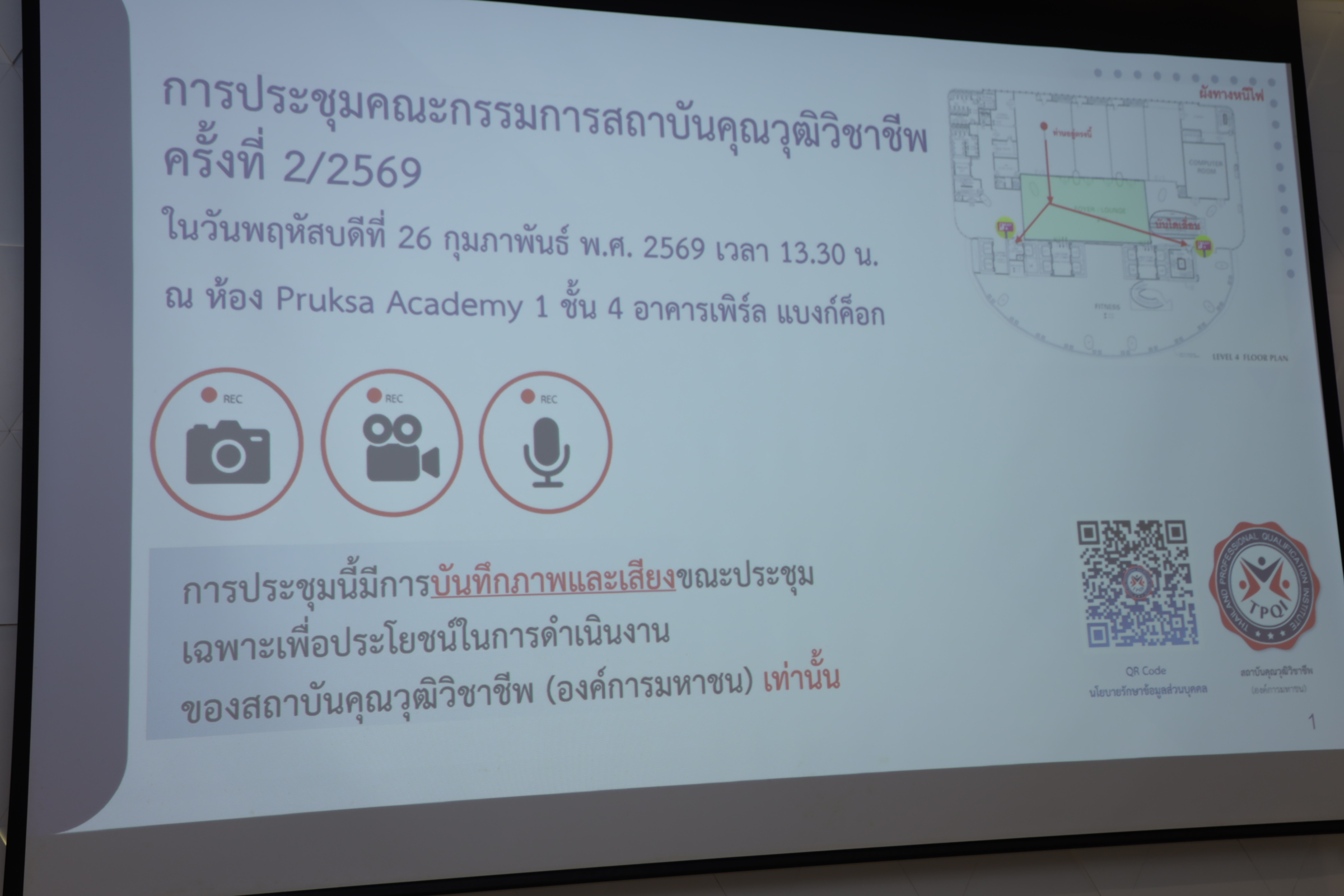 สำหรับการประชุมดังกล่าว เพื่อขับเคลื่อนการรับรองสมรรถนะบุคคลตามมาตรฐานอาชีพในหลากหลายอุตสาหกรรม เพื่อเพิ่มขีดความสามารถในการแข่งขันของแรงงานไทย โดยที่ประชุมได้รับทราบรายงานผลการประชุมคณะกรรมการกรอบคุณวุฒิอ้างอิงอาเซียน ครั้งที่ 16 ณ ประเทศฟิลิปปินส์ และผลการดำเนินงาน TPQI FAIR 2026 walk and wonder@พะเยา นอกจากนี้ ที่ประชุมยังได้พิจารณาวาระสำคัญ อาทิ รับรองมาตรฐานอาชีพสำหรับสถานประกอบการ รับรององค์กรที่มีหน้าที่รับรองสสมรรถนะของบุคคลตามมาตรฐานอาชีพ รับรองหลักสูตรการเรียนรู้ที่สอดคล้องตามมาตรฐานอาชีพ และพิจารณาร่าง MOU ระหว่างสถาบันคุณวุฒิวิชาชีพ กับ สมาคมกีฬาเทเบิลเทนนิสแห่งประเทศไทย เพื่อพัฒนาทักษะนักกีฬาด้วยระบบคุณวุฒิวิชาชีพ และความร่วมมือกับ สถาบันรับรองคุณภาพสถานพยาบาลในการพัฒนาบุคลากรด้านสาธารณสุขรวมถึง ติดตามผลการดำเนินงานและการเบิกจ่ายงบประมาณประจำปี พ.ศ. 2569 เพื่อให้การดำเนินงานเป็นไปอย่างโปร่งใสและมีประสิทธิภาพสูงสุด