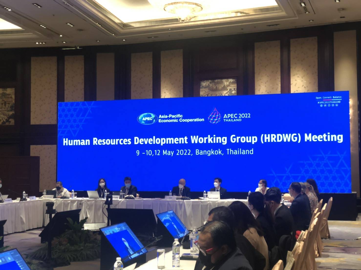 วันที่ 9 พฤษภาคม 2565 นายบุญชอบ สุทธมนัสวงษ์ ปลัดกระทรวงแรงงาน มอบหมายให้ นายสมาสภ์ ปัทมะสุคนธ์ ผู้ช่วยปลัดกระทรวงแรงงาน เข้าร่วมการประชุมคณะทำงานด้านการพัฒนาทรัพยากรมนุษย์ของเอเปค (APEC Human Resources Development Working Group: HRDWG) ในฐานะประธานร่วม (Co-Chair) ของเครือข่ายด้านแรงงานและการคุ้มครองทางสังคม (Labour and Social Protection Network: LSPN) ณ โรงแรมแชงกรี-ลา กรุงเทพมหานคร