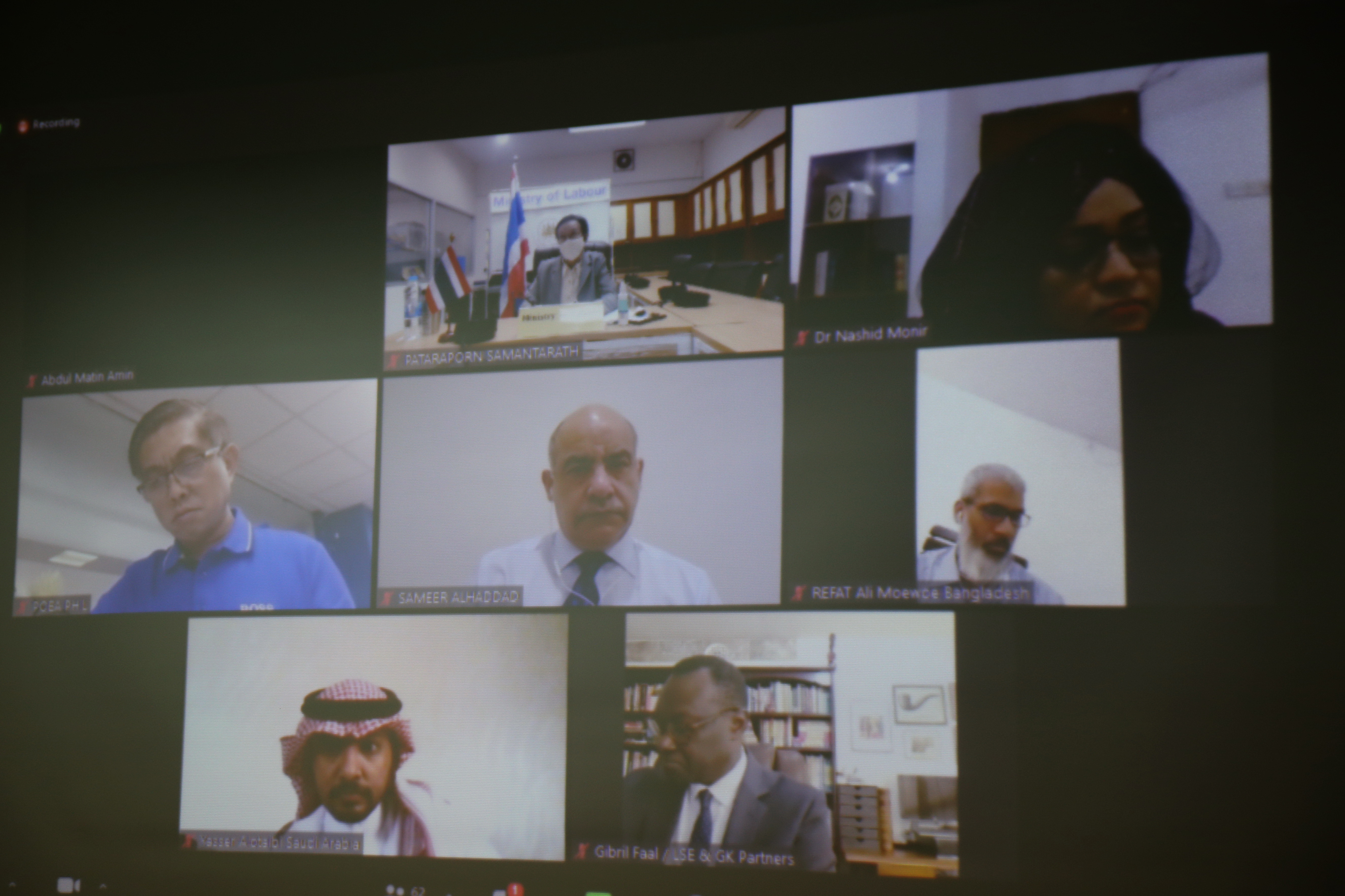 วันที่ 25 พฤษภาคม 2564 เวลา 13.00 น. นางสาวภัทรพร สมันตรัฐ ผู้ช่วยปลัดกระทรวงแรงงาน ร่วมการประชุมระดับเจ้าหน้าที่อาวุโสกรอบเจรจาอาบูดาบี ผ่านระบบการประชุมทางไกล (Video Conference) โดยมีการประชุมเต็มคณะเพื่อขี้แจงหัวข้อของการประชุมกลุ่มย่อย จำนวน 4 หัวข้อ พร้อมทั้งประชุมคู่ขนาน 2 กลุ่มย่อย ได้แก่ กลุ่มที่ 1 หัวข้อ “คาดการณ์การเปลี่ยนแปลงด้านการจ้างงานในกลุ่มประเทศอ่าวอาหรับ (GCC) และผลกระทบต่ออุปสงค์และอุปทานของแรงงานในประเทศสมาชิก ADD” และกลุ่มที่ 2 หัวข้อ “การส่งเสริมความก้าวหน้าทางเทคโนโลยีเพื่อพัฒนาการบริหารจัดการด้านเคลื่อนย้ายแรงงาน” ณ ห้องประชุมสำนักประสานความร่วมมือระหว่างประเทศ ชั้น 12 อาคารกระทรวงแรงงาน
