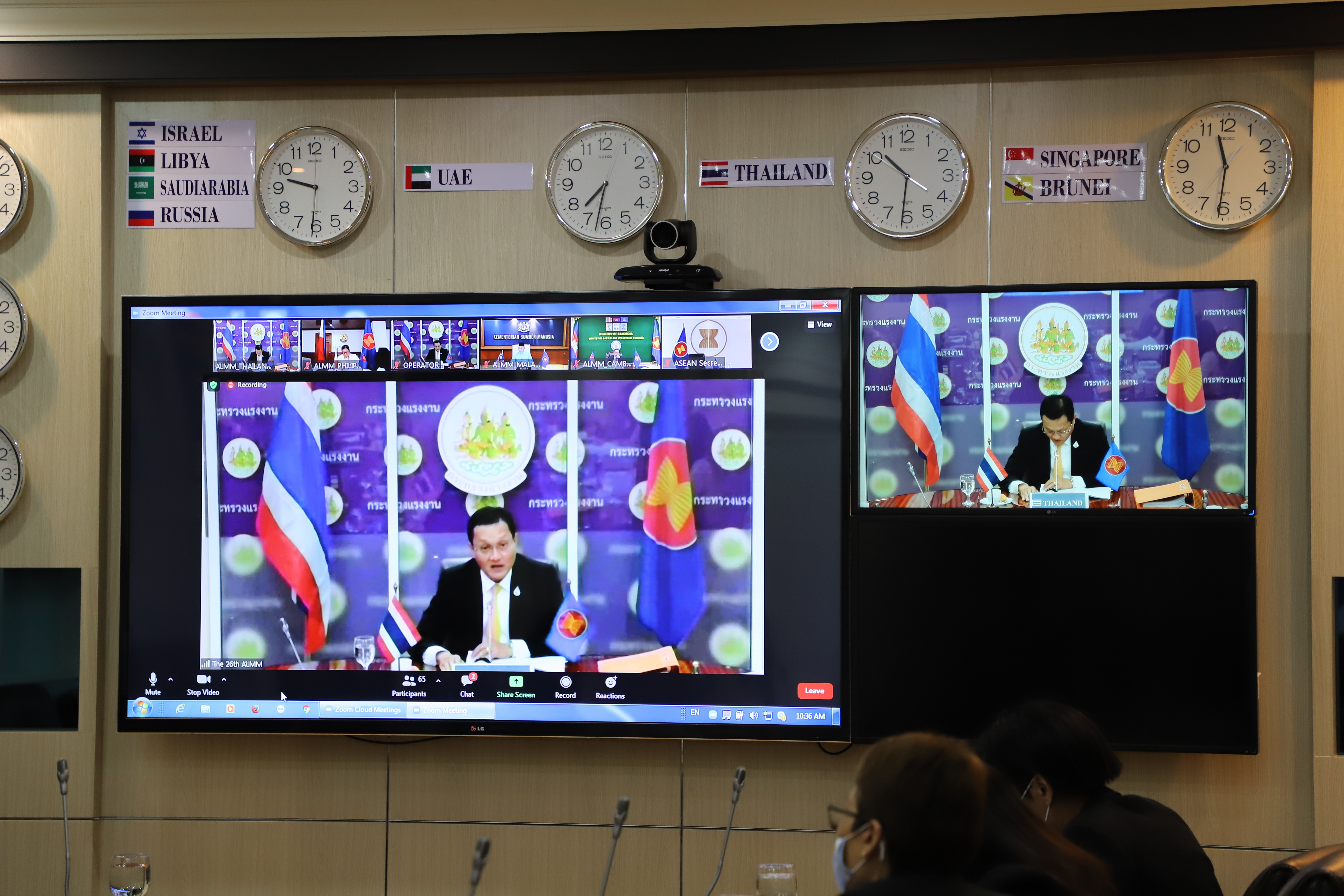 วันที่ 28 ตุลาคม 2563 เวลา 09.30 น. นายสุชาติ ชมกลิ่น รัฐมนตรีว่าการกระทรวงแรงงาน มอบหมายให้นายสุทธิ สุโกศล ปลัดกระทรวงแรงงาน เป็นหัวหน้าคณะผู้แทนไทยเข้าร่วมการประชุมรัฐมนตรีแรงงานอาเซียน (ALMM) ครั้งที่ 26 ผ่านระบบการประชุมทางไกลผ่านจอภาพ ณ ห้องแสงสิงแก้ว ชั้น 5 กระทรวงแรงงาน ภายใต้หัวข้อหลัก การส่งเสริมกำลังแรงงานอาเซียนเพื่อเสริมสร้างความสามารถในการแข่งขัน การปรับตัว และความคล่องตัวต่ออนาคตของงาน