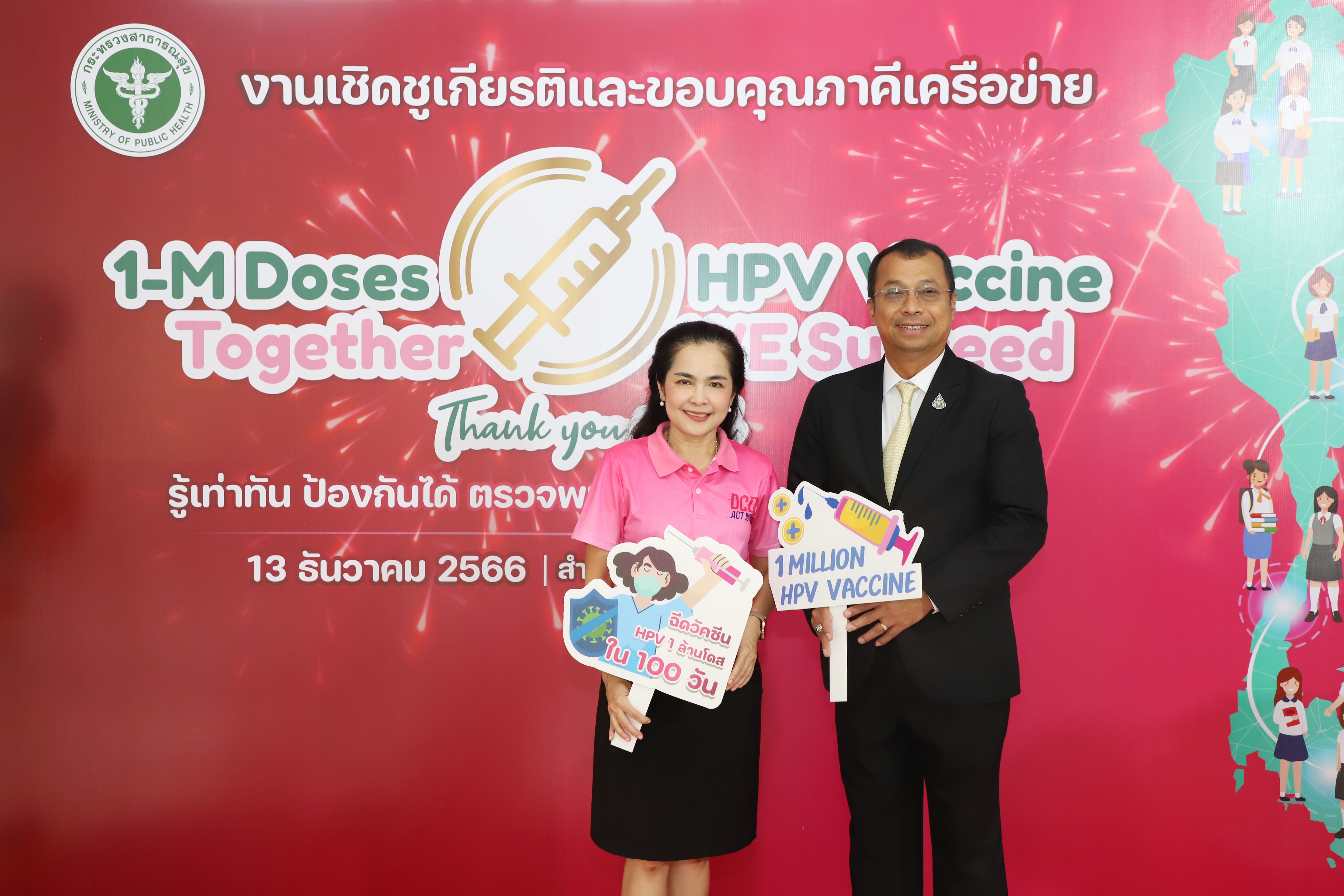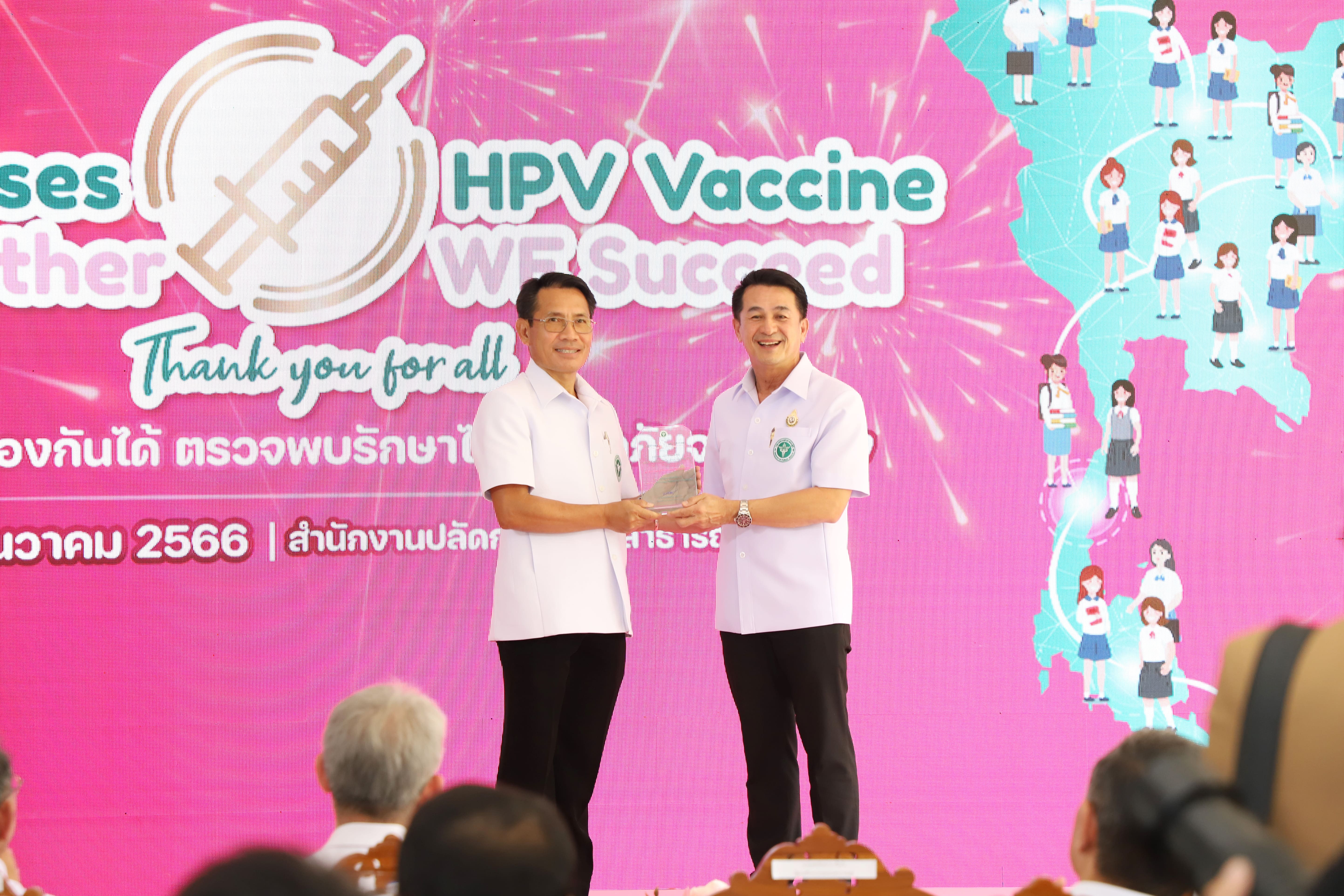 วันที่ 13 ธันวาคม 2566 นายวรรณรัตน์ ศรีสุขใส รองปลัดกระทรวงแรงงาน ร่วมกิจกรรมเชิดชูเกียรติและขอบคุณภาคีเครือข่าย “1-M doses HPV Vaccine: Together We Succeed” พร้อมรับโล่ขอบคุณภาคีเครือข่ายที่ช่วยสนับสนุนการดำเนินงาน โดยมี นพ.ชลน่าน ศรีแก้ว รัฐมนตรีว่าการกระทรวงสาธารณสุข เป็นประธานเปิดงานดังกล่าว ณ บริเวณโถงอาคาร 3 ชั้น 1 สำนักงานปลัดกระทรวงสาธารณสุข กระทรวงสาธารณสุข โดยกระทรวงสาธารณสุขได้มอบโล่ประกาศเกียรติคุณจังหวัดที่มีผลการดำเนินงานยอดเยี่ยม 32 จังหวัด เพื่อเป็นขวัญกำลังใจให้แก่บุคลากรทางการแพทย์และสาธารณสุขที่ร่วมแรงร่วมใจทำงานจนประสบความสำเร็จตามเป้าหมาย