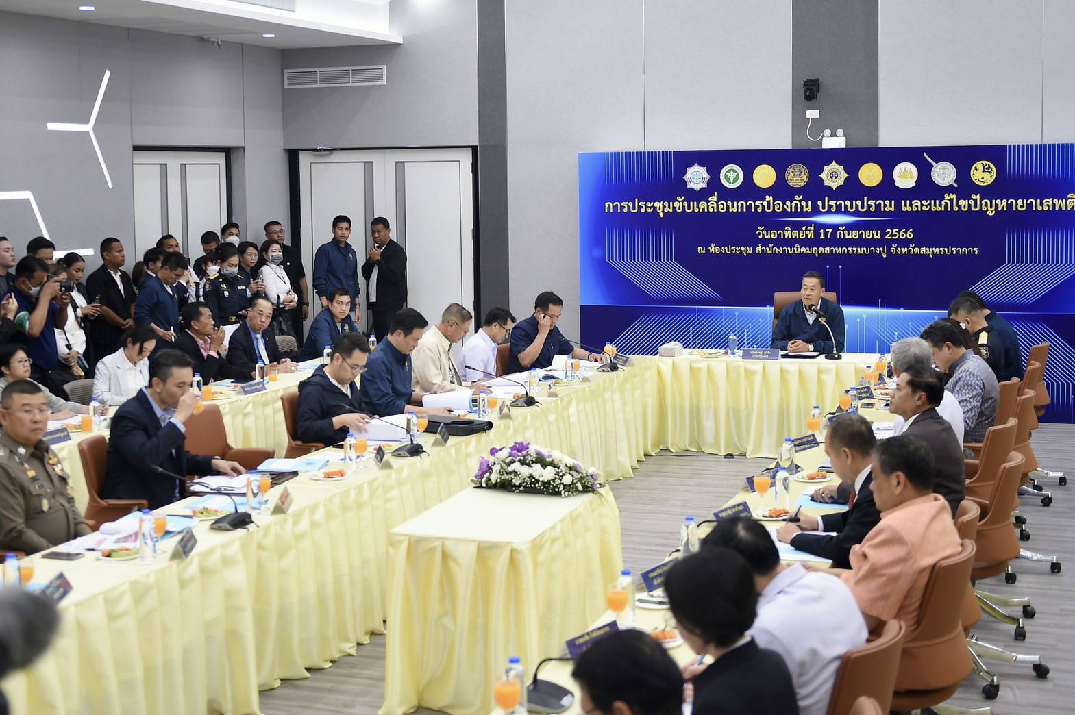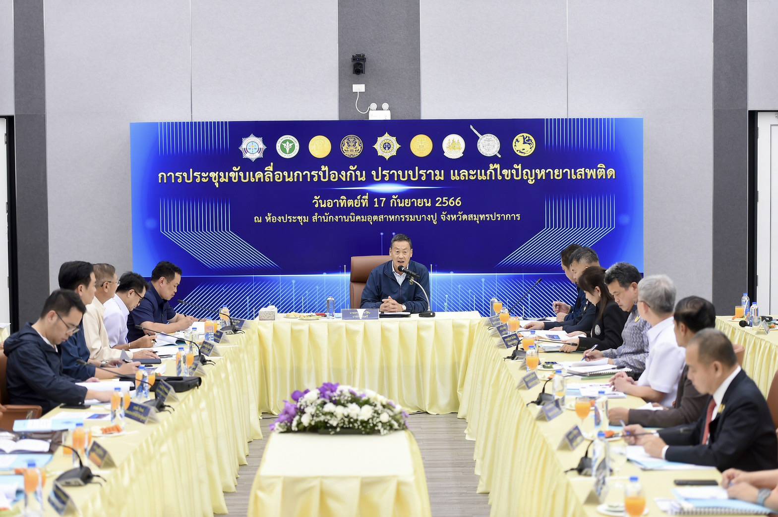 On September 17, 2023, at 13.30 hours, the Permanent Secretary of Labour, Mr. Boonchob Suttamanaswong, assigned Deputy Permanent Secretary of Labour, Mr. Prateep Songlamyong, to participate in a meeting to drive the prevention, suppression, and resolution of drug problems, and the drug destruction ceremony of the Narcotics Control Board. The Prime Minister, Mr. Srettha Thavisin, chaired the meeting at the Bang Pu Industrial Estate, Samut Prakan Province, and Akkhi Prakan Public Company Limited. Executives and heads of government agencies from related agencies also joined the meeting.