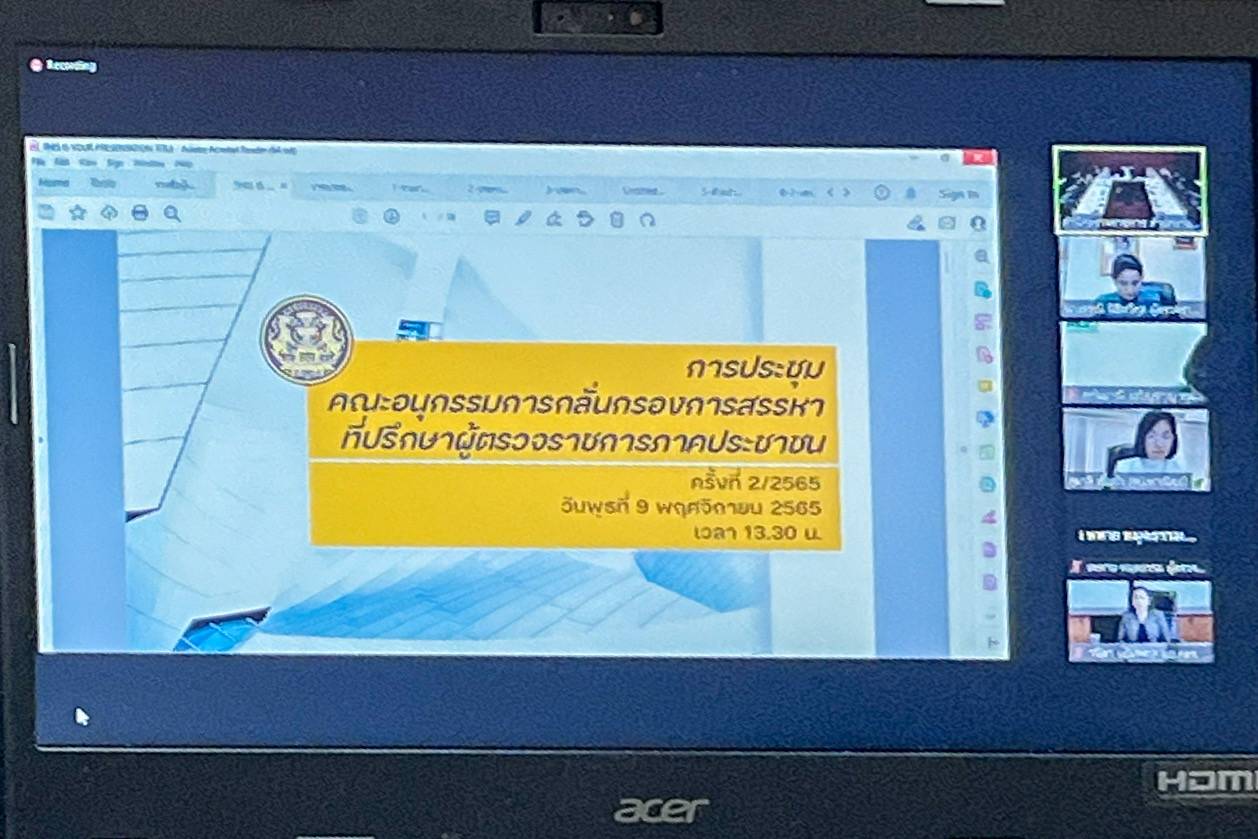 วันที่ 9 พฤศจิกายน 2565 เวลา 13.30 น. นายบุญชอบ สุทธมนัสวงษ์ ปลัดกระทรวงแรงงาน มอบหมายให้ นางดรุณี นิธิทวีกุล รองหัวหน้าผู้ตรวจราชการกระทรวงแรงงาน เป็นผู้แทนเข้าร่วมการประชุมคณะอนุกรรมการกลั่นกรองการสรรหาที่ปรึกษาผู้ตรวจราชการภาคประชาชน ครั้งที่ 2/2565 กับผู้ตรวจราชการสำนักนายกรัฐมนตรี ผ่านระบบ Web Conference (Zoom Meeting) เพื่อร่วมพิจารณากรอบแนวทางการพิจารณาคัดเลือกผู้สม้ครเข้ารับการสรรหาเป็นที่ปรึกษาผู้ตรวจราชการภาคประชาชน พร้อมด้วยเจ้าหน้าที่สนับสนุนผู้ตรวจราชการกระทรวงแรงงาน ณ ห้องปฏิบัติการผู้ตรวจราชการกระทรวงแรงงาน ชั้น 8 อาคารกระทรวงแรงงาน
