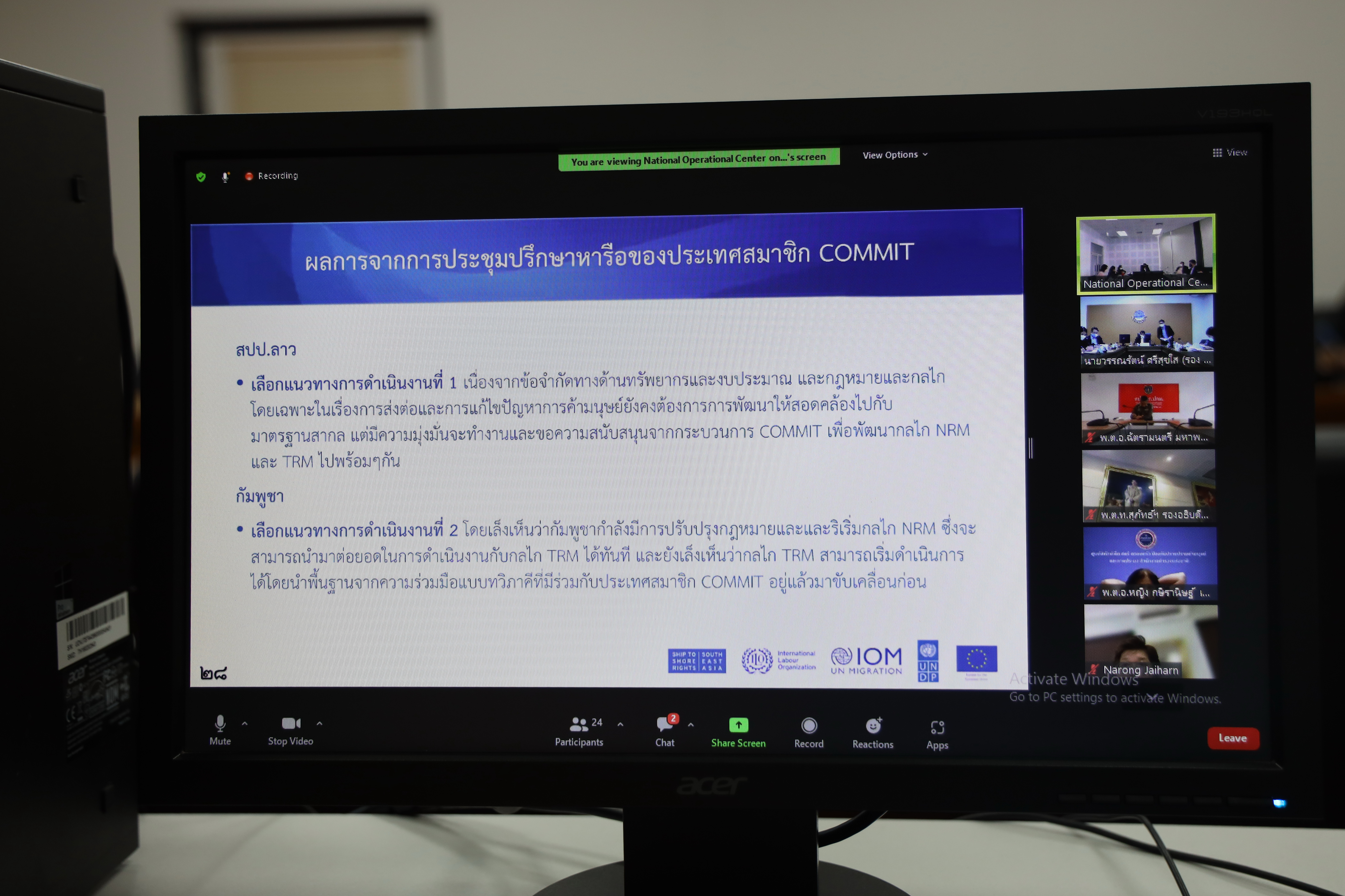 วันที่ 23 มิถุนายน 2565 เวลา 13.30 น. นายบุญชอบ สุทธมนัสวงษ์ ปลัดกระทรวงแรงงาน มอบหมายให้ นายวรรณรัตน์ ศรีสุขใส รองปลัดกระทรวงแรงงาน เป็นผู้แทนเข้าร่วมประชุมคณะอนุกรรมการขับเคลื่อนการดำเนินงานตามกระบวนการความร่วมมือระดับรัฐมนตรีของประเทศในอนุภูมิภาคลุ่มแม่น้ำโขงเพื่อต่อต้านการค้ามนุษย์ (Coordinated Mekong Ministerial Initiative Against Trafficking in Persons: COMMIT Process) ครั้งที่ 2 /2565 ณ ห้องประชุมกองกฎหมาย ชั้น 11 สำนักงานปลัดกระทรวงแรงงาน ผ่านสื่ออิเล็กทรอนิกส์ เพื่อทราบผลการทบทวนแผนปฏิบัติการกระบวนการความร่วมมือระดับรัฐมนตรีของประเทศในอนุภูมิภาคลุ่มแม่น้ำโขงเพื่อต่อต้านการค้ามนุษย์ ระยะที่ 4 (พ.ศ. 2558) และแนวทางการพัฒนากลไกเพื่อการส่งต่อและให้ความช่วยเหลือผู้เสียหายจากการค้ามนุษย์ (TRM) สำหรับกลุ่มประเทศในอนุภูมิภาคลุ่มแม่น้ำโขง เพื่อเตรียมสำหรับการประชุมระดับรัฐมนตรีของประเทศในอนุภูมิภาคลุ่มแม่น้ำโขงเพื่อต่อการค้ามนุษย์ ครั้งที่ 5 และการประชุมคณะกรรมการประสานความร่วมมือในอนุภูมิภาคลุ่มแม่น้ำโขงเพื่อต่อต้านการค้ามนุษย์ระดับภูมิภาค รวมถึงการพิจารณากรอบเวลาการดำเนินงานของคณะอนุกรรมการและกิจกรรมตามกรอบความร่วมมือระดับรัฐมนตรีของประเทศในอนุภูมิภาคลุ่มแม่น้ำโขง