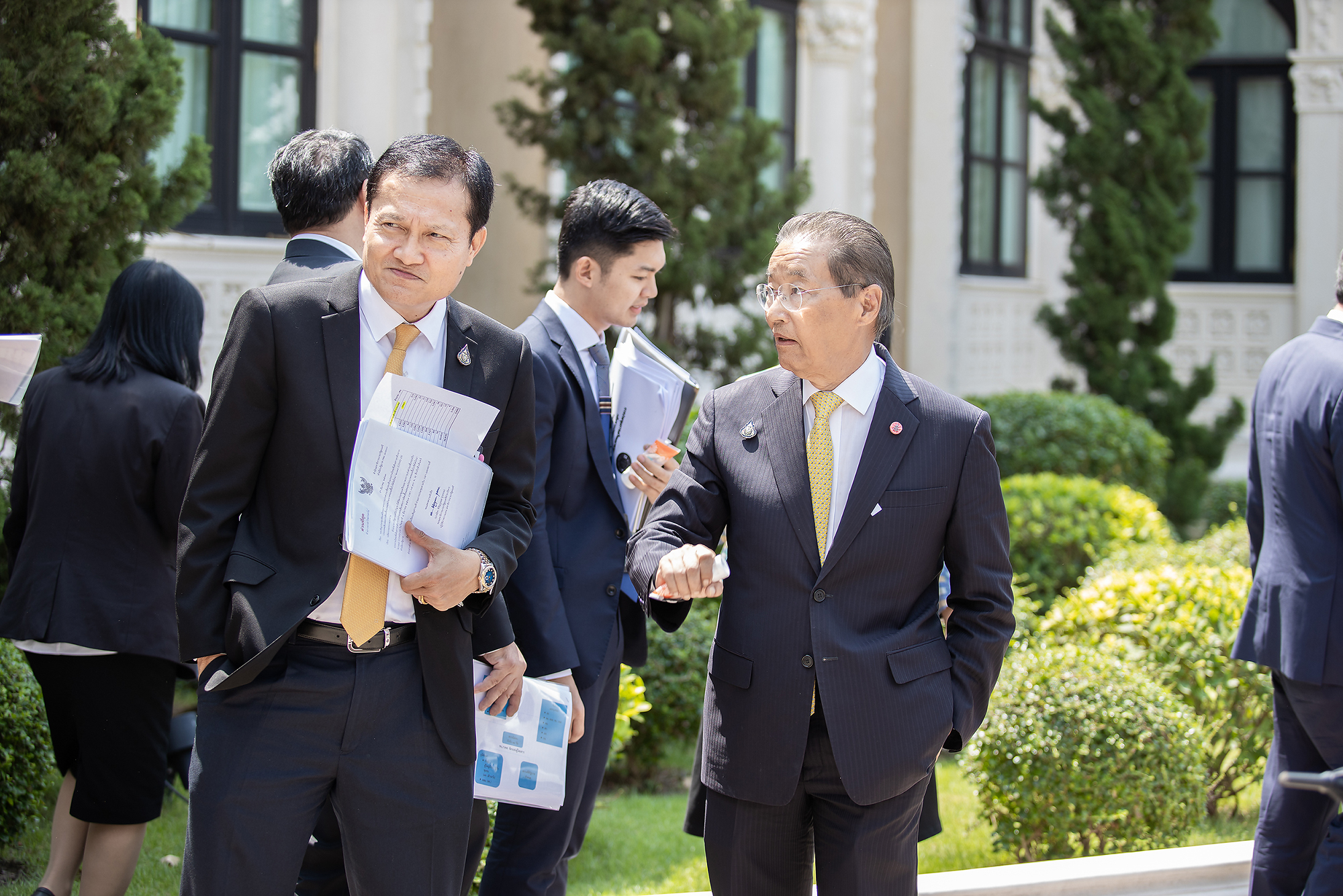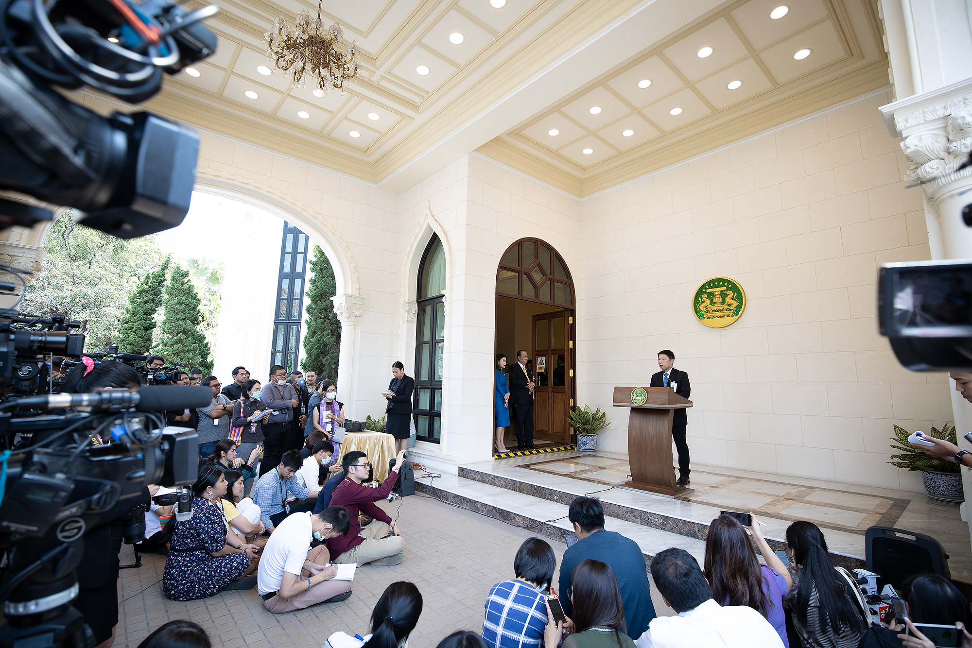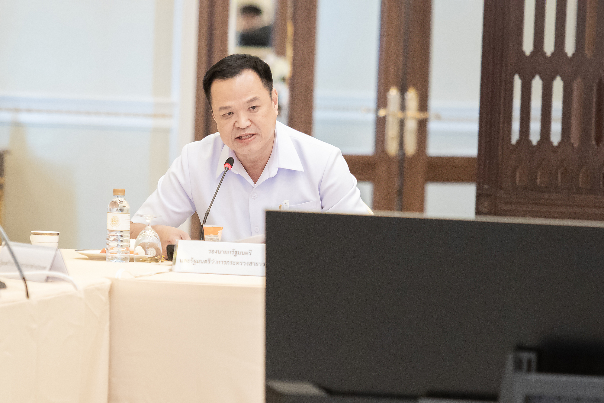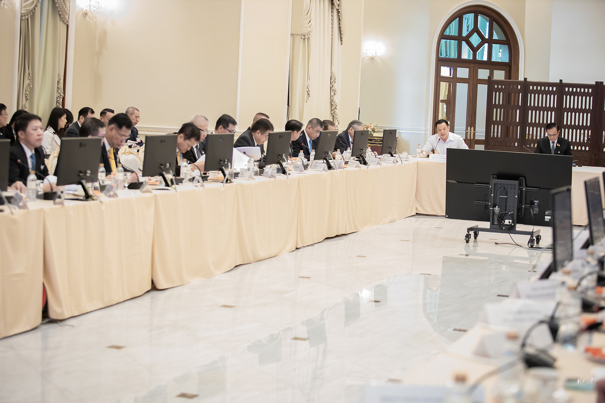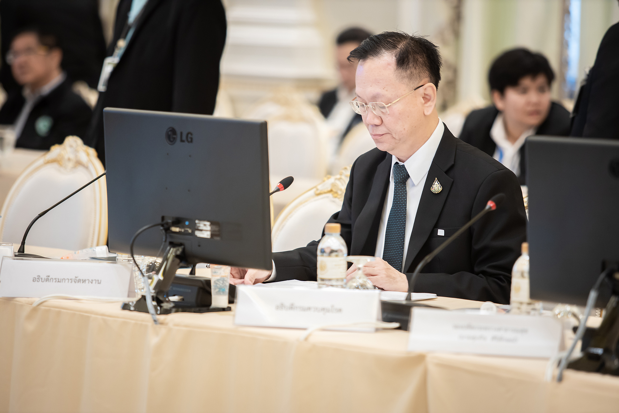 วันนี้ (4 มี.ค. 63) เวลา 09.30 น. หม่อมราชวงศ์จัตุมงคล โสณกุล รัฐมนตรีว่าการกระทรวงแรงงาน พร้อมด้วย นายสุทธิ สุโกศล ปลัดกระทรวงแรงงาน และ นายสุชาติ พรชัยวิเศษกุล อธิบดีกรมการจัดหางาน ร่วมประชุมการเตรียมมาตรการเร่งด่วนเพื่อรองรับแรงงานไทย ที่เดินทางกลับจากประเทศเสี่ยงต่อการติดเชื้อ และแพร่ระบาดของเชื้อไวรัสโคโรนา COVID-19 ณ ตึกภักดีบดินทร์ ทำเนียบรัฐบาล โดยมี พล.อ.ประยุทธ์ จันทร์โอชา นายกรัฐมนตรี และรัฐมนตรีว่าการกระทรวงกลาโหม เป็นประธานการประชุม ทั้งนี้ นายกรัฐมนตรี กล่าวระหว่างเป็นประธานการประชุมวาระเร่งด่วน เรื่องมาตรการรองรับกลุ่มผู้ประสงค์เดินทางกลับจากเกาหลีใต้ หลังเกิดการแพร่ระบาดของโรคโควิด 19 ตอนหนึ่ง ว่า ขอให้กระทรวงสาธารณสุขรายงานสถานการณ์ล่าสุดก่อน จากนั้น จึงจะหารือมาตรการรองรับแรงงานที่จะเดินทางกลับจากประเทศเกาหลีใต้ ว่าจะมีมาตรการอย่างไร แต่สิ่งที่สำคัญที่สุดคือ ต้องสร้างความไว้เนื้อเชื่อใจให้กับประชาชน และสังคมโดยรวม เพราะไม่ว่าจะเป็นใคร รัฐบาลก็ต้องดูแล เพราะเป็นคนไทยด้วยกัน เหมือนที่เคยดูแล 138 คนจากอู่ฮั่นมาแล้ว ดังนั้น จะต้องหาหนทางปฏิบัติให้ดีที่สุด ทั้งนี้ ก่อนการประชุมมีการตรวจวัดอุณภูมิ พร้อมแจกเจลล้างมือคู่กับเอกสารการประชุมให้แก่ผู้เข้าร่วมประชุมทุกคนด้วย