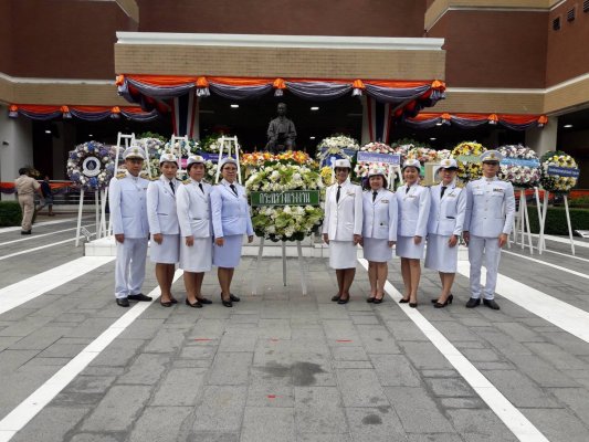 วันนี้ (24 กันยายน 2562) นายสุทธิ สุโกศล ปลัดกระทรวงแรงงาน มอบหมายให้ นางสาวภัทรพร สมันตรัฐ ผู้อำนวยการสำนักตรวจและประเมินผล สำนักงานปลัดกระทรวงแรงงาน เป็นหัวหน้าผลัดเวร (ผลัดเวรที่ 6) เป็นผู้แทนกระทรวงแรงงาน นำข้าราชการในสังกัดเข้าร่วมพิธีวางพวงมาลาถวายราชสักการะพระราชานุสาวรีย์สมเด็จพระมหิตลาธิเบศร อดุลยเดชวิกรม พระบรมราชชนก เนื่องในวันมหิดล ประจำปี 2562 ณ คณะสาธารณสุขศาสตร์ มหาวิทยาลัยมหิดล ถนนราชวิถี กรุงเทพมหานคร