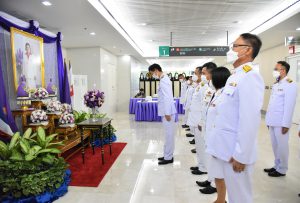 วันที่ 23 พฤศจิกายน 2565 เวลา 08.30 น. นายบุญชอบ สุทธมนัสวงษ์ ปลัดกระทรวงแรงงาน นำคณะผู้บริหารระดับสูงสังกัดกระทรวงแรงงาน ทูลเกล้าฯ ถวายแจกันดอกไม้เบื้องหน้าพระฉายาลักษณ์สมเด็จพระกนิษฐาธิราชเจ้า กรมสมเด็จพระเทพรัตนราชสุดาฯ สยามบรมราชกุมารี เพื่อแสดงออกถึงความจงรักภักดี พร้อมลงนามถวายพระพร ให้ทรงหายจากพระอาการประชวร และทรงมีพระพลานามัยแข็งแรงโดยเร็ววัน ณ อาคารภูมิสิริมังคลานุสรณ์ โรงพยาบาลจุฬาลงกรณ์ สภากาชาดไทย