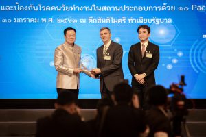 สำหรับพิธีมอบรางวัลเชิดชูเกียรติเครือข่ายสถานประกอบการยอดเยี่ยมในพื้นที่นำร่องการสร้างเสริมสุขภาพและป้องกันโรคคนวัยทำงานในสถานประกอบการ ด้วย 10 packages ในครั้งนี้ มีจำนวน 10 แห่ง ได้แก่ 1.Toyo Seikan (Thailand) Co,Ltd 2.Auto Alliance (Thailand) Company Limited 3.TAKEBE (THAILAND) CO.,LTD 4.บริษัท โตโยต้า ดีลักซ์ จำกัด 5.โรงงานผลิตเส้นก๋วยเตี๋ยวชุนกี่ 6.บริษัท ไทย มาลายา กลาส จำกัด 7.บริษัท พีทีที โกลบอล เคมิคอล จำกัด (มหาชน) 8.Sabina Public Company Limited 9.บริษัท เบทาโกร จำกัด(มหาชน) และ 10.บริษัท โตโยต้าเมืองนนท์ จำกัด ที่เป็นแบบอย่างของการสร้างเครือข่ายต้นแบบการสร้างเสริมสุขภาพและป้องกันโรคคนวัยทำงานในสถานประกอบการ ซึ่งจะนำไปสู่การขยายผล การดำเนินงานไปทั่วประเทศ โดยเน้นสร้างการรับรู้ข้อมูลอย่างถูกต้อง สร้างความตระหนักและความเข้าใจ เพื่อนำไปสู่การปฏิบัติให้คนวัยทำงานมีสุขภาพดีอย่างยั่งยืน