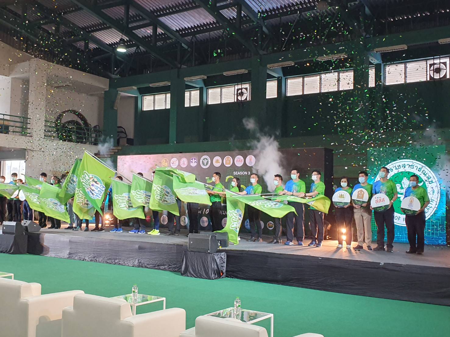 วันที่ 15 กุมภาพันธ์ 2564 เวลา 14.30 น. นายสุทธิ สุโกศล ปลัดกระทรวงแรงงาน มอบหมายให้ นางต้องใจ สุทัศน์ ณ อยุธยา ผู้ช่วยปลัดกระทรวงแรงงาน ร่วมเป็นเกียรติในพิธีเปิดตัวกิจกรรมก้าวท้าใจ Season 3 เพื่อขับเคลื่อนการส่งเสริมกิจกรรมทางกายของประชาชนเป็นไปอย่างมีประสิทธิภาพ ครอบคลุมทุกกลุ่มเป้าหมาย มีความต่อเนื่อง และประสบความสำเร็จอย่างเป็นรูปธรรม ทั้งนี้ กิจกรรมดังกล่าวมีวัตถุประสงค์เพื่อขับเคลื่อนนโยบายส่งเสริมการออกกำลังกายและส่งเสริมให้ประชาชนออกกำลังกาย ณ อาคารสวนกีฬากระทรวงสาธารณสุข จังหวัดนนทบุรี