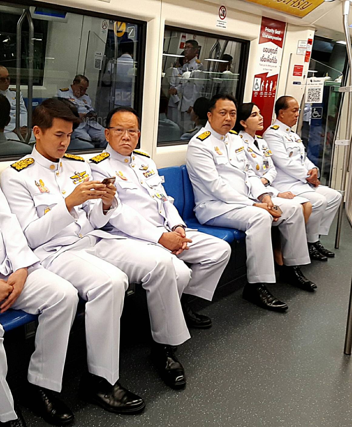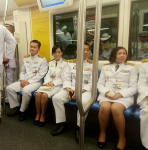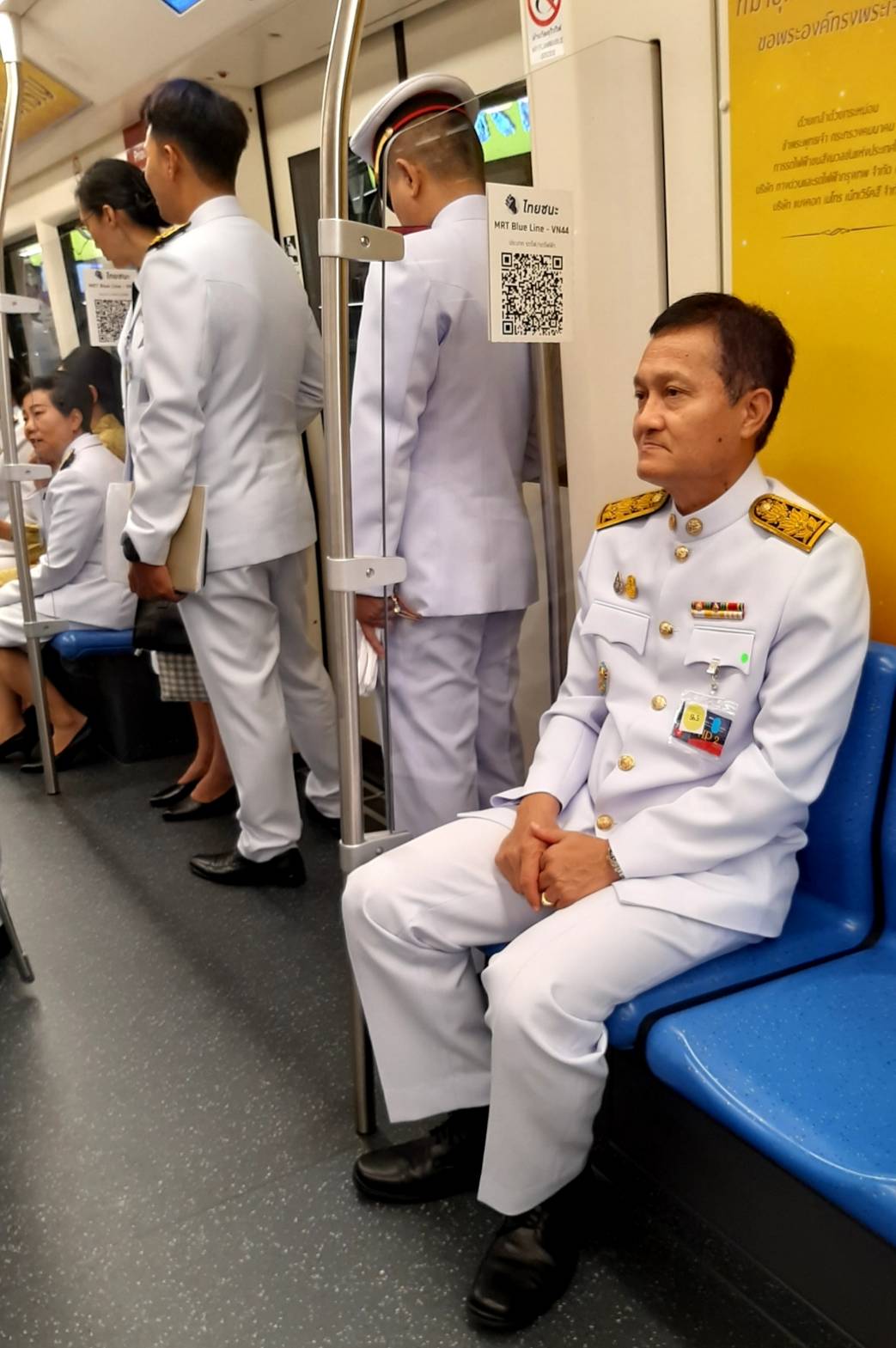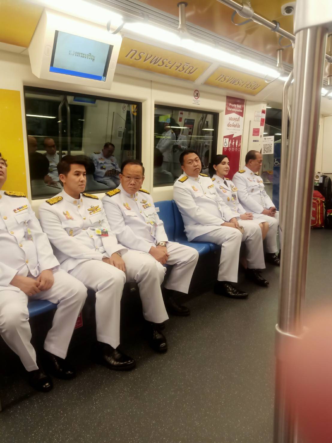 ในโอกาสนี้ ทั้ง 2 พระองค์ เสด็จฯ ประทับรถไฟฟ้าพระที่นั่ง จากสถานีรถไฟฟ้าสนามไชย เขตพระนคร ไปยังสถานีรถไฟฟ้าหลักสอง เขตบางแค โดยมีคณะรัฐมนตรี พร้อมด้วย นายสุชาติ ชมกลิ่น รัฐมนตรีว่าการกระทรวงแรงงาน นายสุทธิ สุโกศล ปลัดกระทรวงแรงงาน รวมถึงข้าราชการ เจ้าหน้าที่ที่เกี่ยวข้อง และพสกนิกรร่วมเฝ้าฯ รับเสด็จ ณ สถานีรถไฟฟ้าสนามไชย เขตพระนคร – สถานีรถไฟฟ้าหลักสอง เขตบางแค กรุงเทพมหานคร