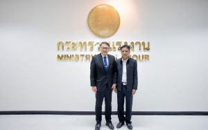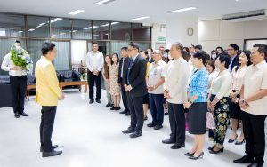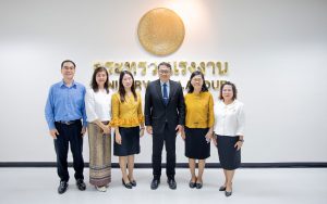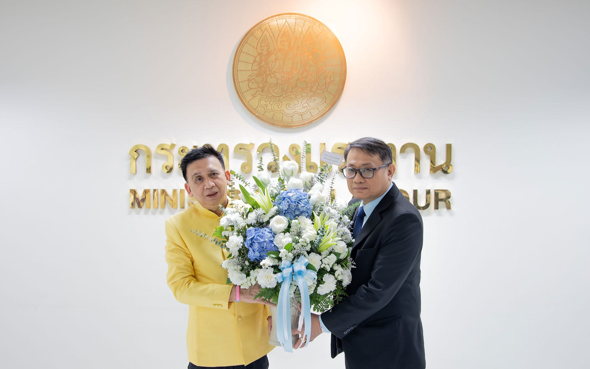 วันที่ 23 กุมภาพันธ์ 2567 เวลา 09.30 น. นายไพโรจน์ โชติกเสถียร ปลัดกระทรวงแรงงาน นำผู้บริหาร ข้าราชการ เจ้าหน้าที่ในสังกัดสำนักงานปลัดกระทรวงแรงงาน ร่วมมอบกระเช้าดอกไม้แสดงความยินดีกับ เรือเอกสาโรจน์ คมคาย ที่ปรึกษากฎหมาย สำนักงานปลัดกระทรวงแรงงาน ในโอกาสที่ได้รับการแต่งตั้งให้ดำรงตำแหน่งรองปลัดกระทรวงแรงงาน ทั้งนี้ ตั้งแต่วันที่ทรงพระกรุณาโปรดเกล้าโปรดกระหม่อมแต่งตั้งเป็นต้นไป โดยมี นายสมาสภ์ ปัทมะสุคนธ์ ผู้ตรวจราชการกระทรวงแรงงาน และนางสาวกรจิรัฏฐ์ พงจันทร์ศธร ผู้ช่วยปลัดกระทรวงแรงงาน พร้อมด้วย ผู้บริหาร ข้าราชการ เจ้าหน้าที่สำนักงานปลัดกระทรวงแรงงาน ร่วมแสดงความยินดี ณ บริเวณโถงด้านหน้าปลัดกระทรวงแรงงาน ชั้น 7 อาคารกระทรวงแรงงาน